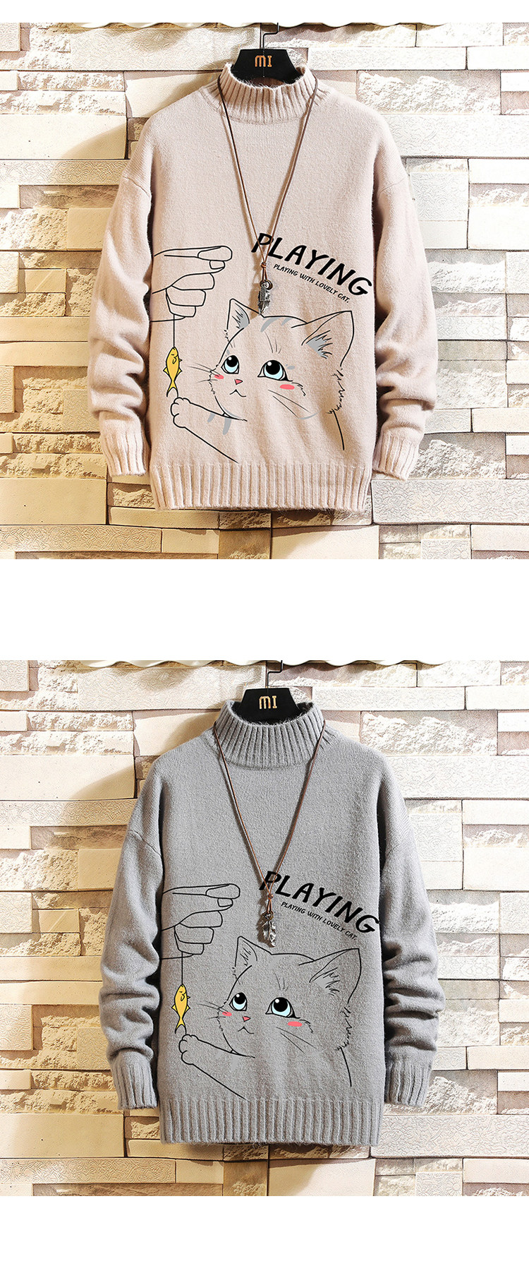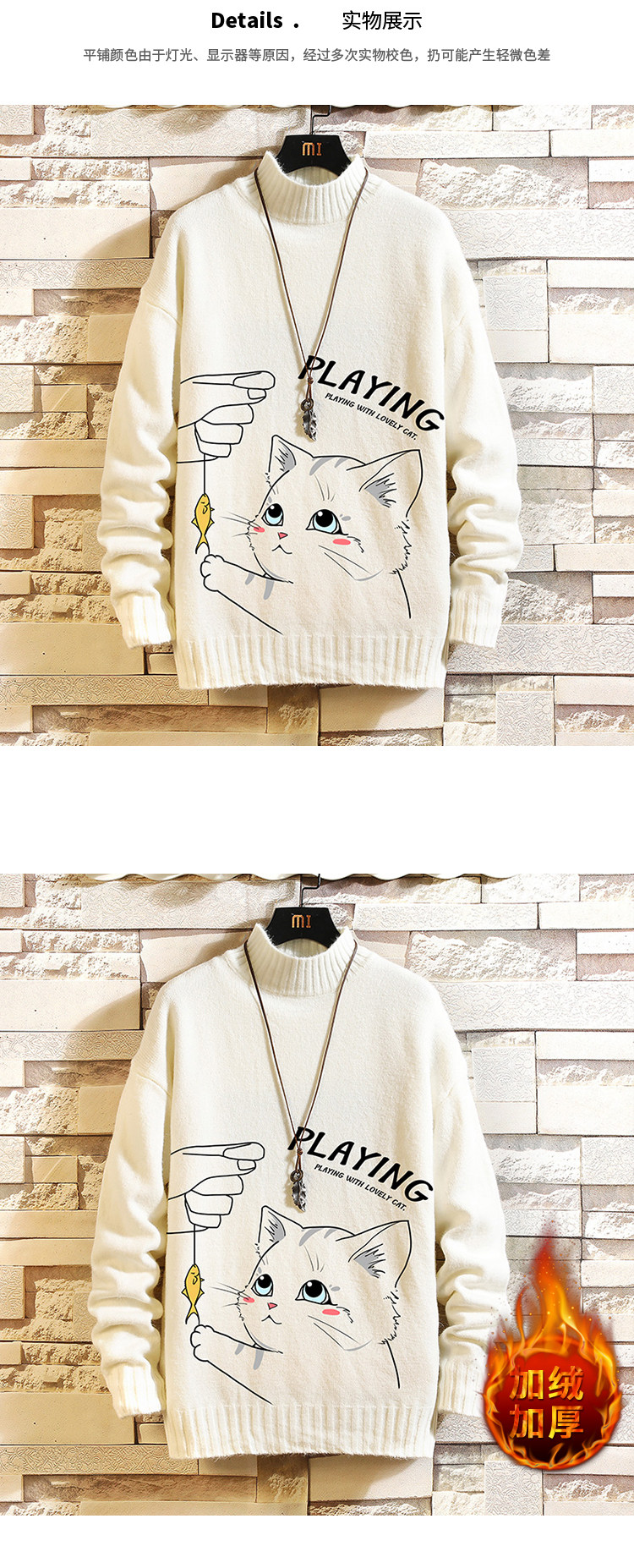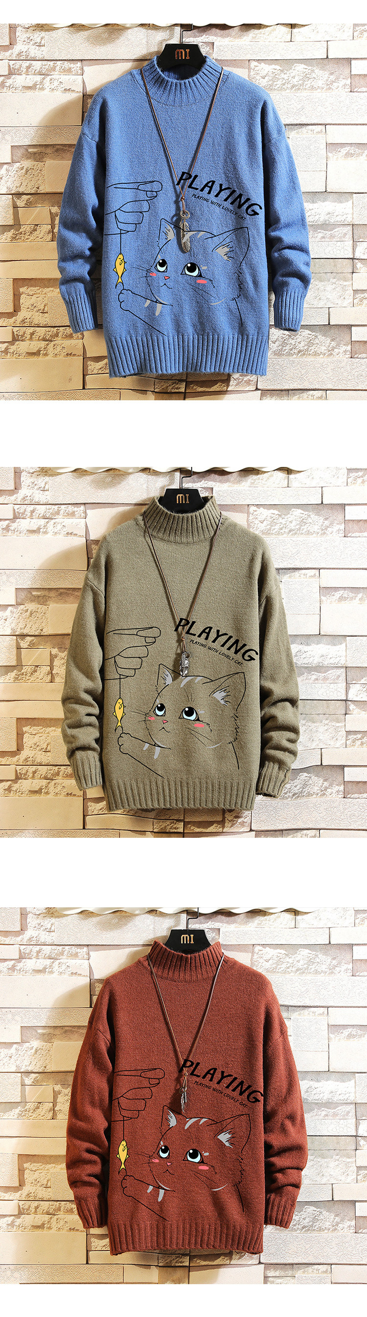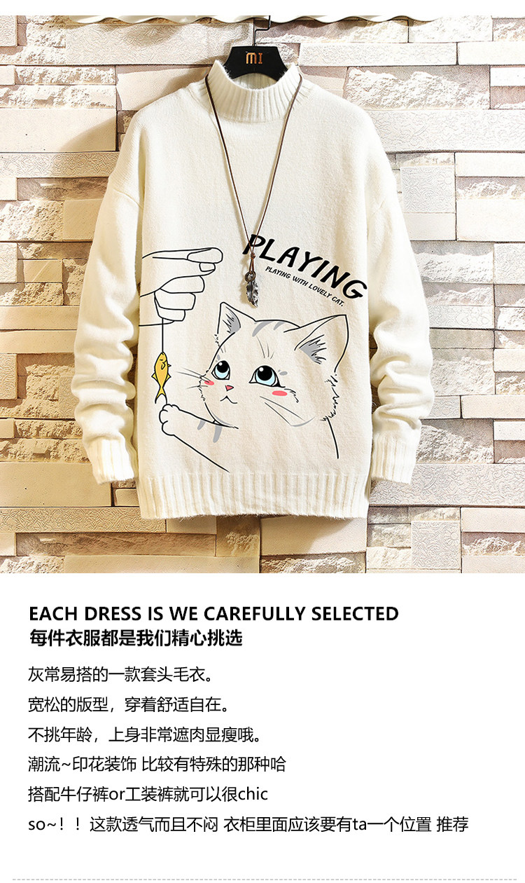 Утепленный трикотажный шерстяной свитер, высокий воротник, для влюбленных, свободный крой, оверсайз