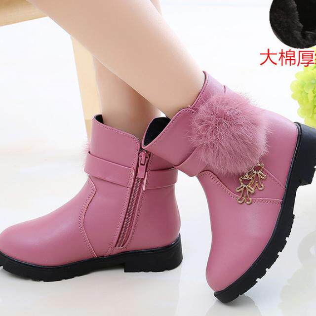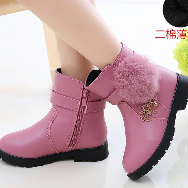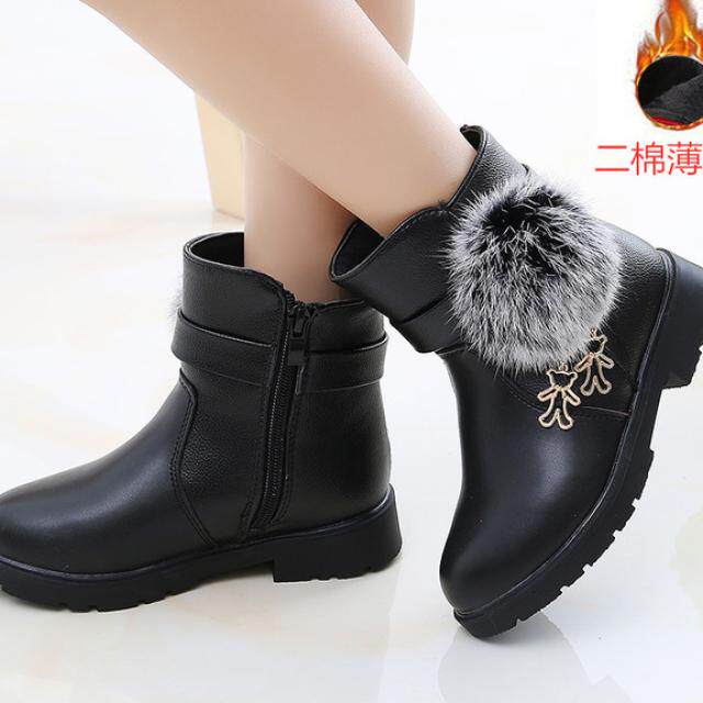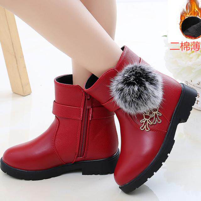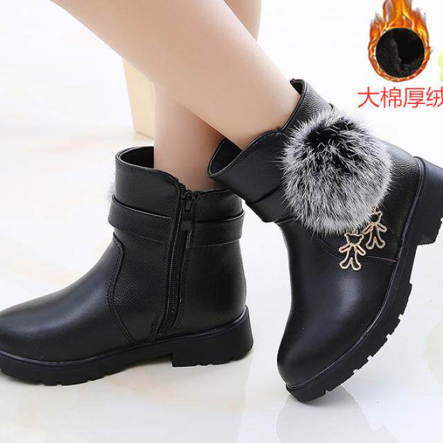 Детские короткие сапоги, зимние флисовые модные ботинки для принцессы для кожаной обуви