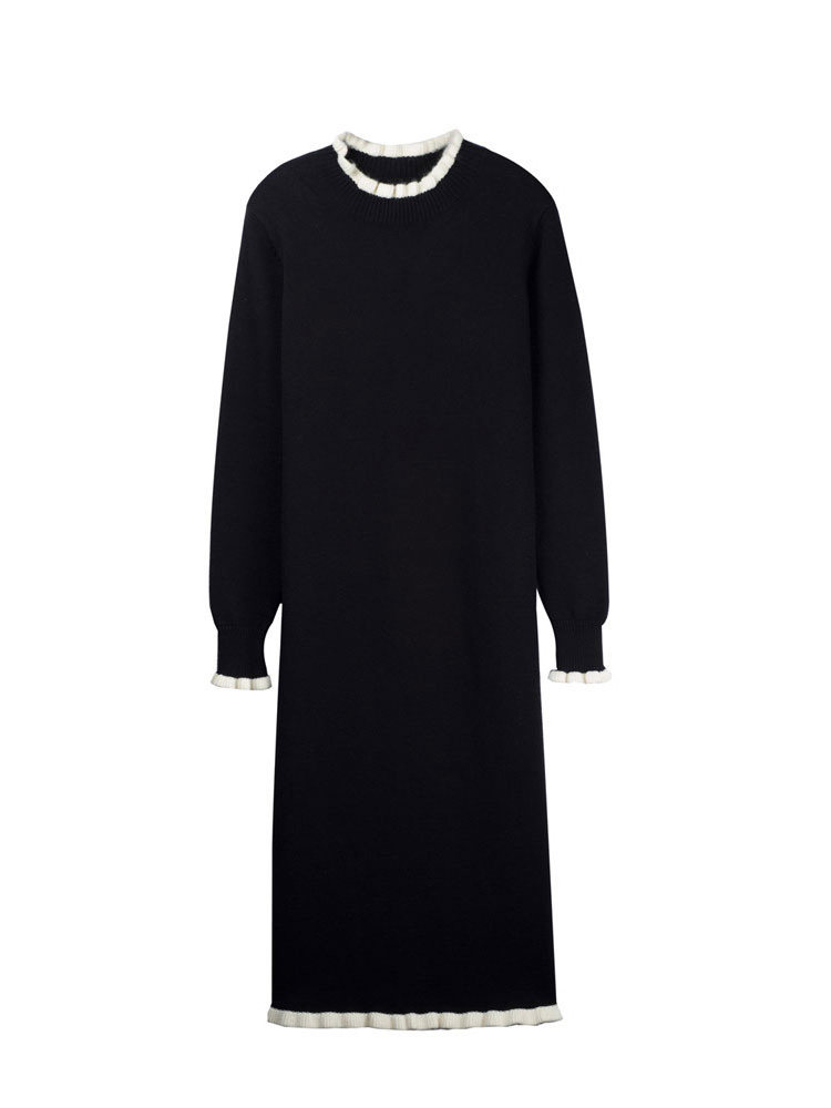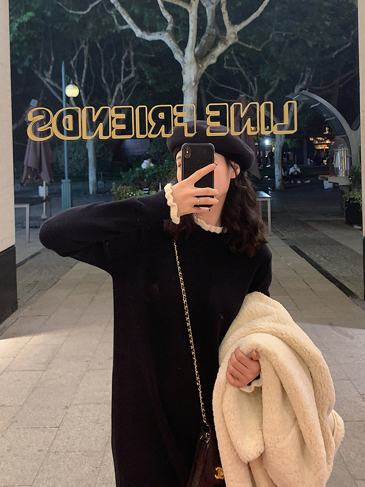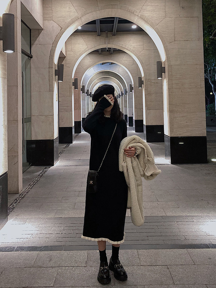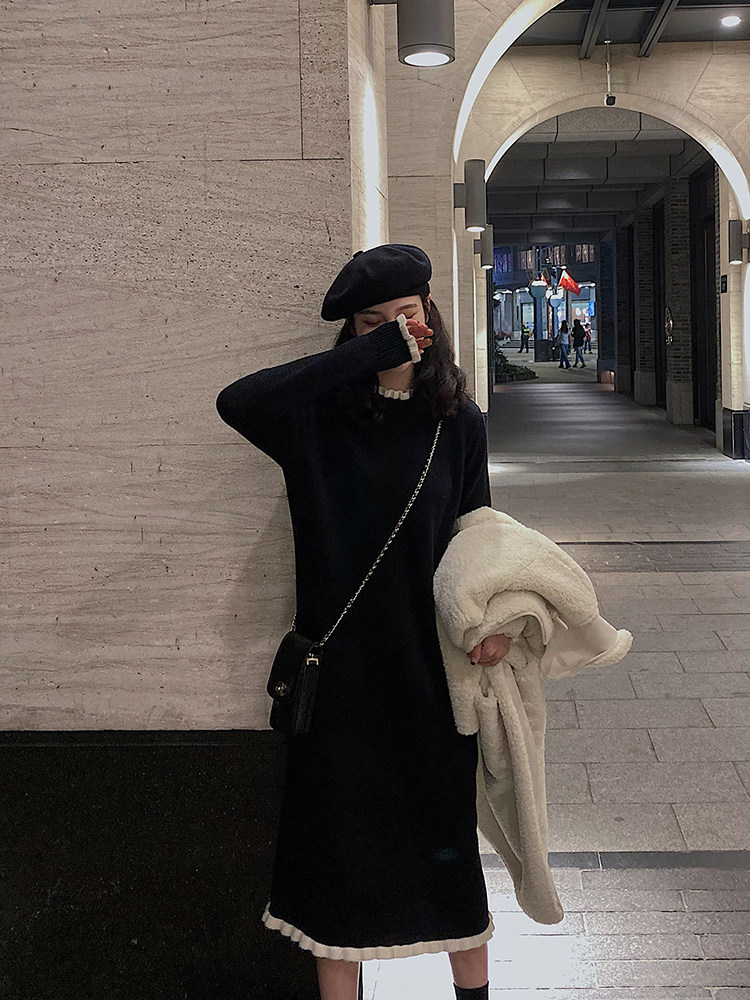 Длинный базовый свитер, трикотажное платье, черная осенняя демисезонная длинная юбка, подходит для подростков, средней длины
