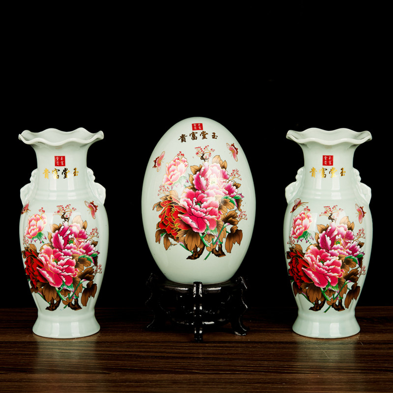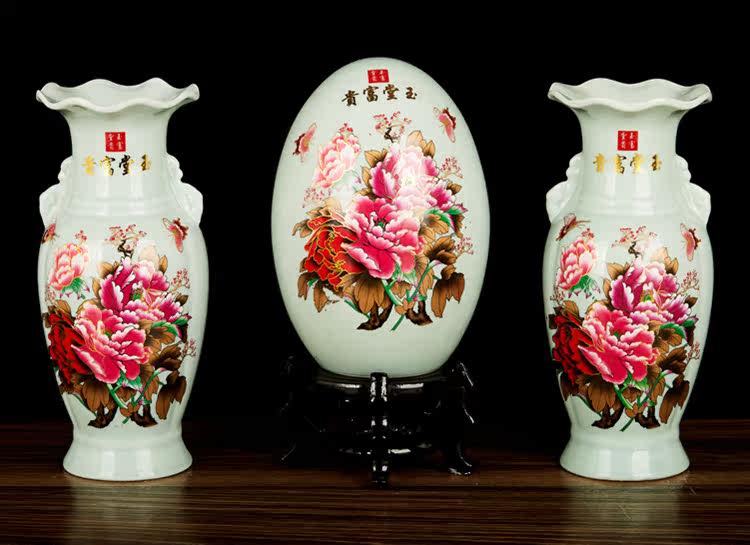 Фенг Шуи настольный орнамент Место насыщенное и богатое пиони из трех человек домашняя гостиная ландшафтная ваза Новый китайский буддийский храм