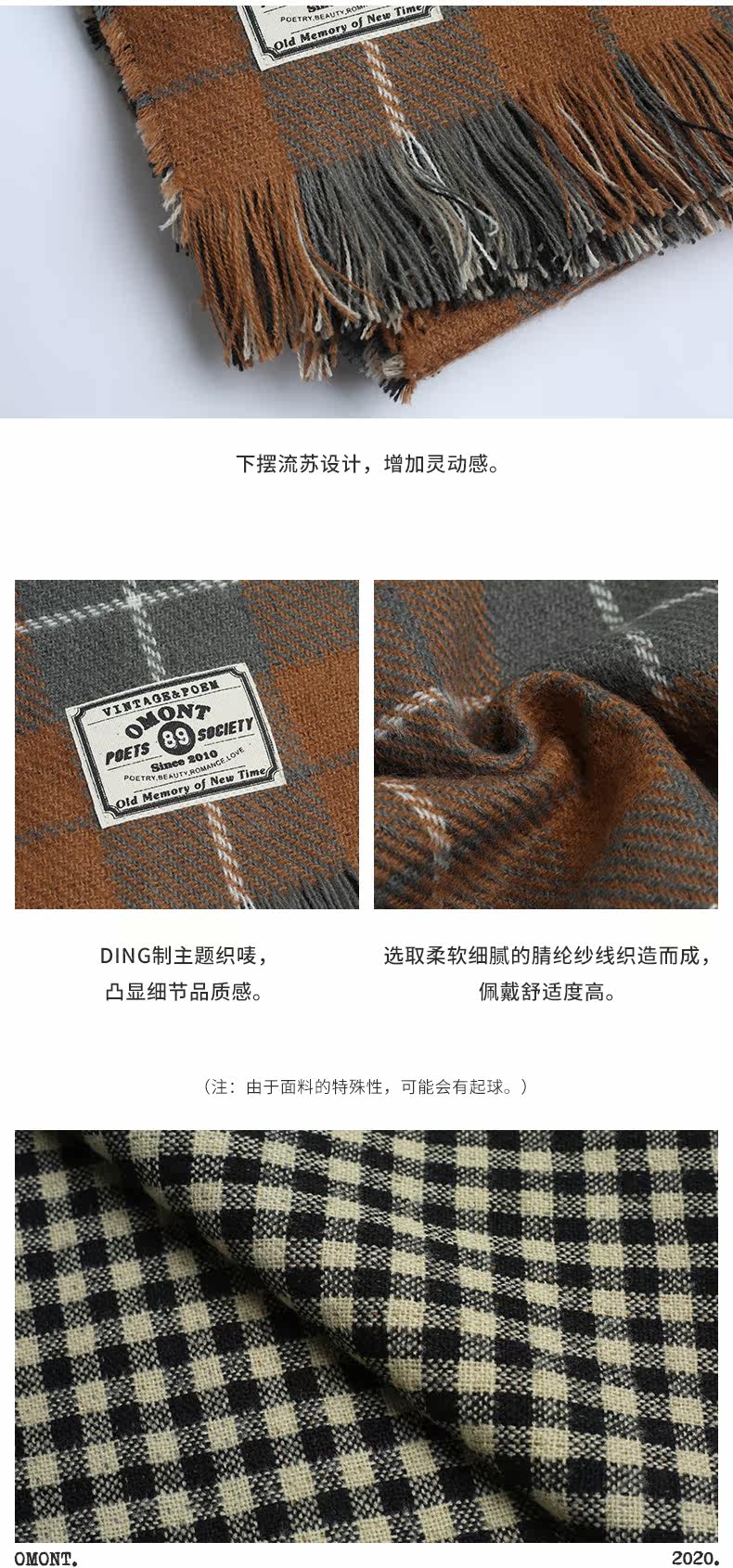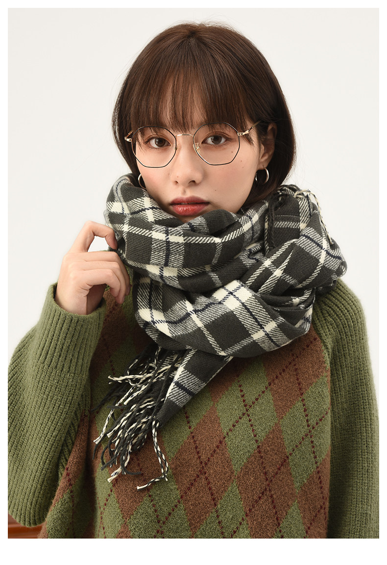 omont Ретро двусторонний удерживающий тепло универсальный демисезонный шарф с кисточками