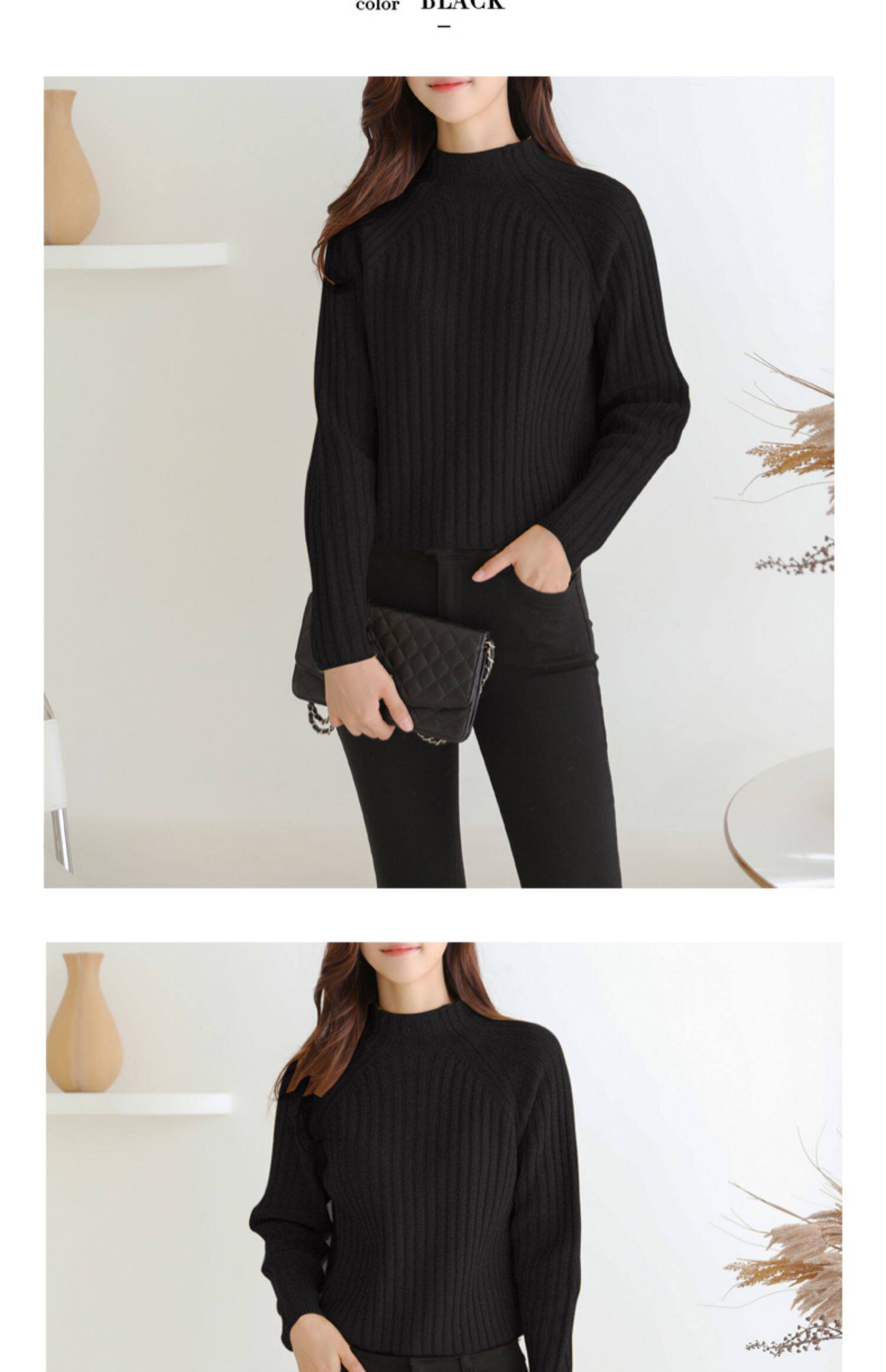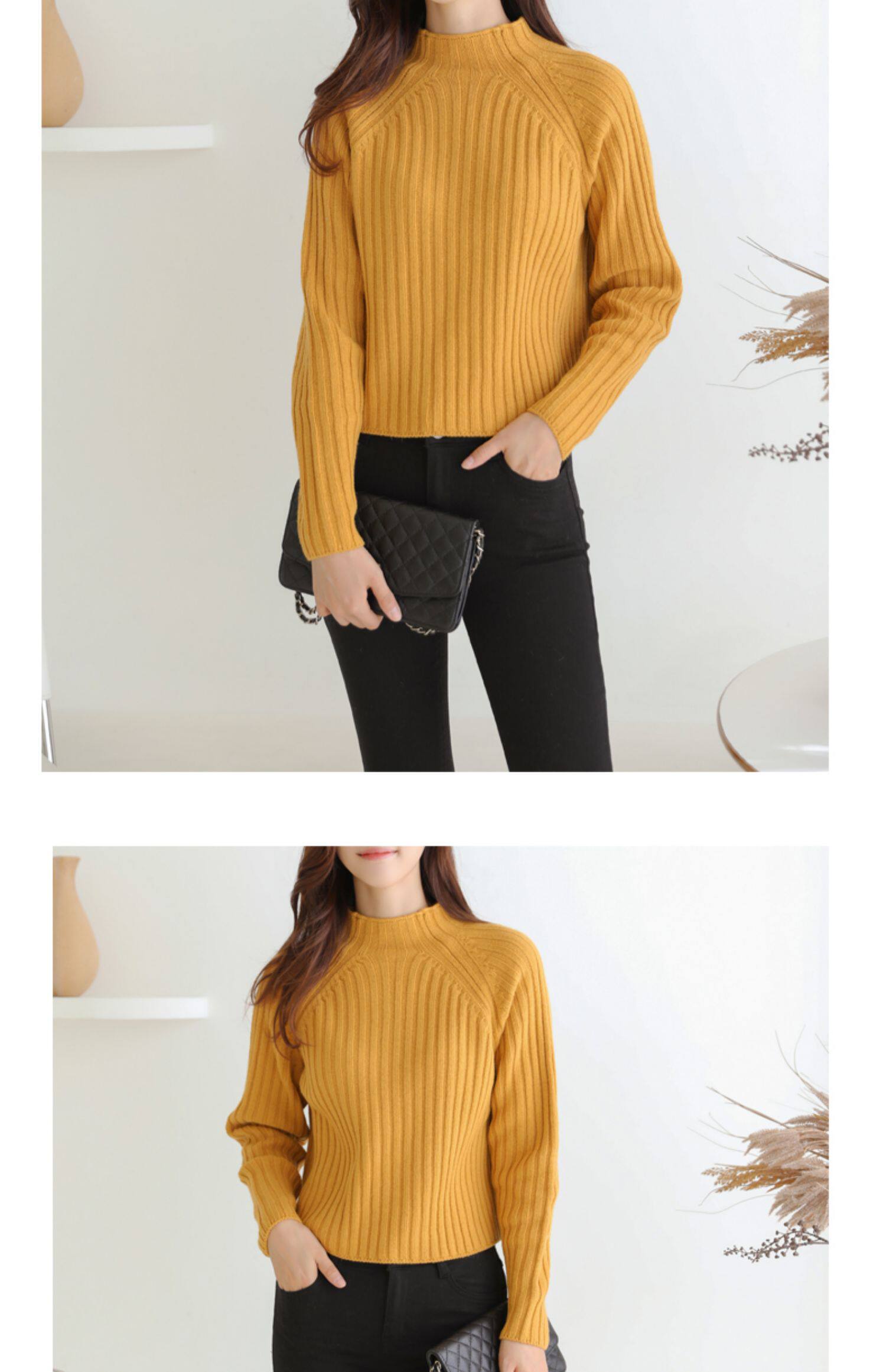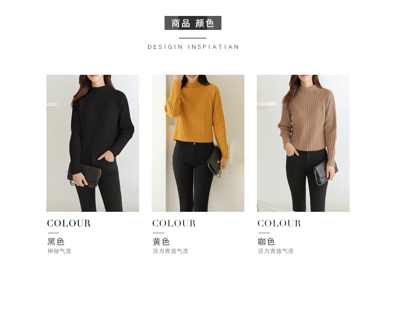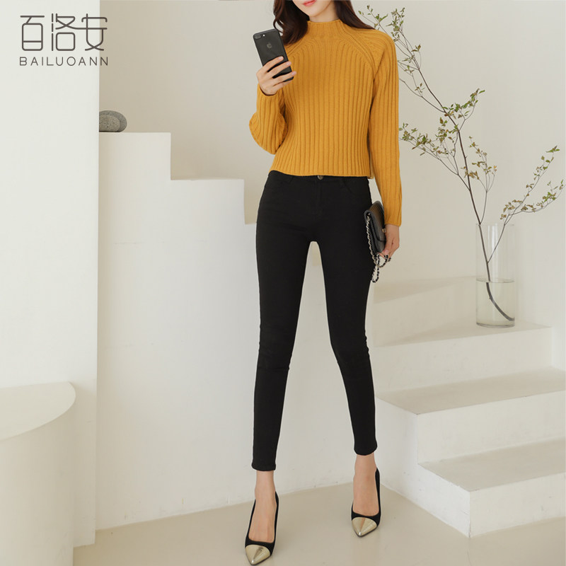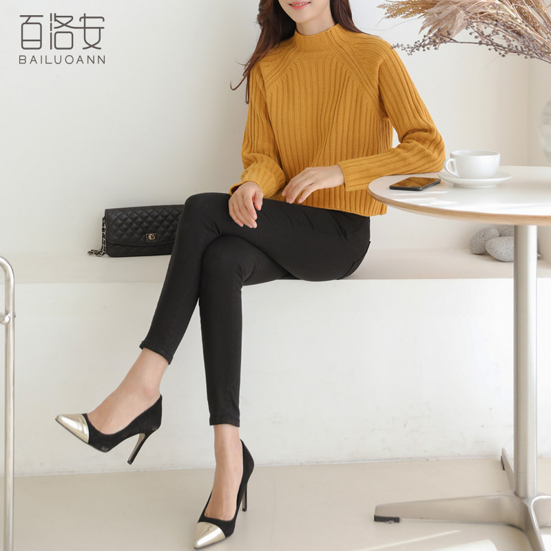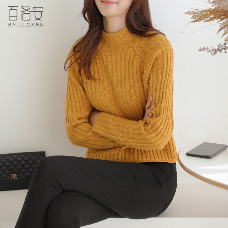 百洛安 Цветной зимний трикотажный базовый свитер, высокий воротник, в корейском стиле
