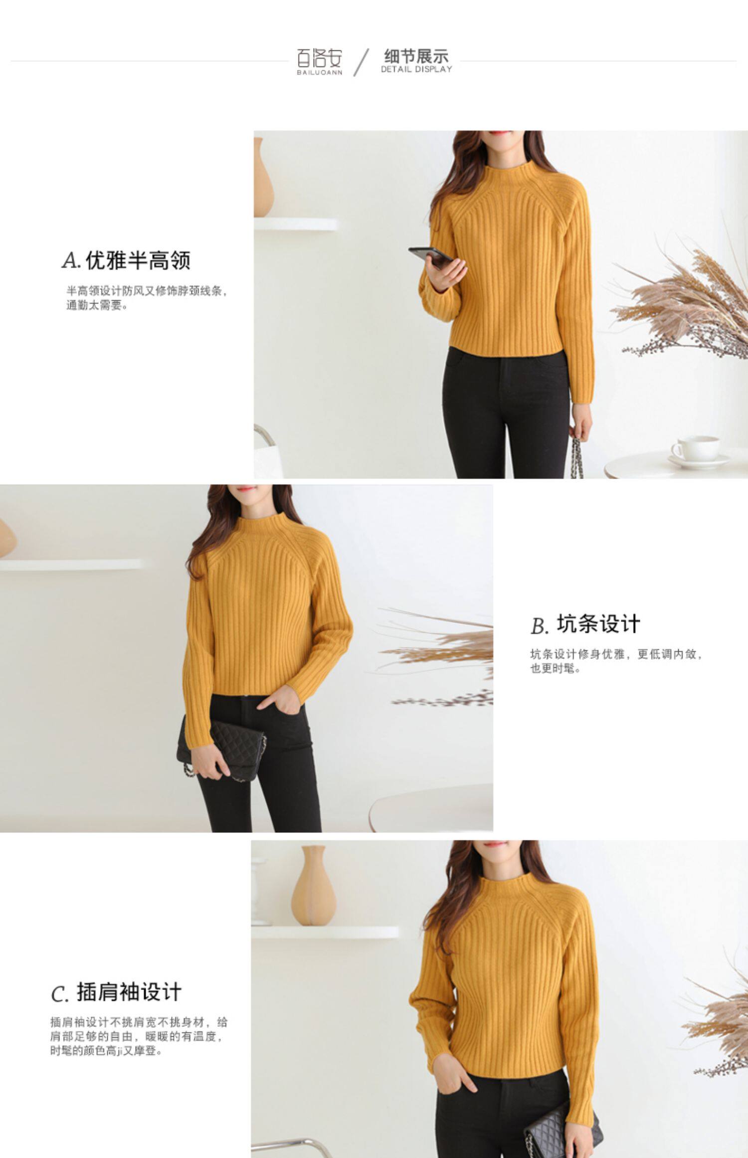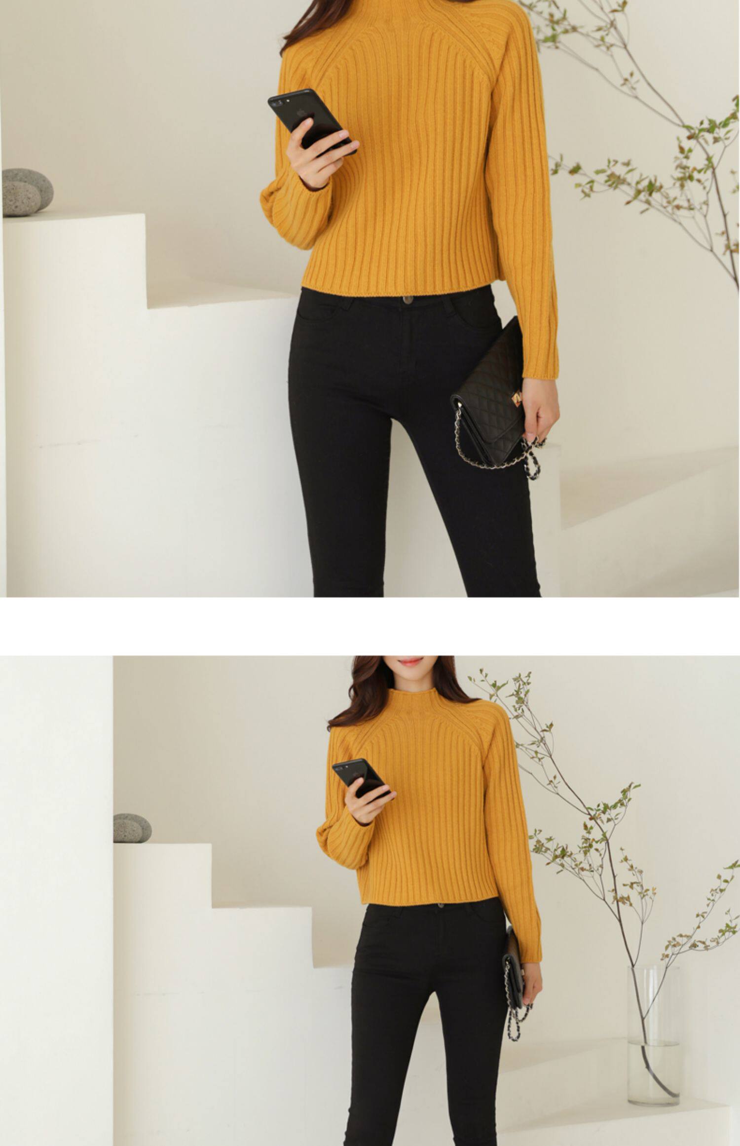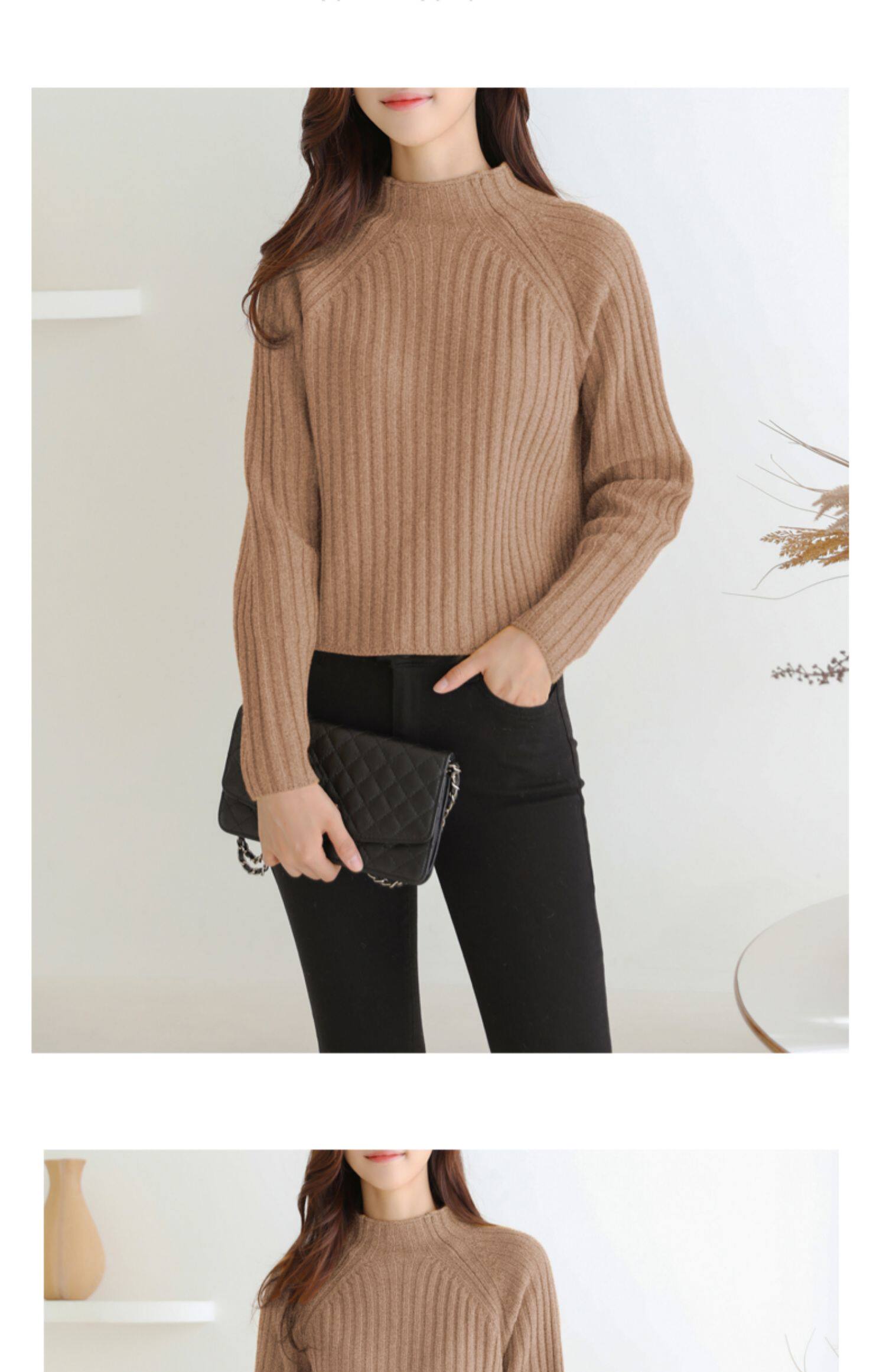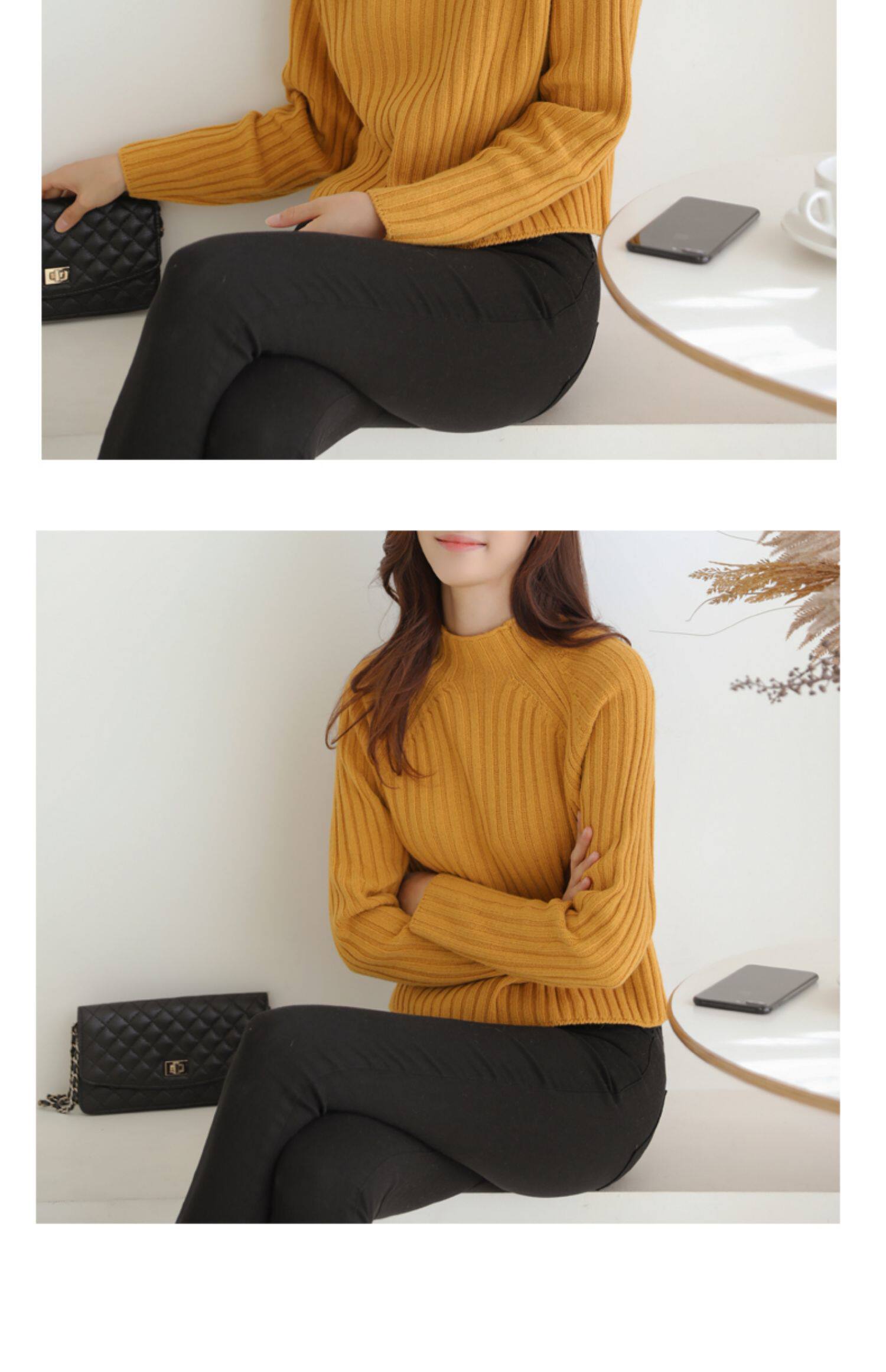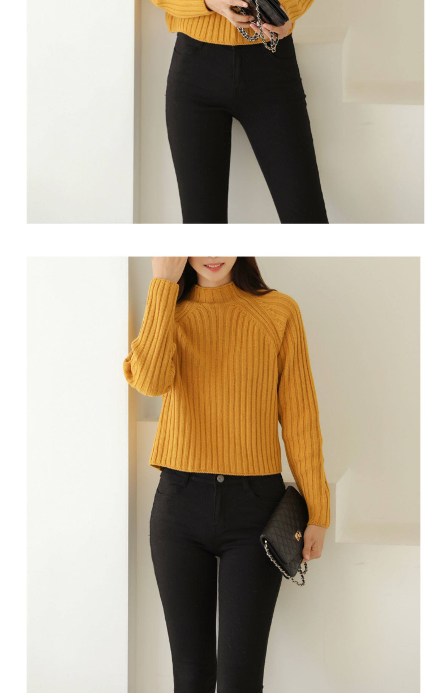 百洛安 Цветной зимний трикотажный базовый свитер, высокий воротник, в корейском стиле