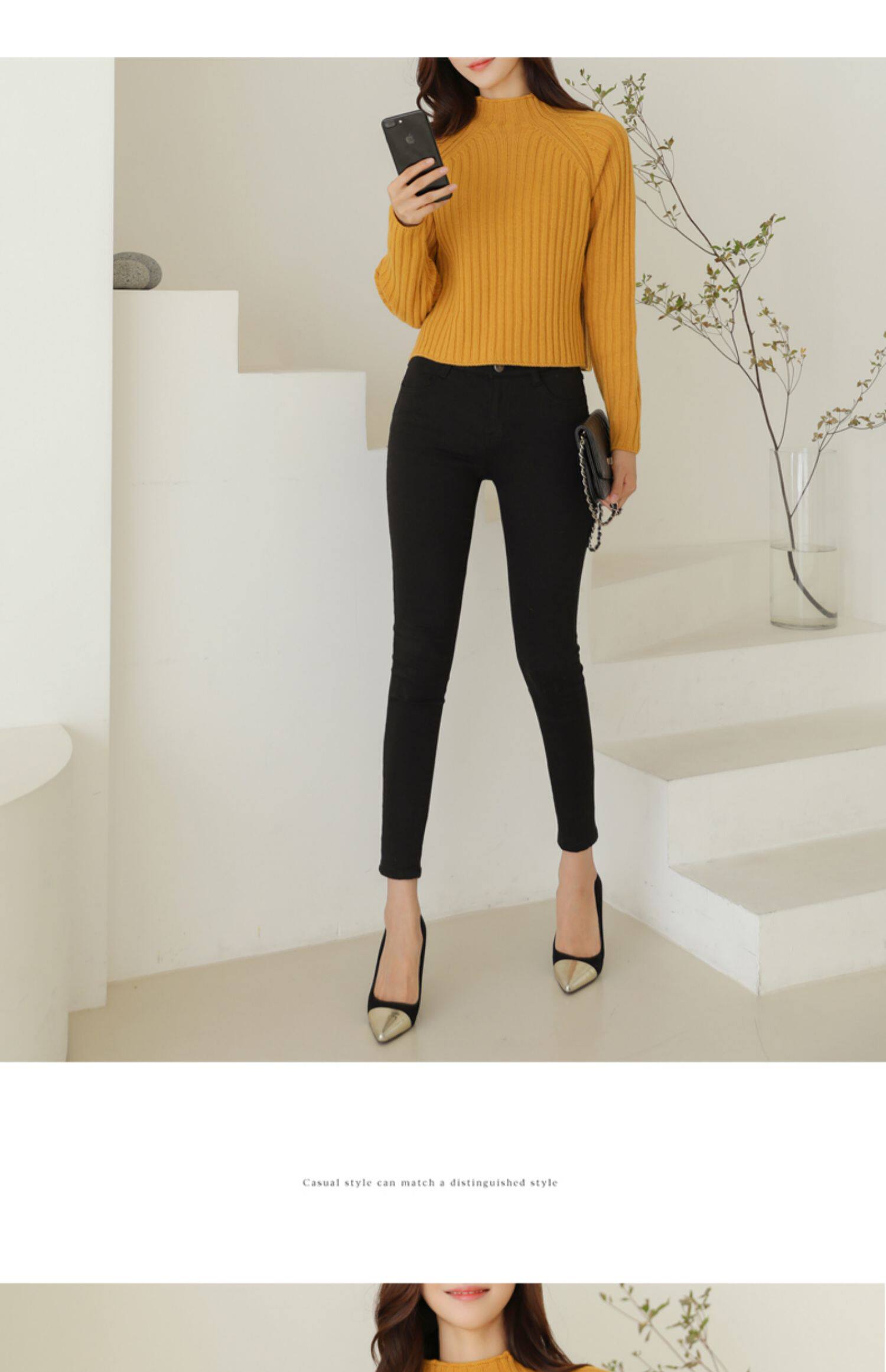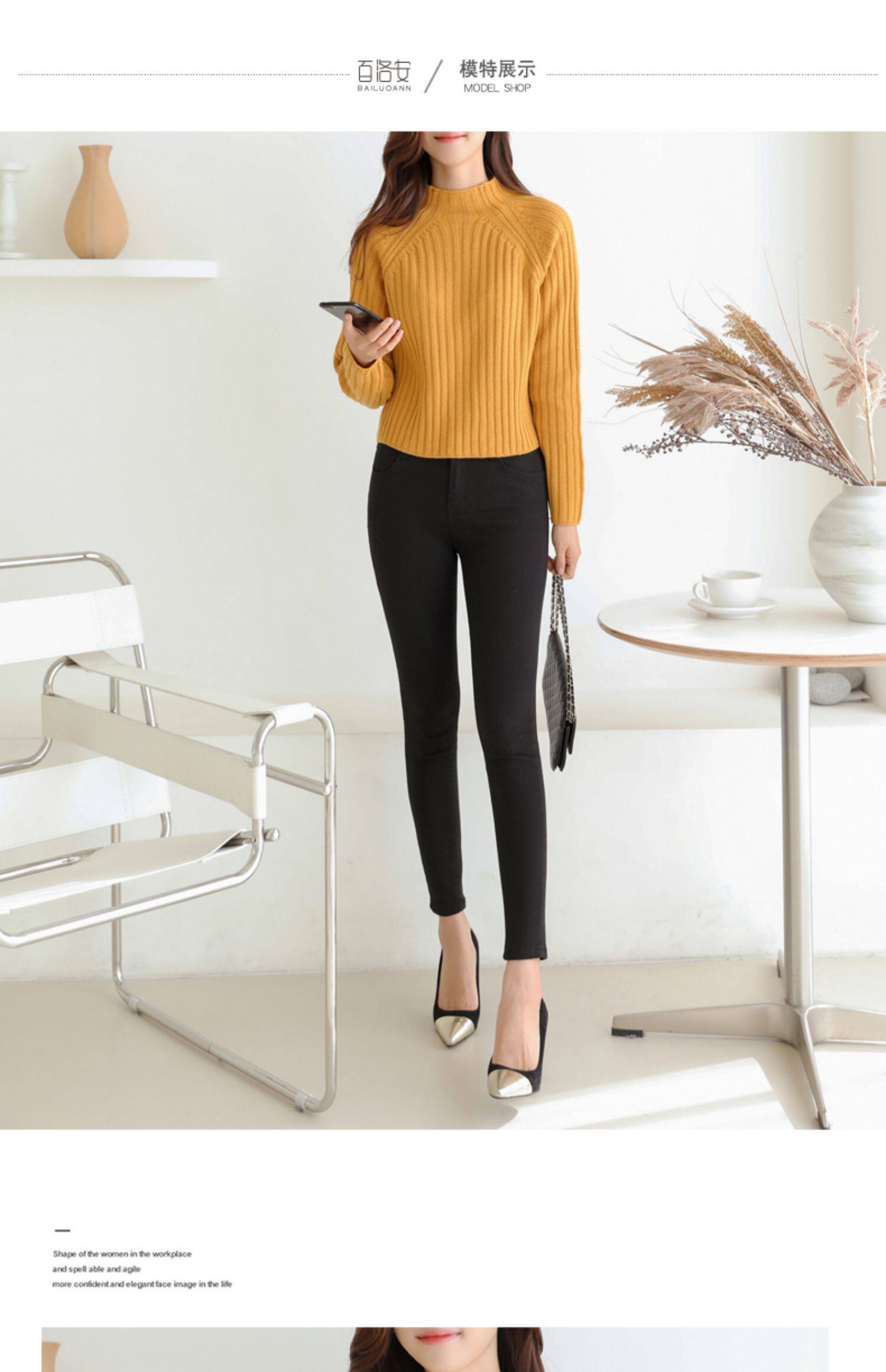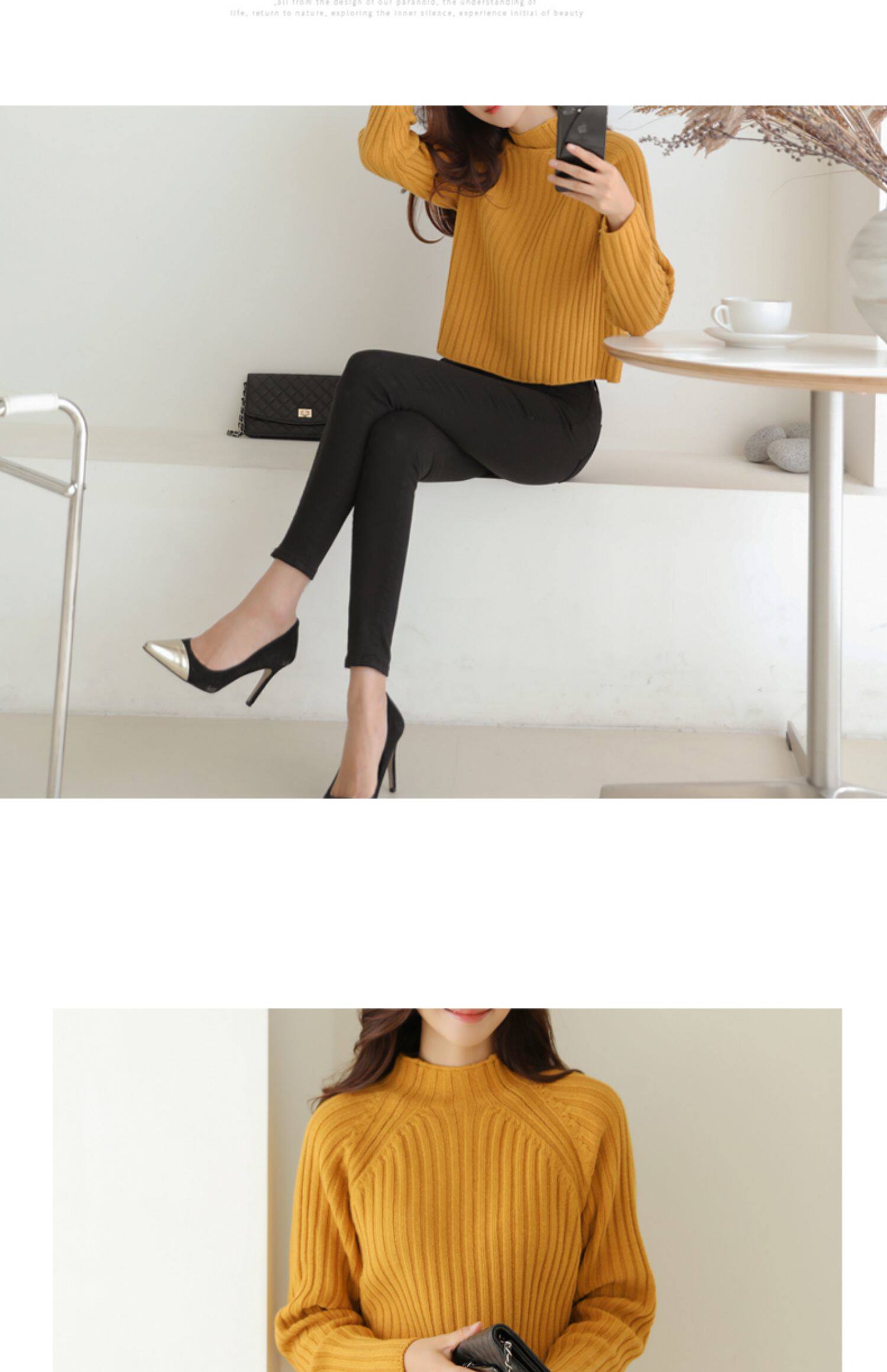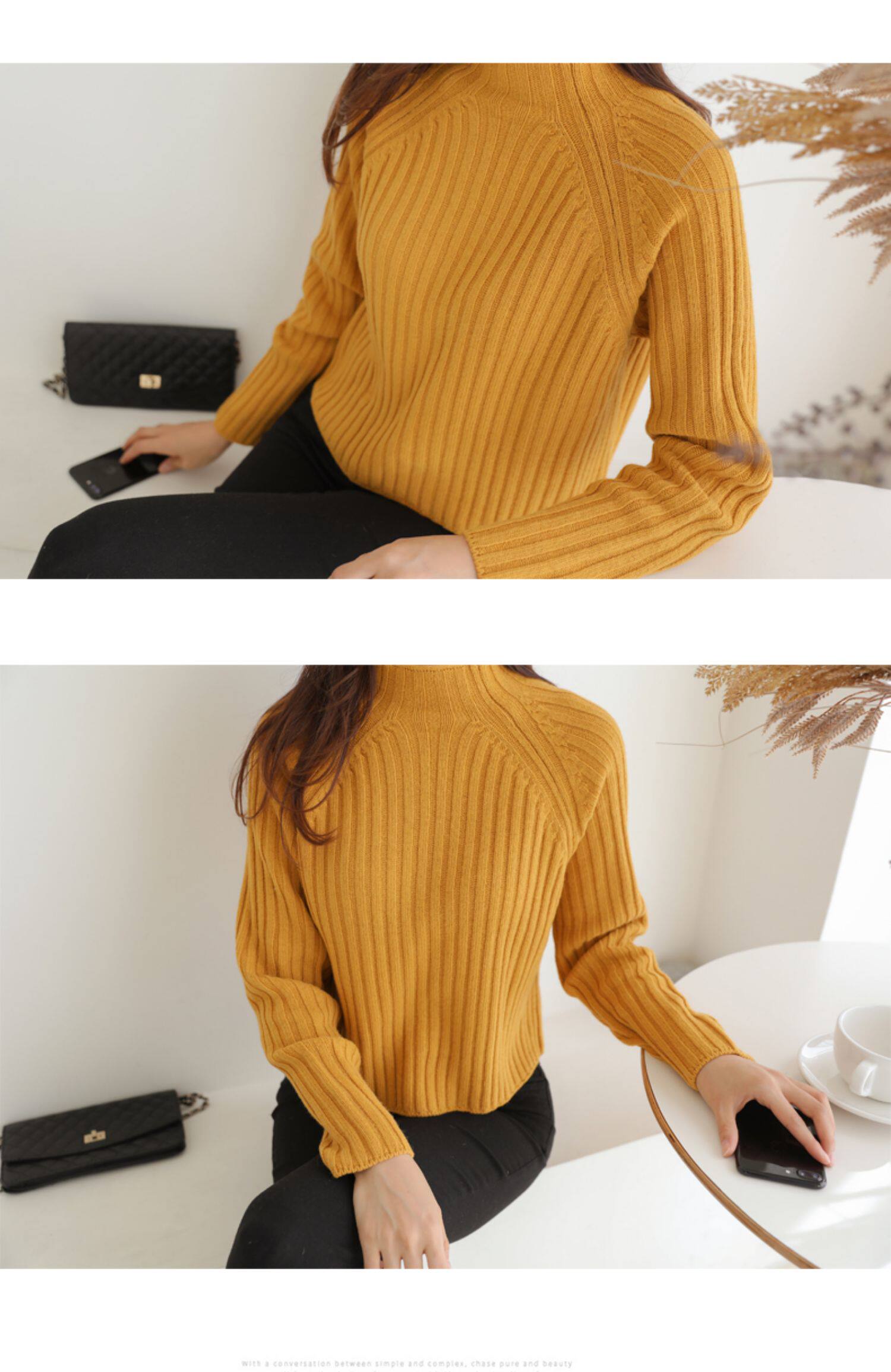 百洛安 Цветной зимний трикотажный базовый свитер, высокий воротник, в корейском стиле