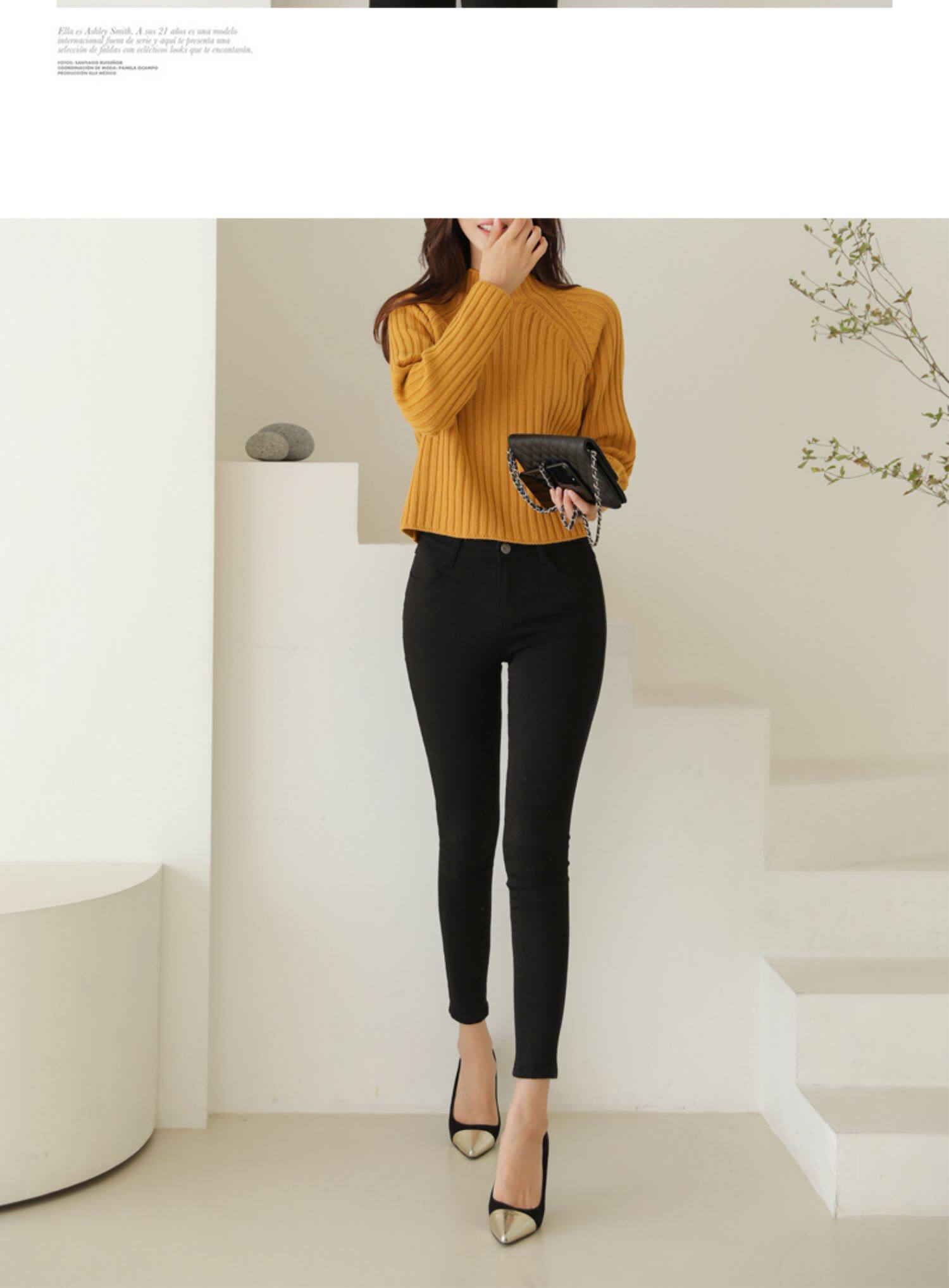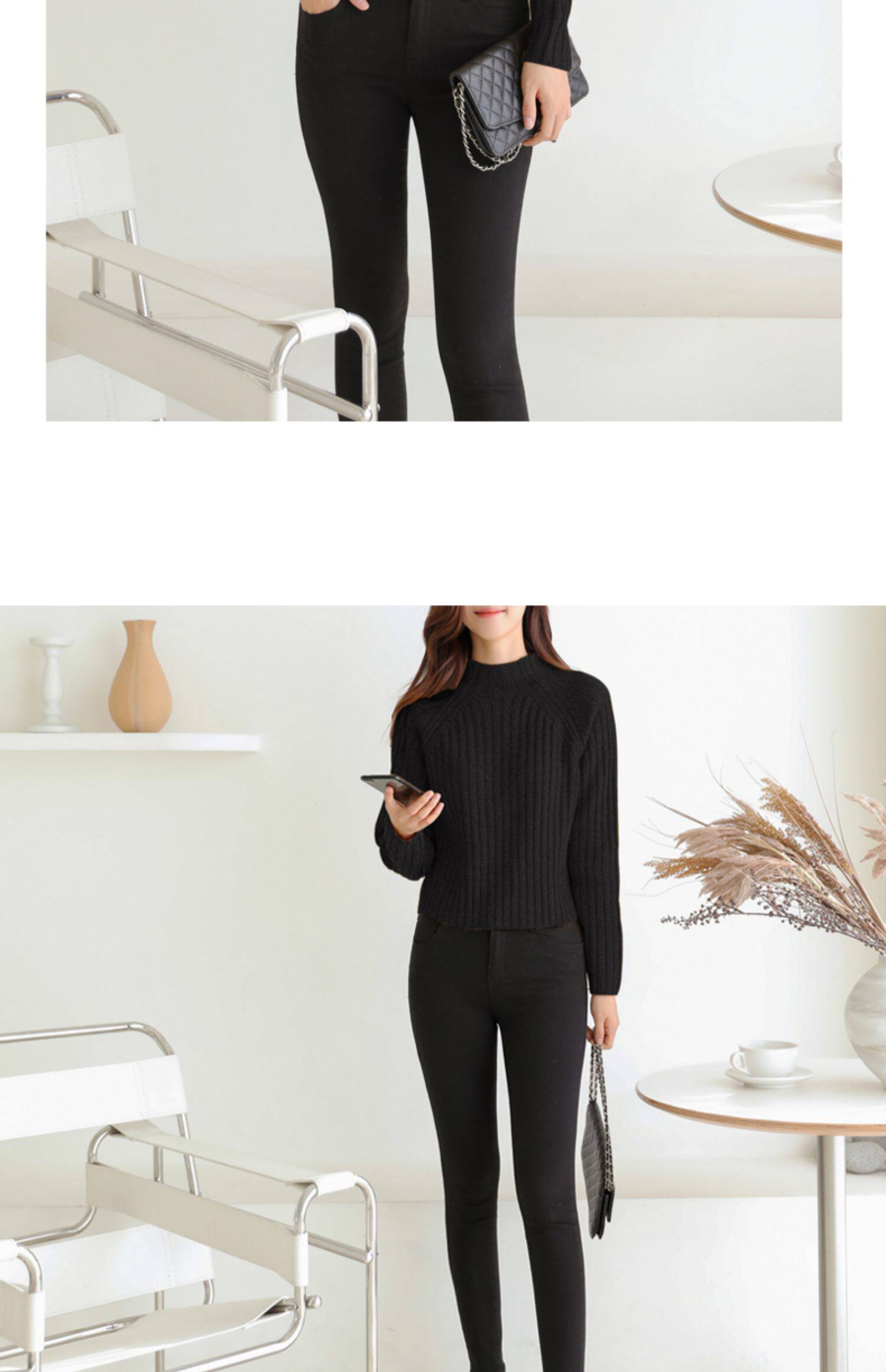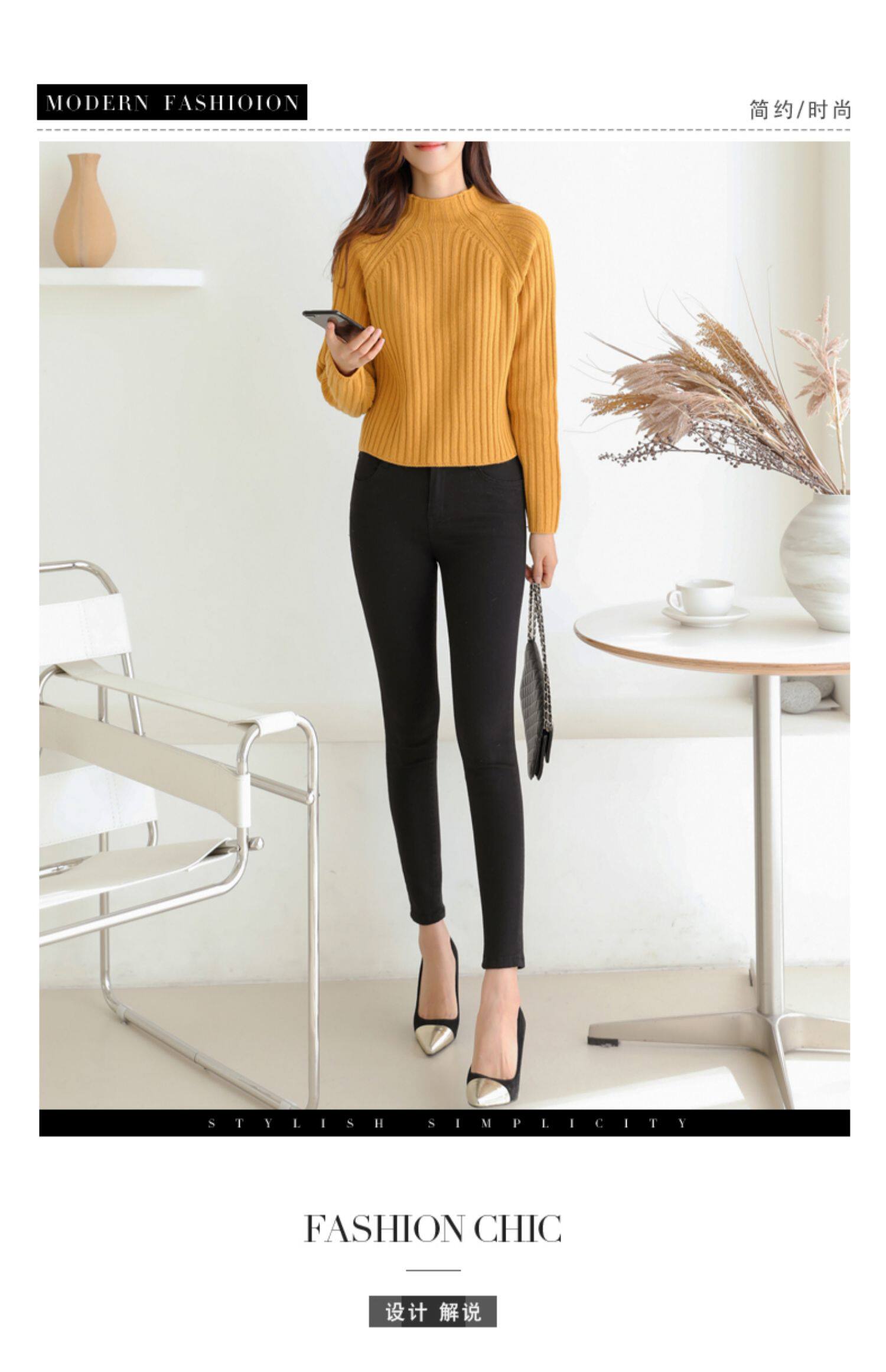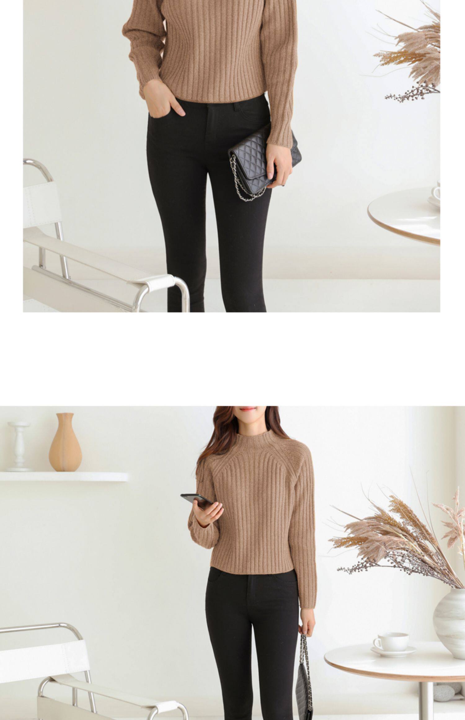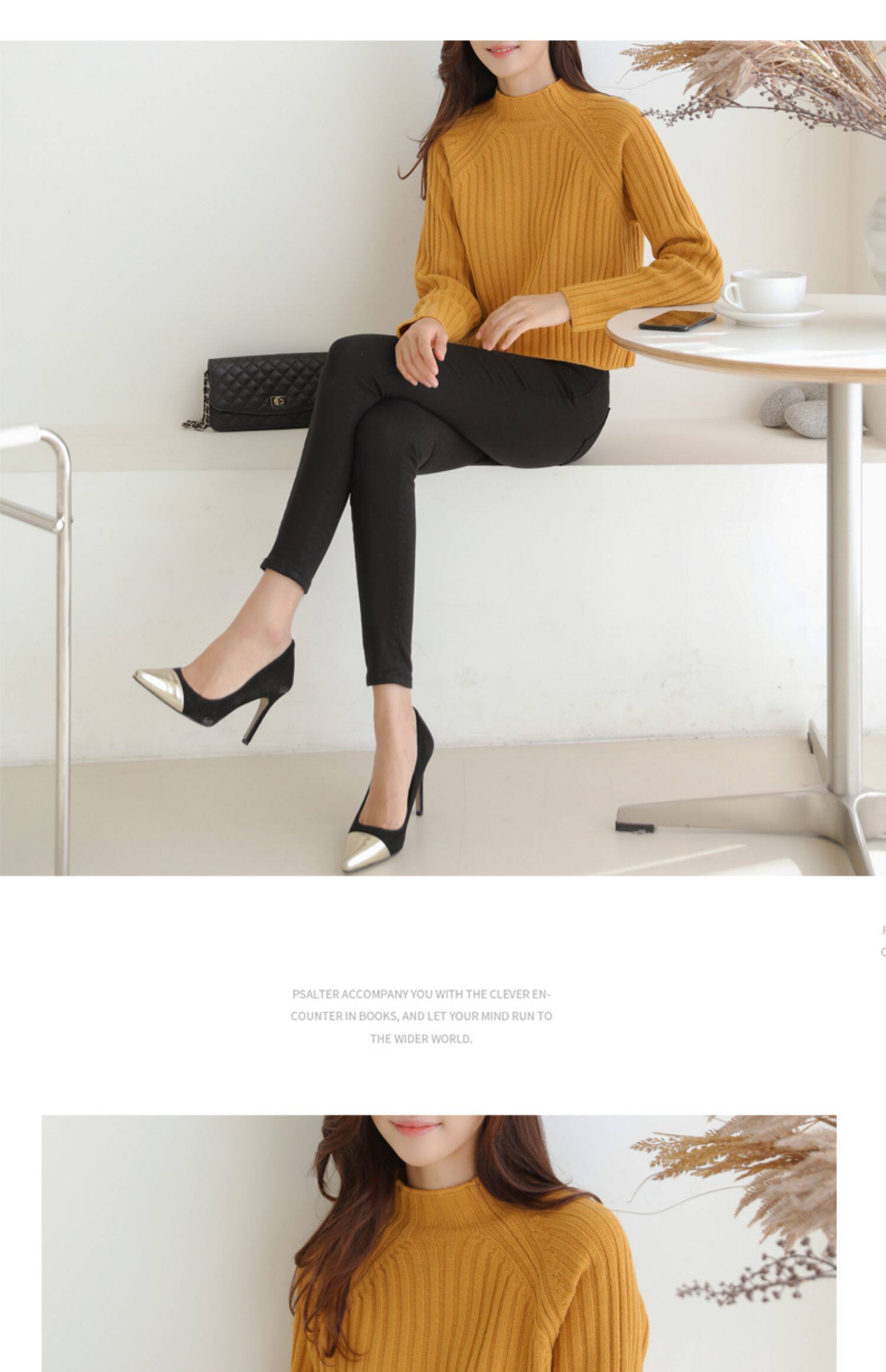 百洛安 Цветной зимний трикотажный базовый свитер, высокий воротник, в корейском стиле