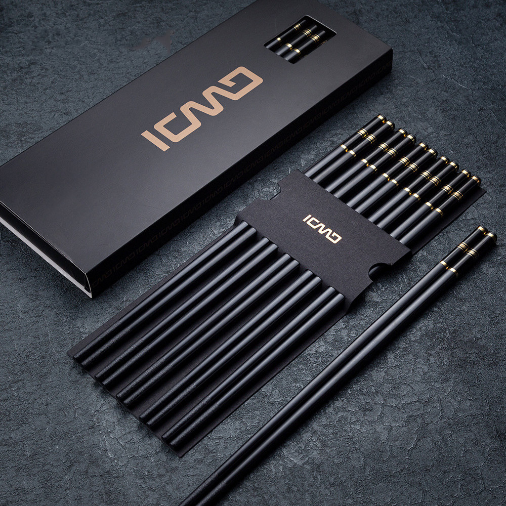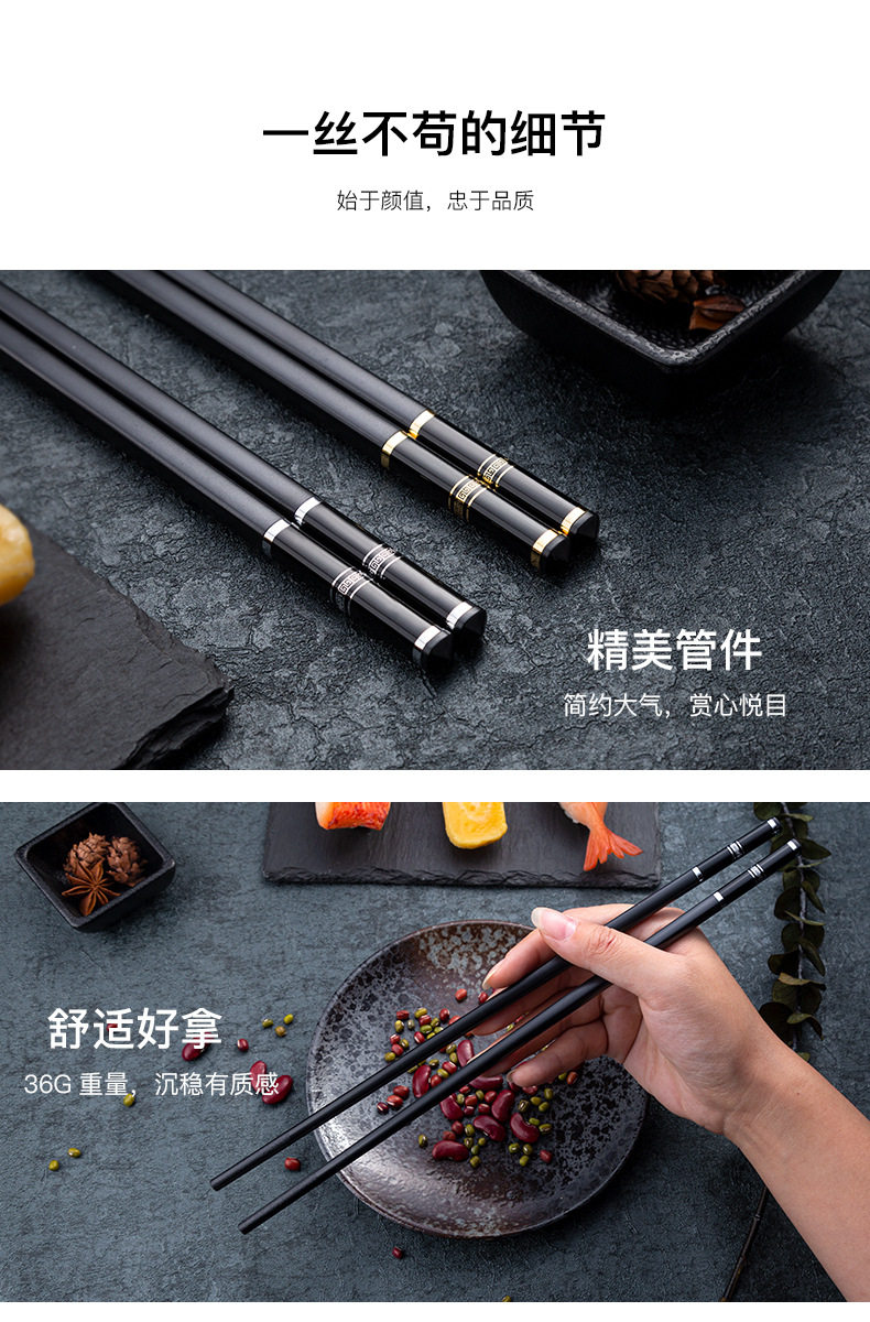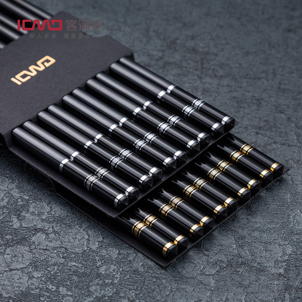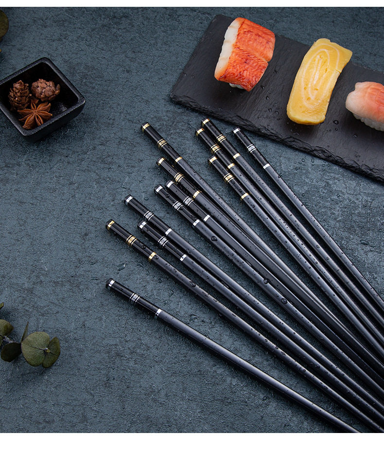 Металлические высококлассные палочки для еды, нескользящий черный комплект для отеля, японские и корейские