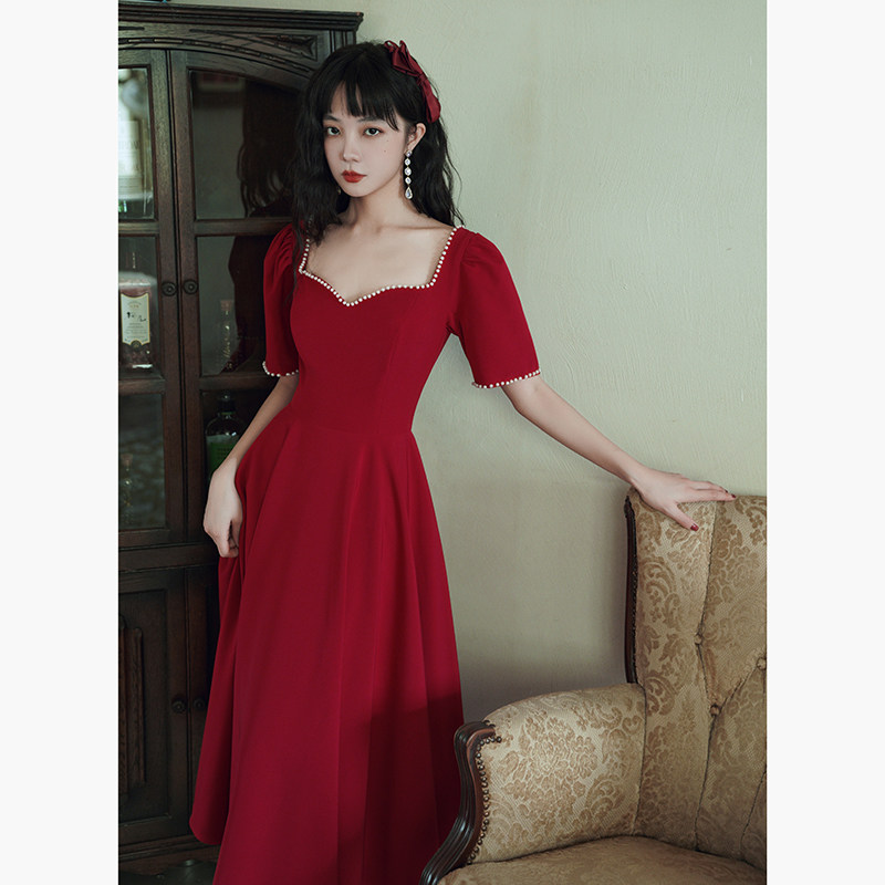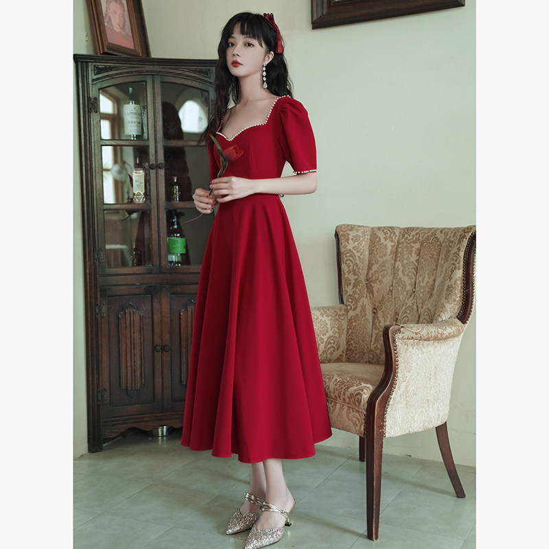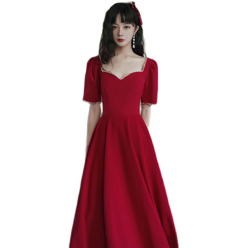 Бордовое демисезонное вечернее платье, длинное свадебное платье, средней длины