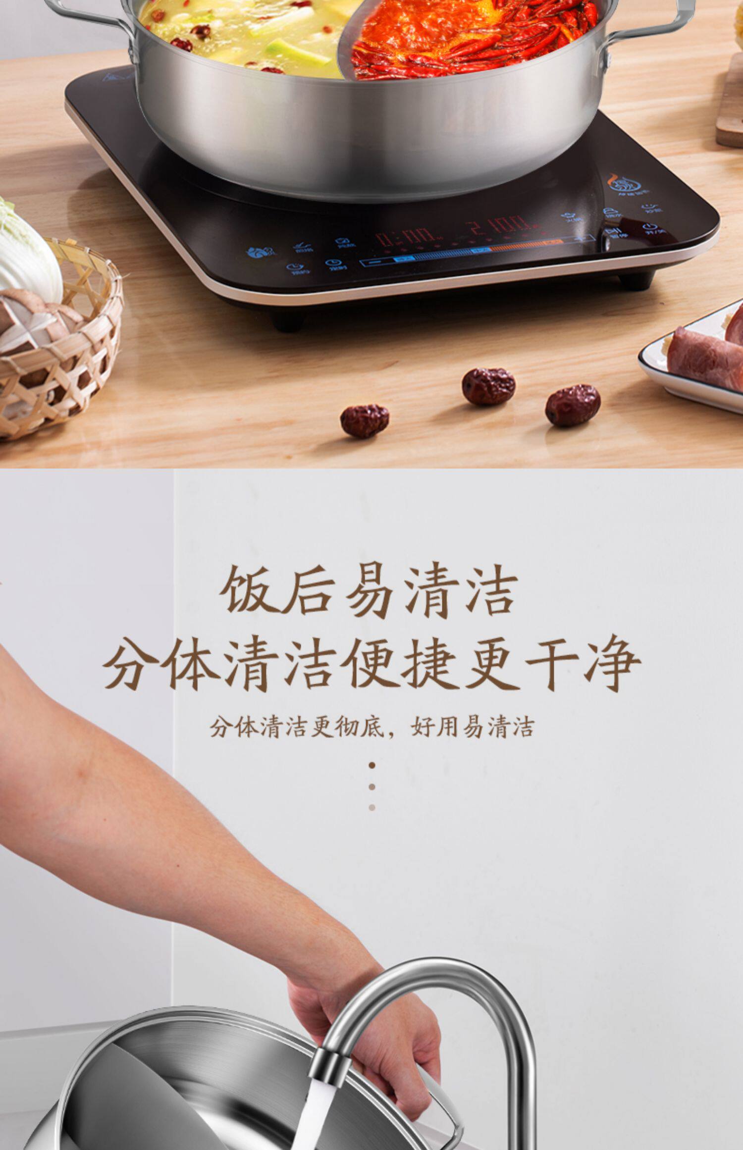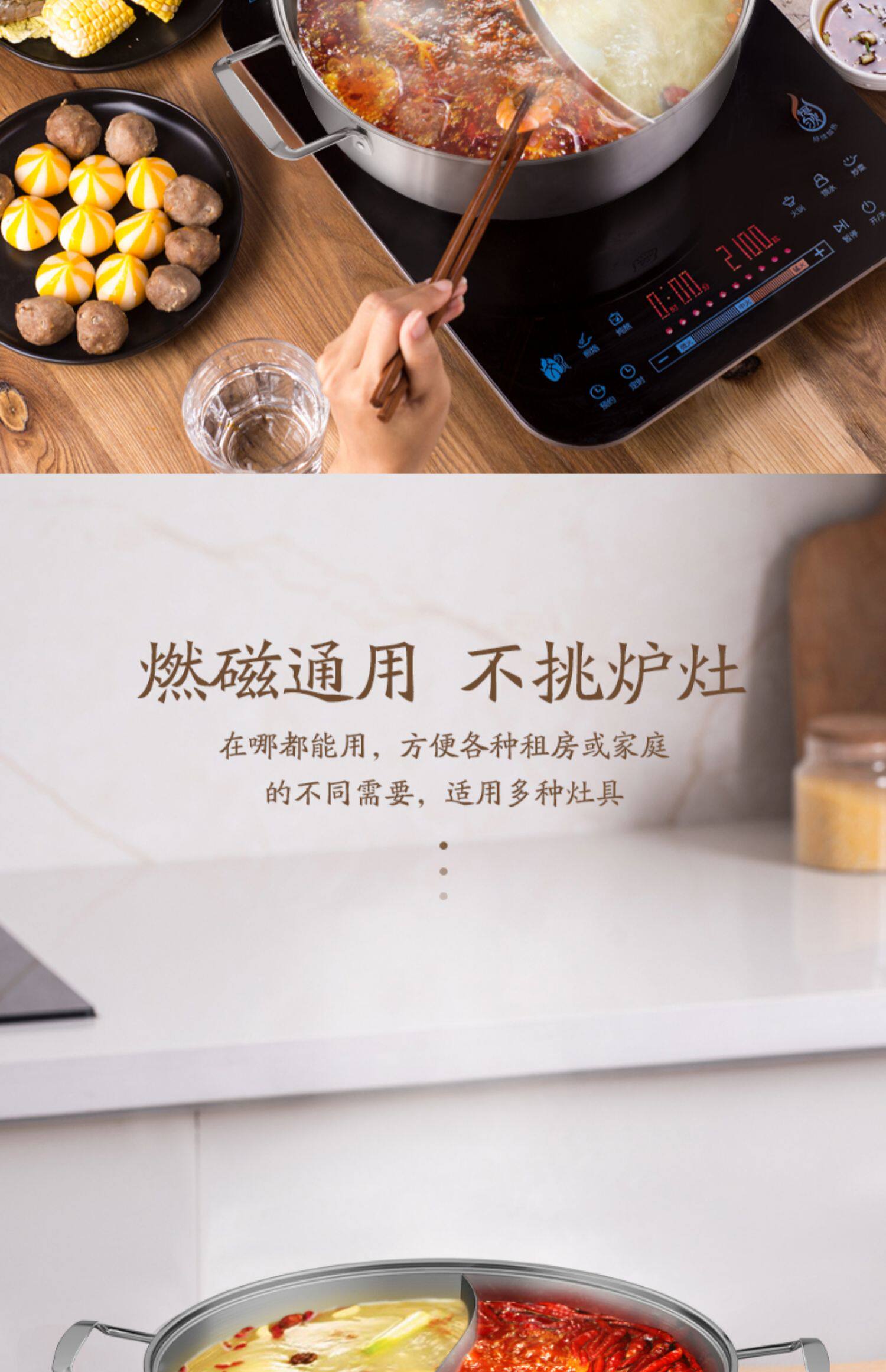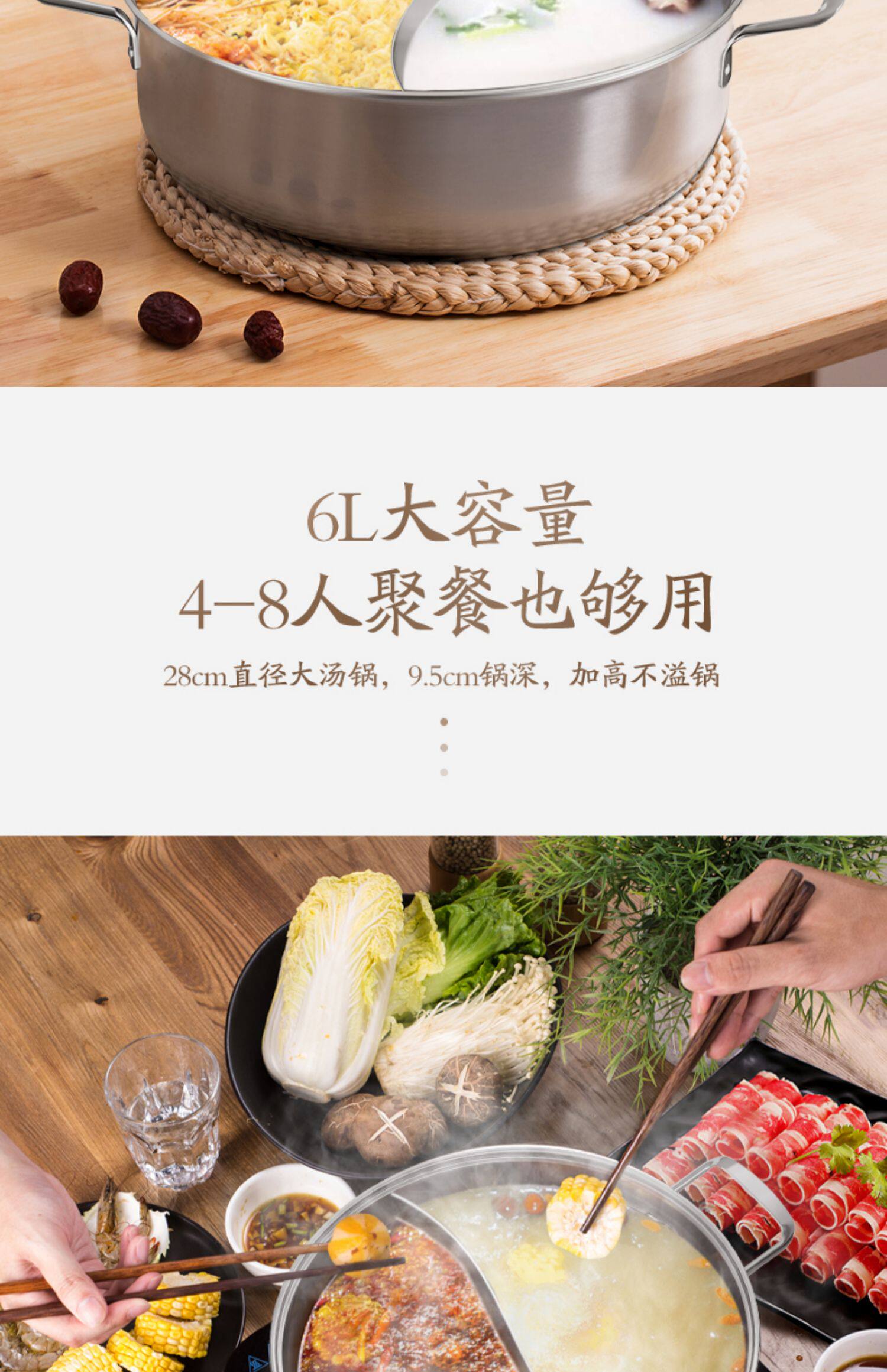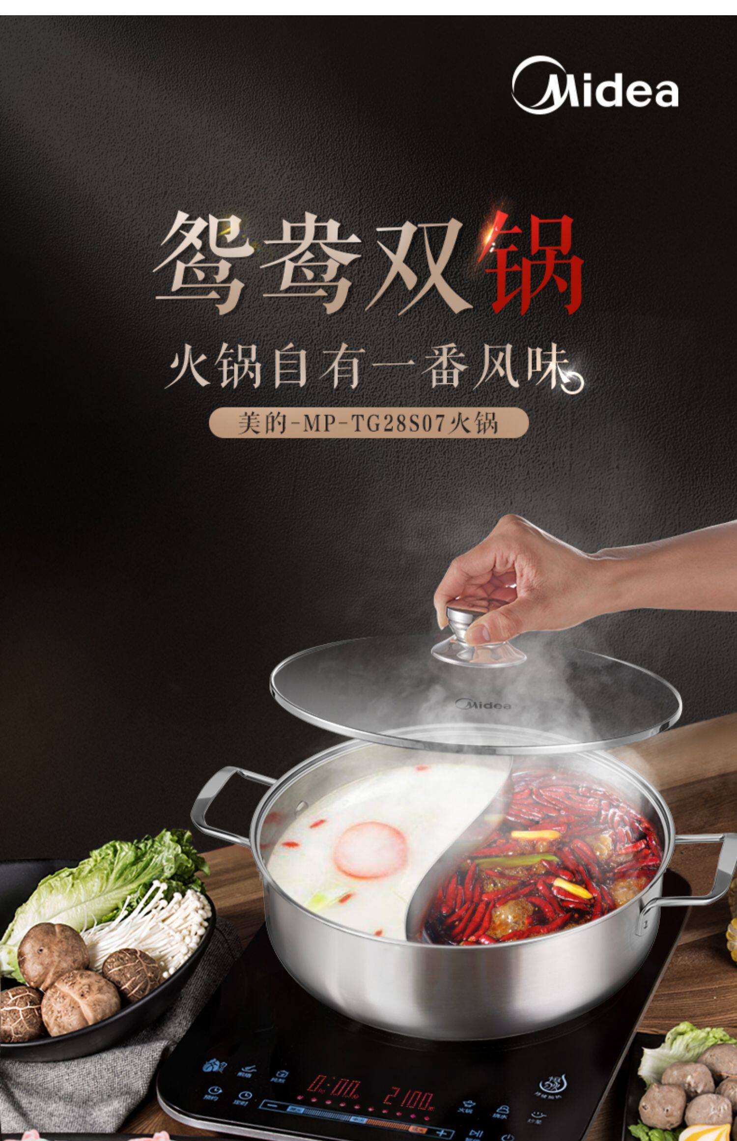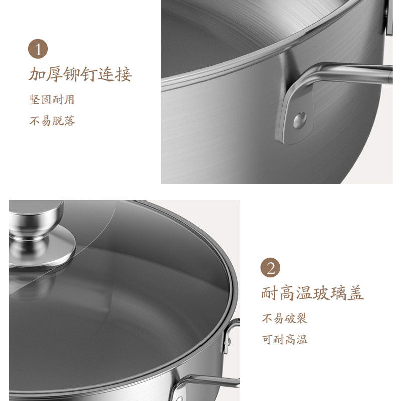 Midea 304 из нержавеющей стали Шабу -Шабу -Шабу горячий горшок домохозяйства с утолщенным шабу -Шабу -Шабу -Шабу сжигающий магнитный универсальный