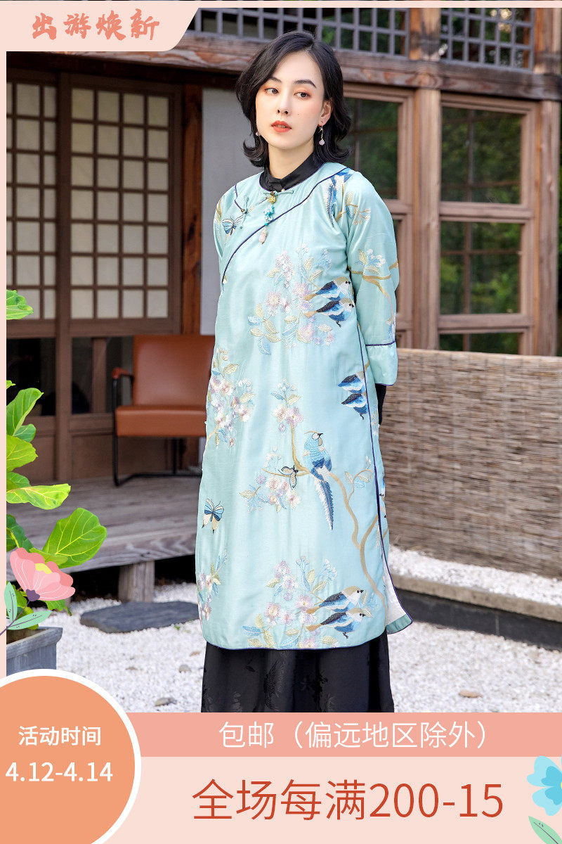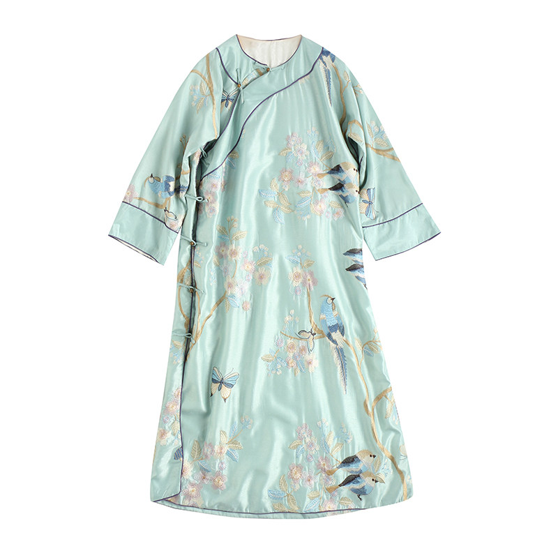Демисезонный этнический лонгслив, платье, ретро ципао, этнический стиль, с вышивкой, китайский стиль