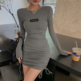 Модное осеннее платье с круглым воротником, приталенная мини-юбка, на шнурках, с акцентом на бедрах