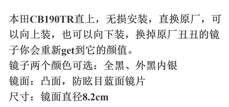 Применимо к новым континентам Honda CBF190TR Offeructor ретро -заднее просмотр заднего -просмотр Retro 190 Car Mircor
