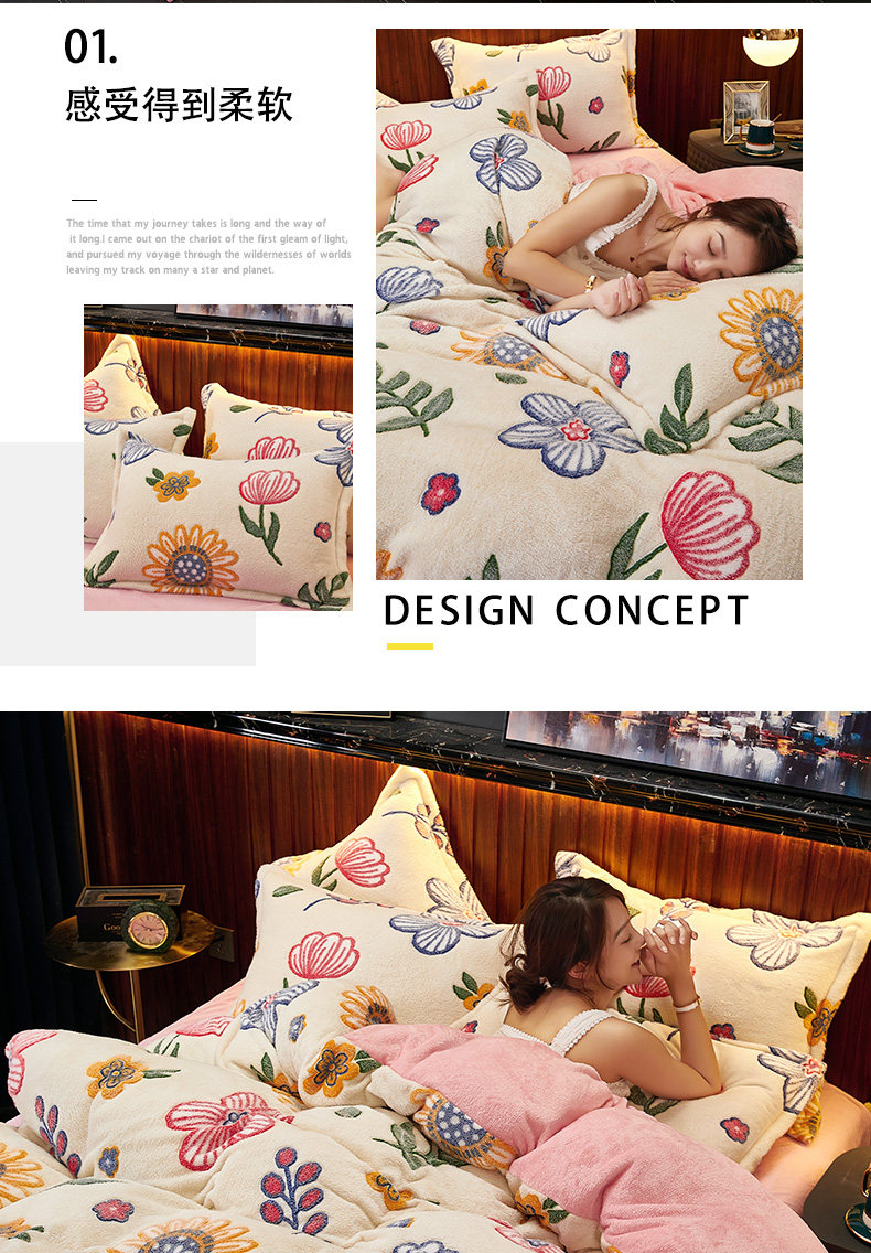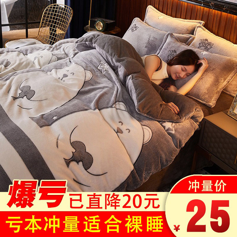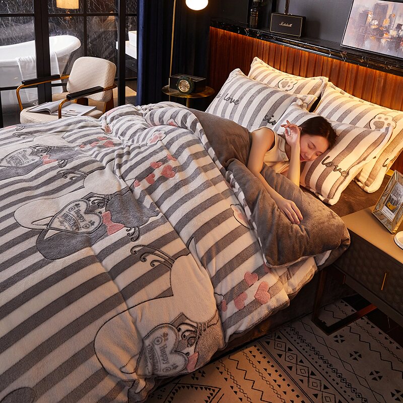 Демисезонные бархатные джинсы с начесом, удерживающий тепло двусторонний комплект, коралловый бархатный демисезонный флисовый пододеяльник, простыня, 4 предмета, 3 предмета