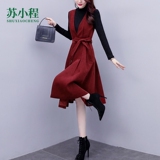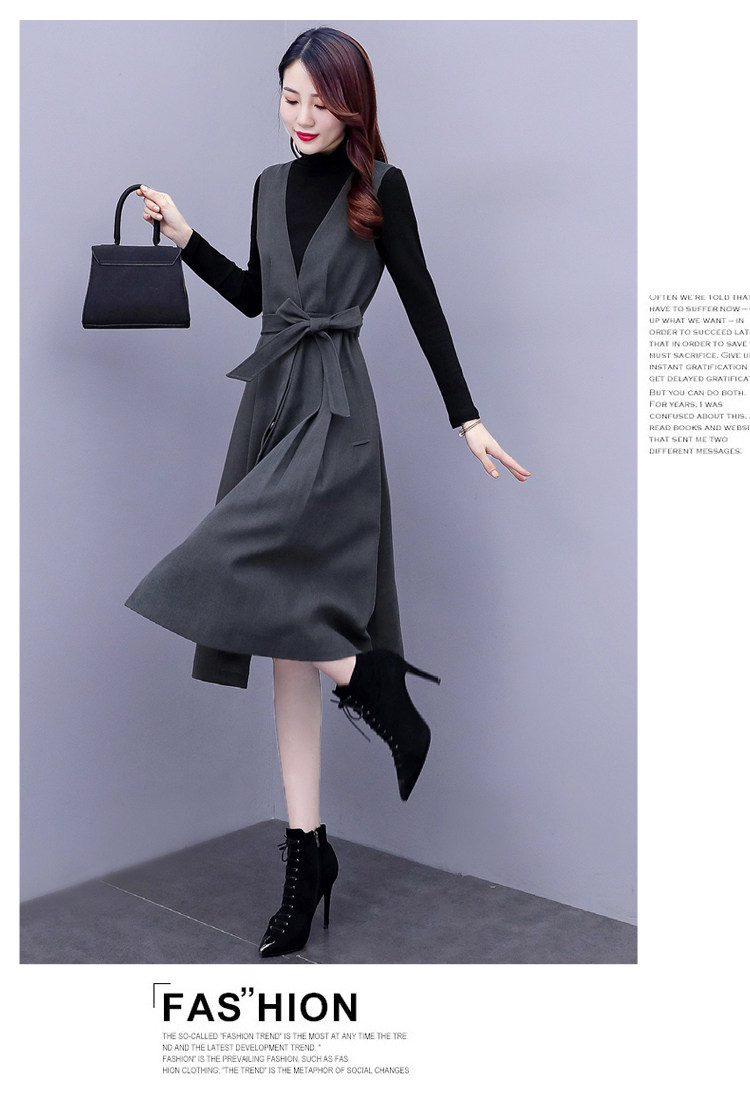 Шерстяной осенний модный элитный длинный жилет, платье, демисезонный комплект, коллекция 2022, средней длины