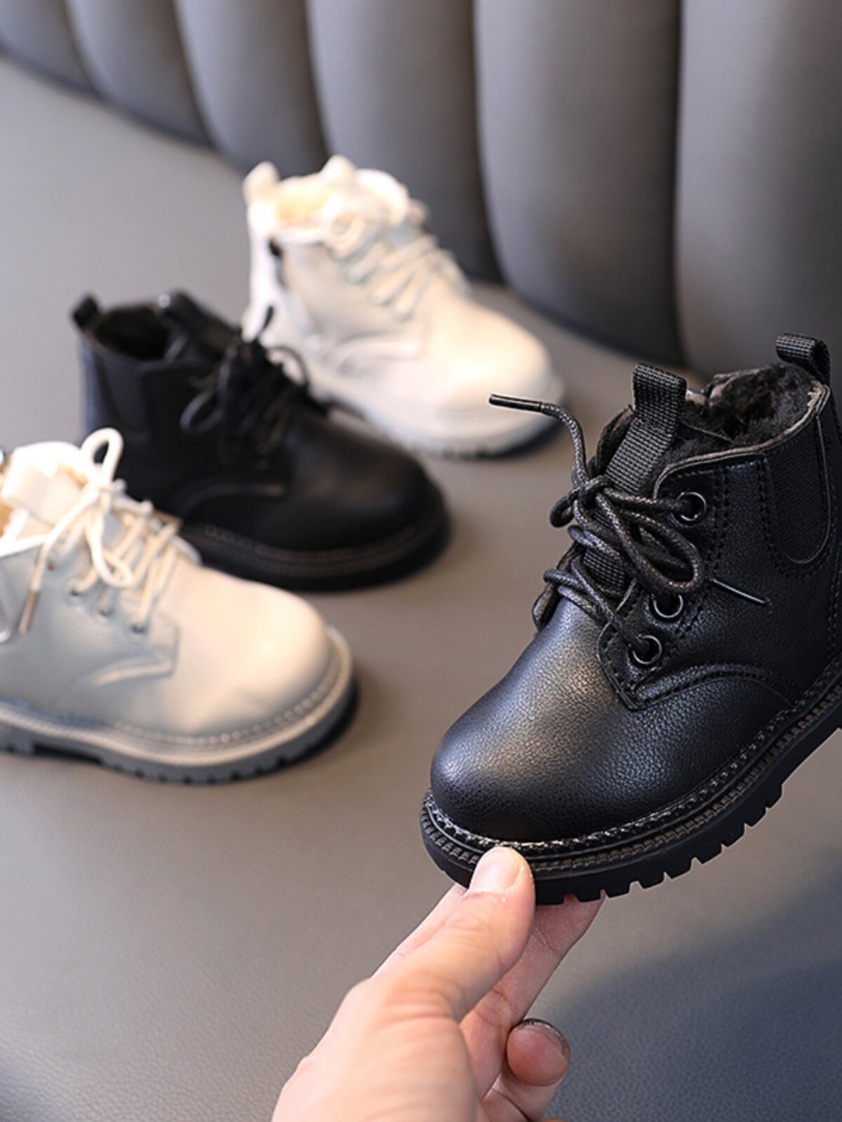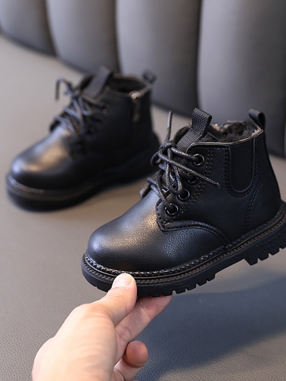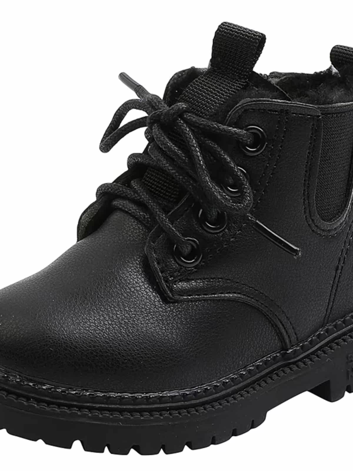 Martens, утепленные черные детские зимние короткие сапоги для кожаной обуви для мальчиков, детская обувь