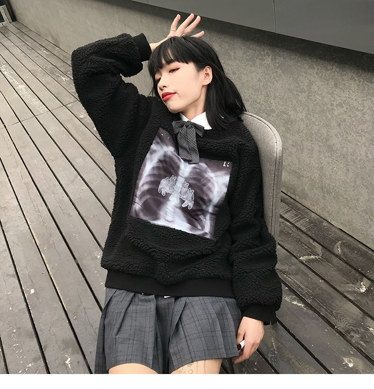 Черная осенняя толстовка, лонгслив с круглым воротником, свободный крой