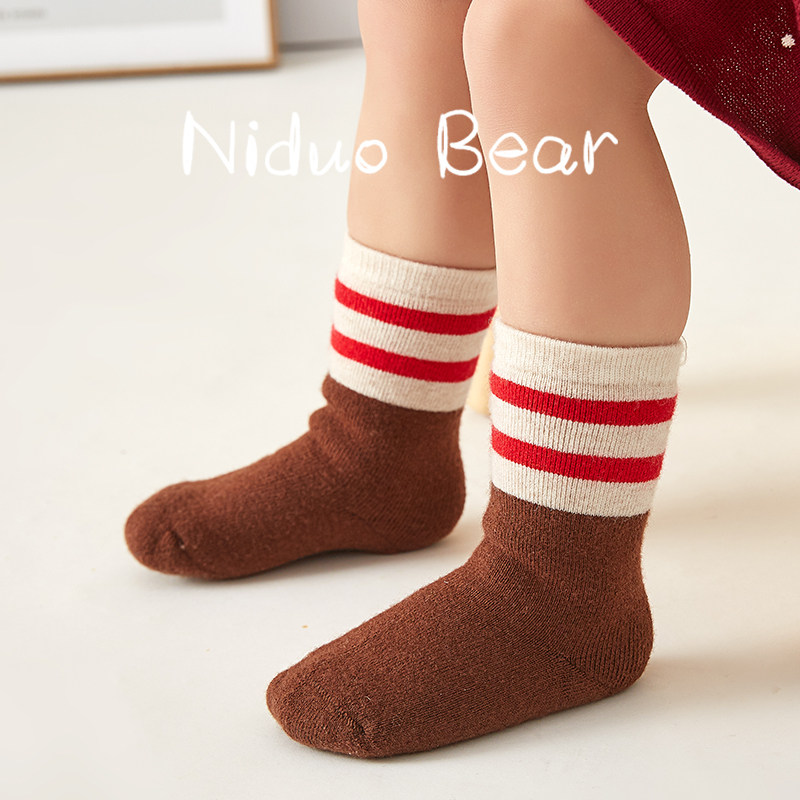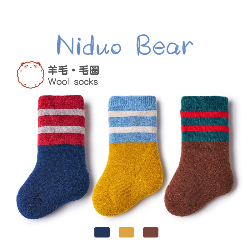 尼多熊 Детские шерстяные удерживающие тепло демисезонные хлопковые носки для новорожденных, увеличенная толщина, длина миди