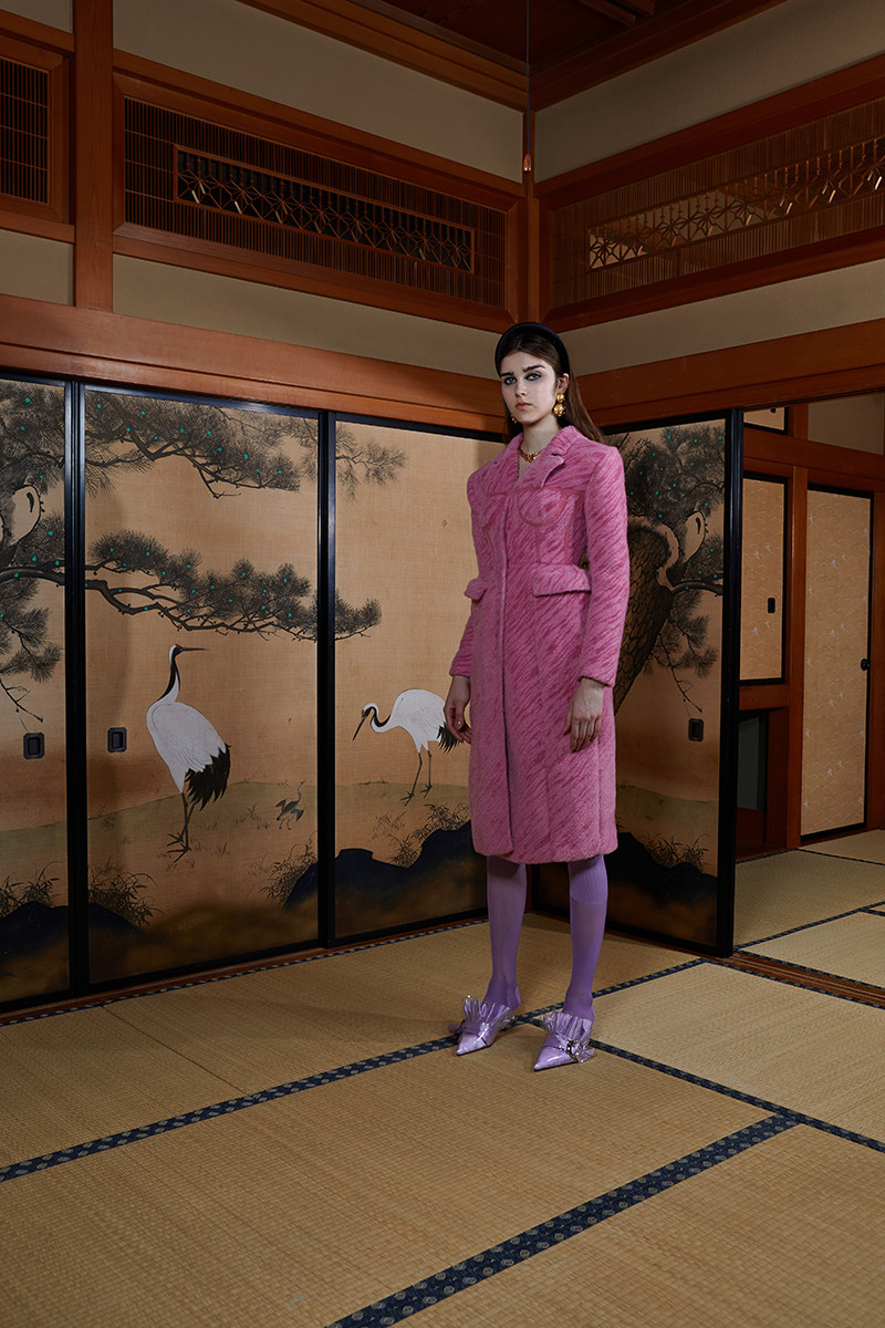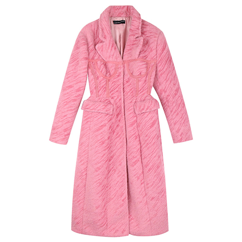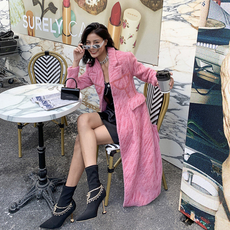 Дизайнерский SleepOverSleep, осенне-зимний новый розовый бюстгальтер с плюшевыми украшениями, тонкое длинное пальто для женщин Мулан