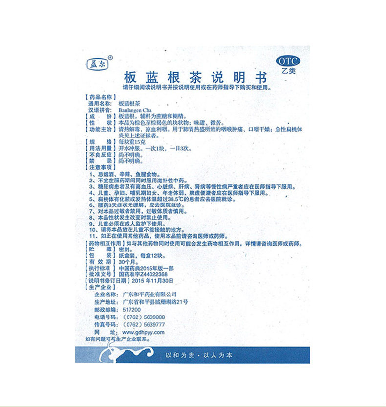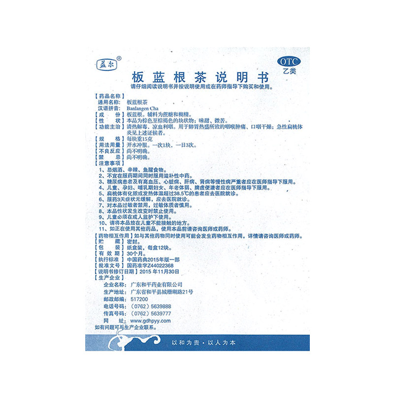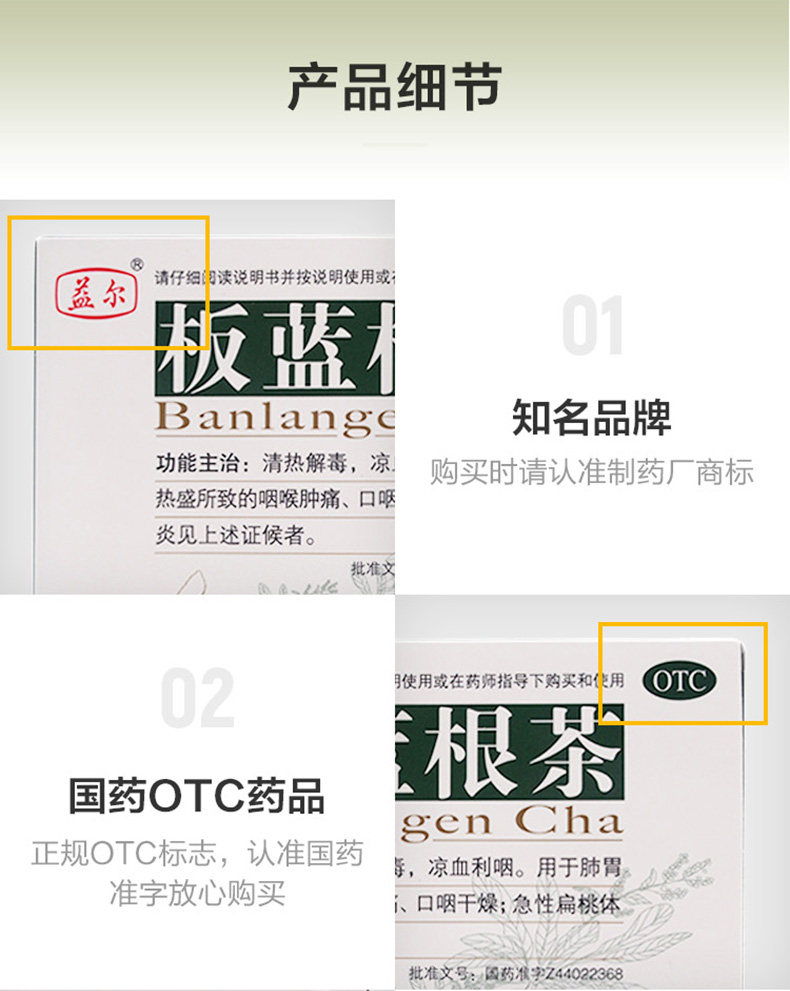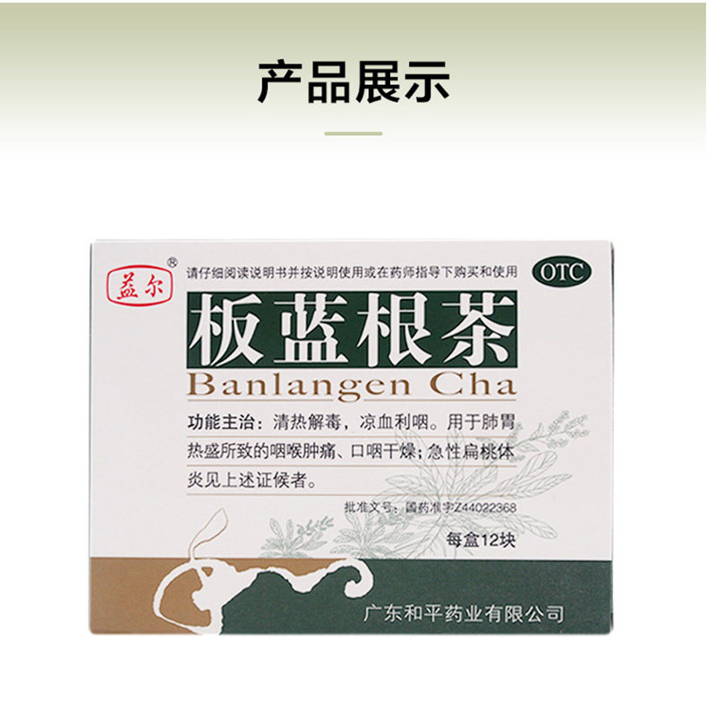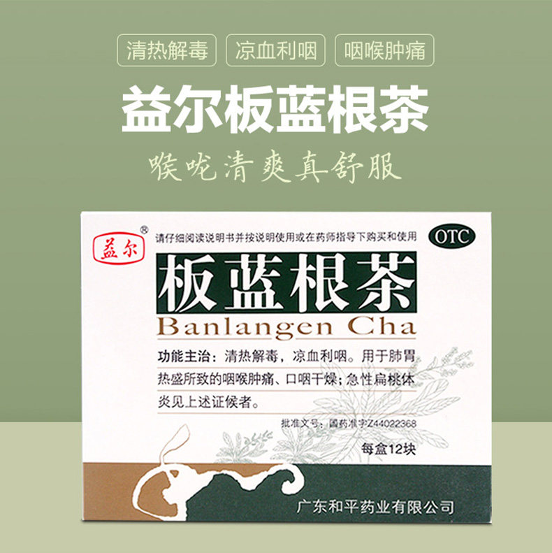 益尔 Banlangen Tea 12 кусочков острая очистка сыпь маленьких детей, детоксикация горла и боль, инфекция верхних дыхательных путей, сухость ротоглотки