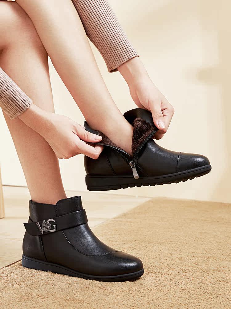 Демисезонные кожаные флисовые сапоги, удерживающие тепло нескользящие туфли для матери, 2020