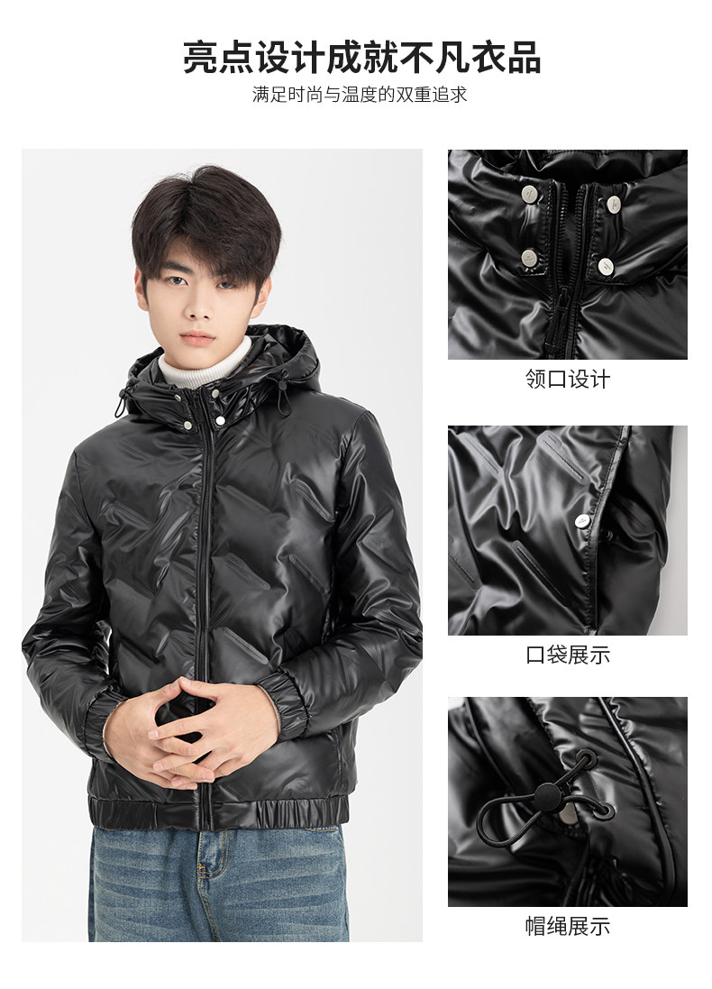 Демисезонный короткий металлический ветрозащитный пуховик с капюшоном для отдыха, коллекция 2021