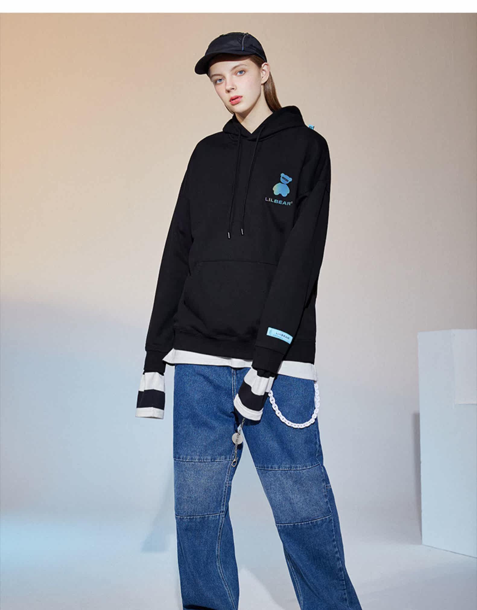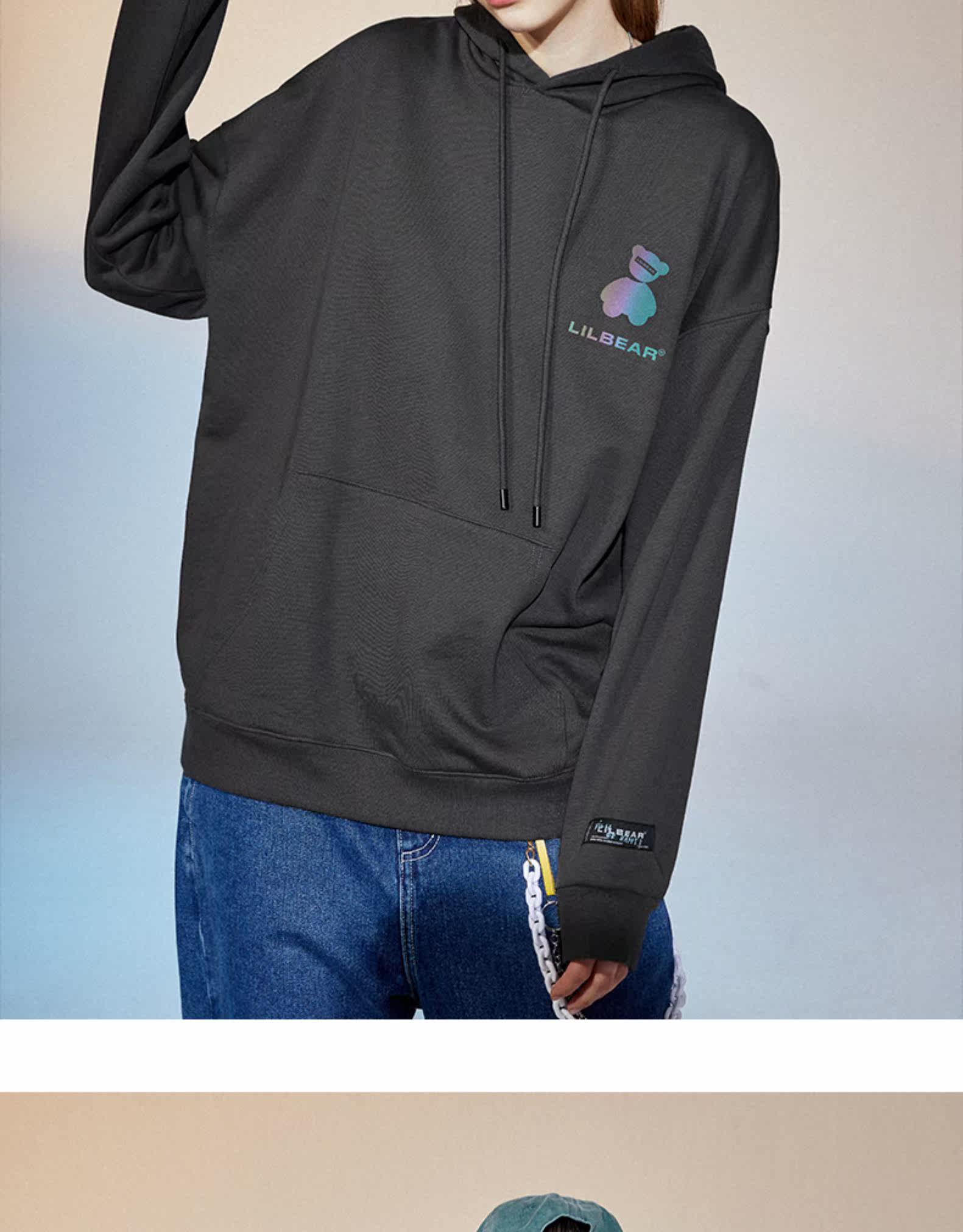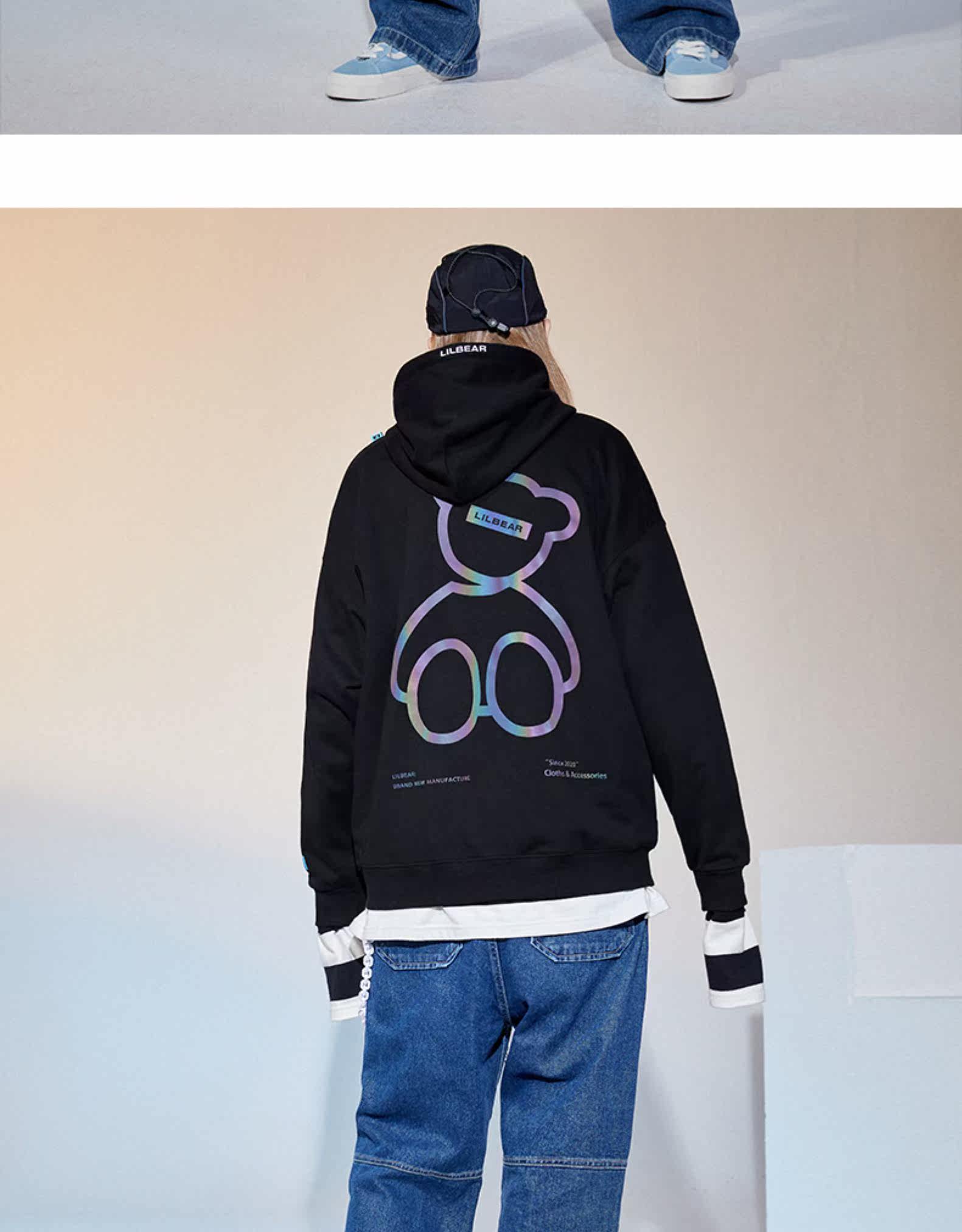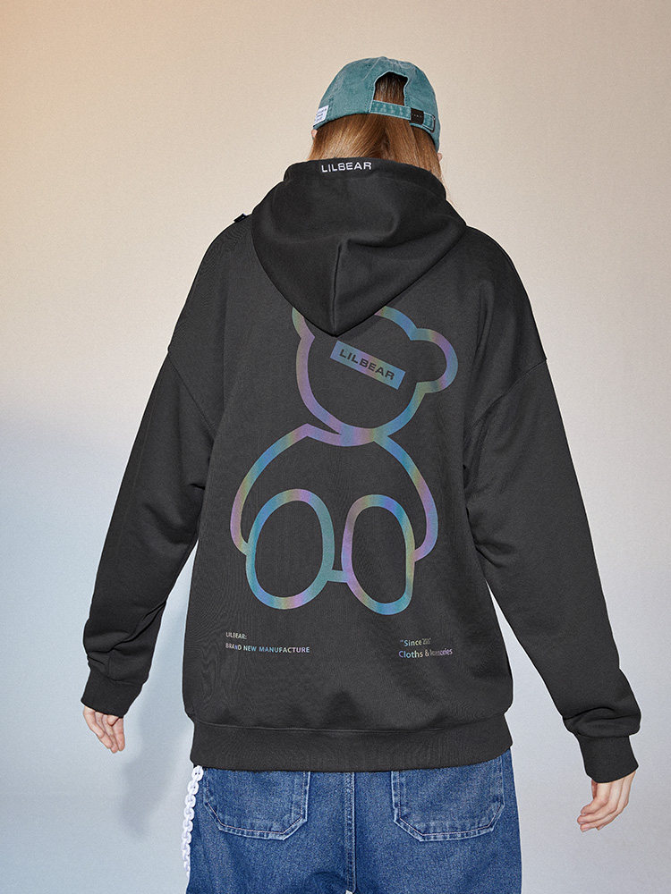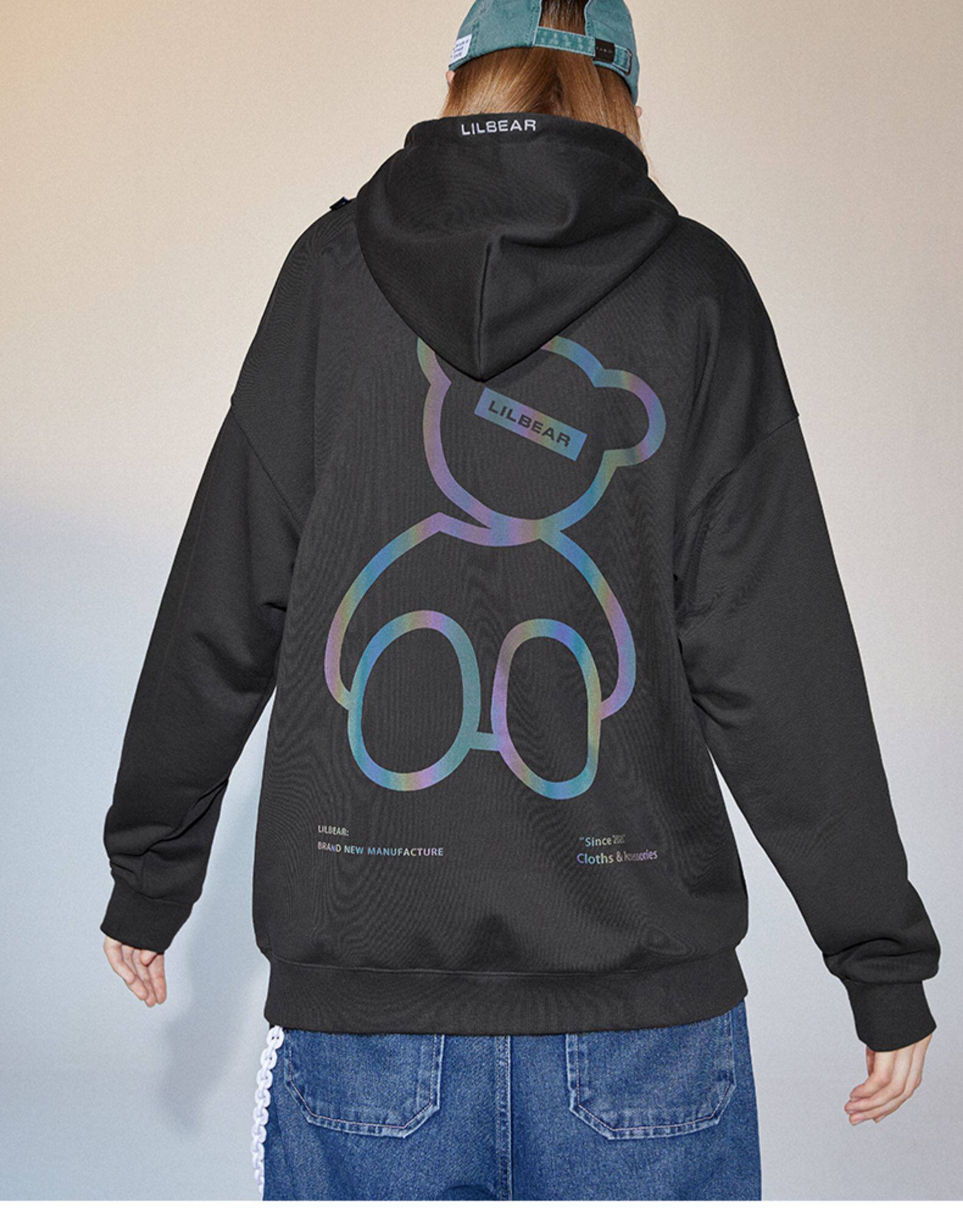 Lilbetter Демисезонная светоотражающая толстовка с капюшоном, с медвежатами, коллекция 2021, оверсайз