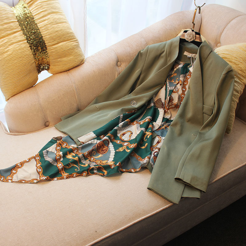 Шелковистая ткань, элегантный демисезонный лонгслив, костюм, Гонконг, французский стиль, простой и элегантный дизайн, свободный крой