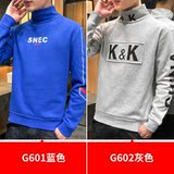 Свитшот, демисезонная утепленная толстовка, синее трендовое термобелье, куртка, высокий воротник, подходит для подростков, оверсайз