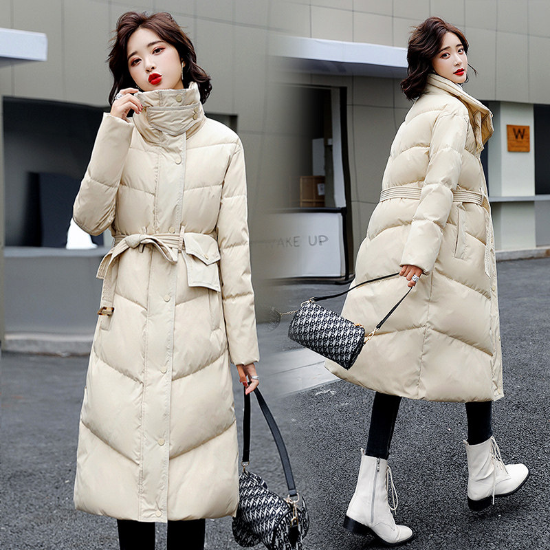 Длинный приталенный пуховик с пухом, куртка, средней длины, 2021 года, увеличенная толщина