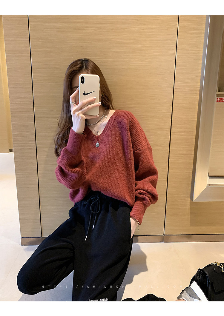 Красный демисезонный трикотажный свитер, в корейском стиле