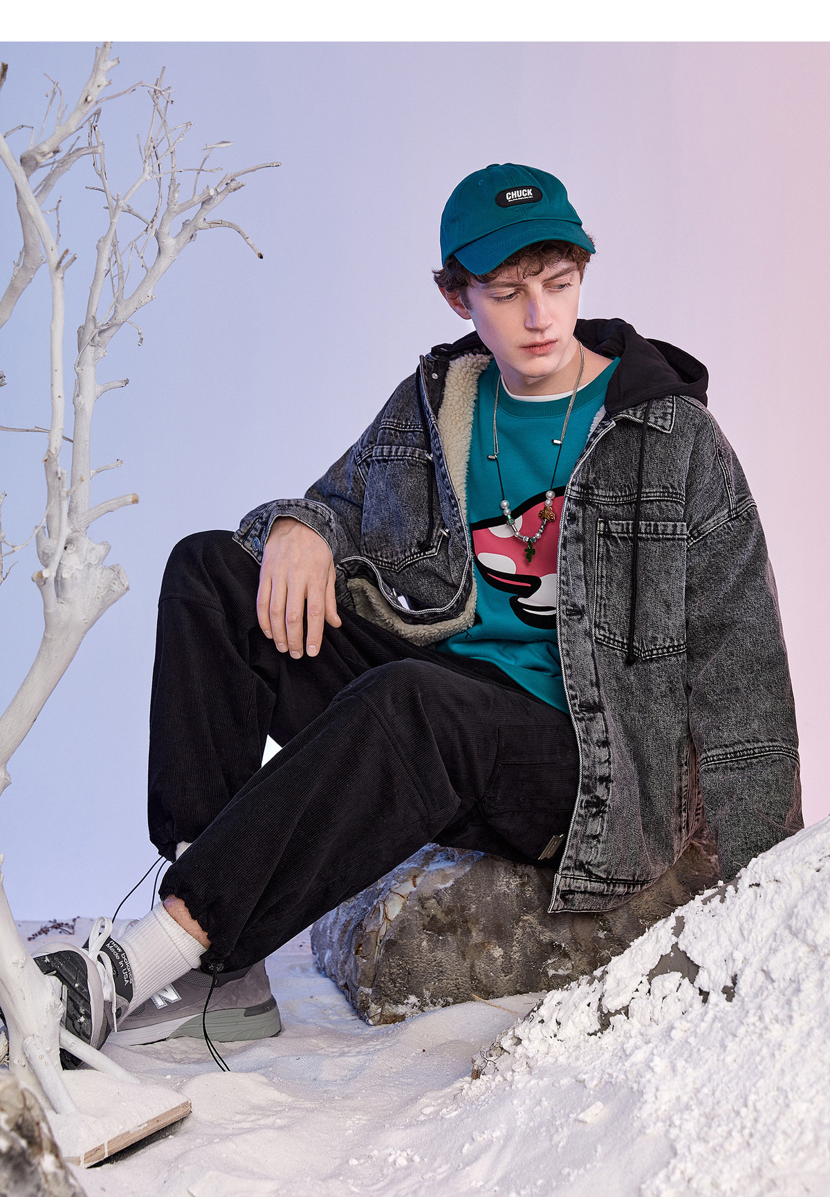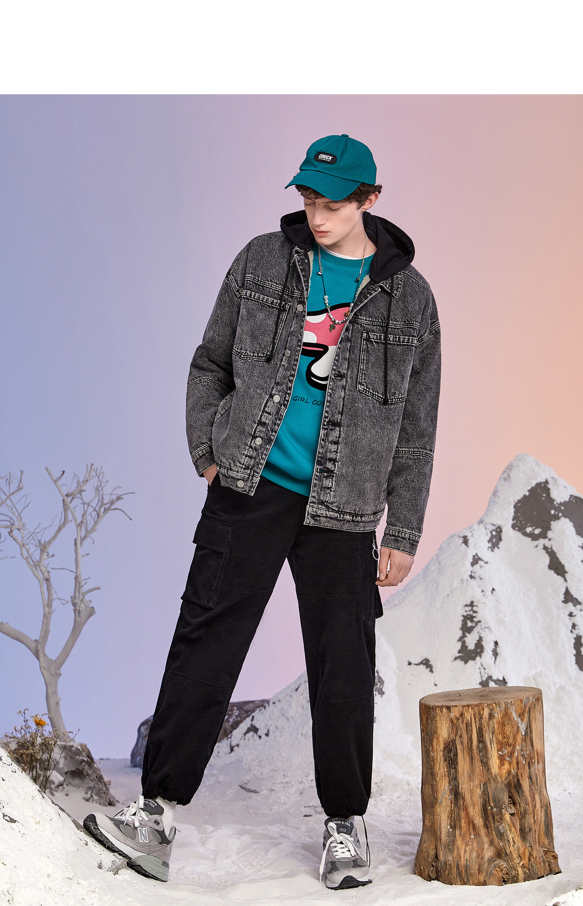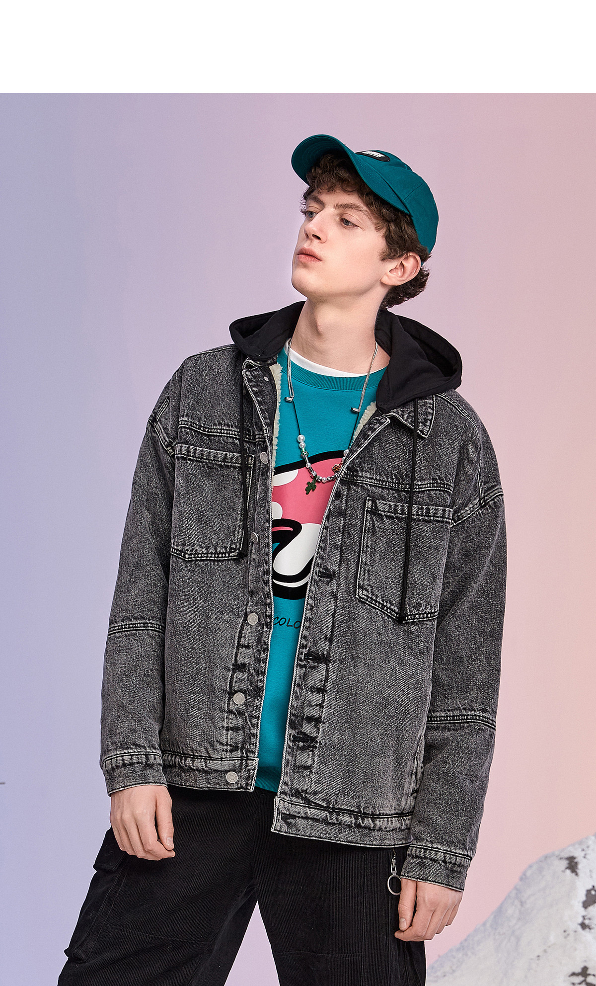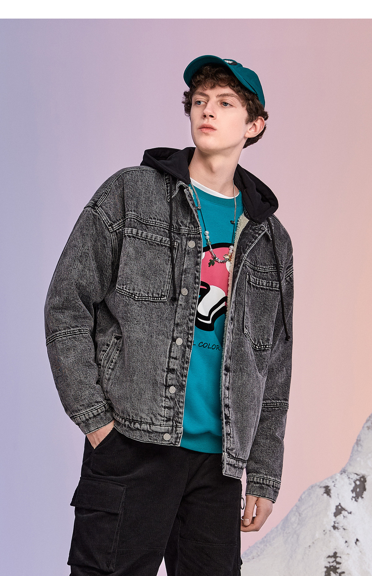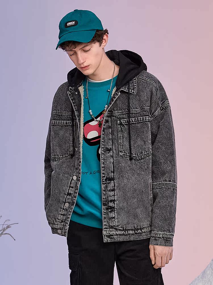 Lilbetter Джинсовая куртка с капюшоном, ретро бархатный пуховик