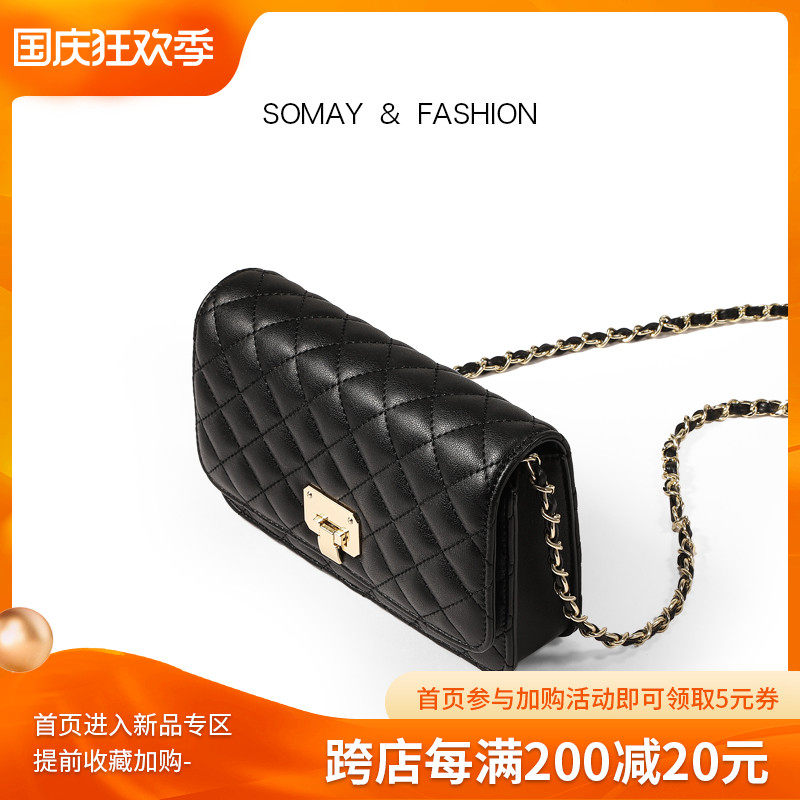 Somay Брендовая демисезонная универсальная цепь с ромбовидным узором, черная сумка на одно плечо, небольшая сумка