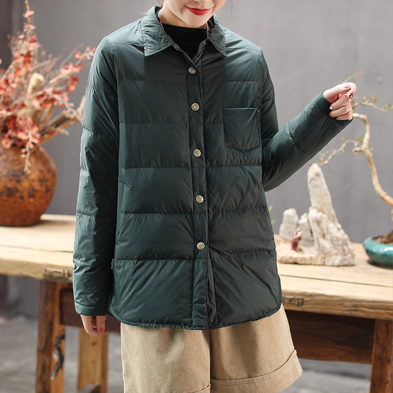Зимний ретро пуховик, рубашка, бархатная куртка, оверсайз, утиный пух