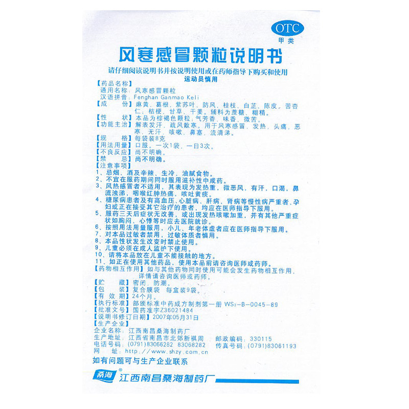 桑海 Ветровые холодные гранулы 9 мешков ветра, ветра, холодного тепла, головной боли, кашера за скопления носа, потоотделения, лихорадки, лихорадки, страха перед холодом