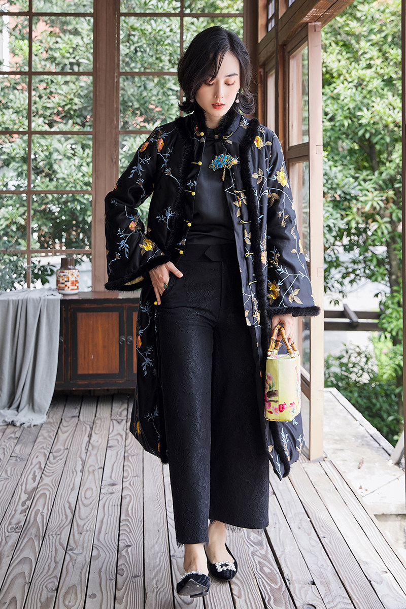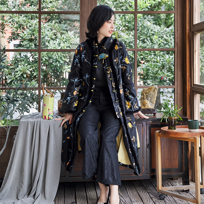 Демисезонная женская труба, ретро куртка, китайская вышивка, с вышивкой, китайский стиль