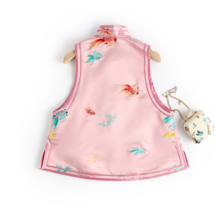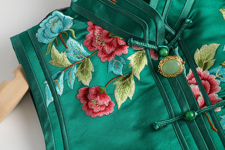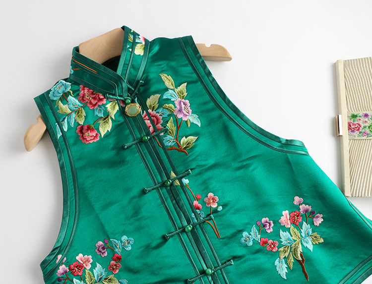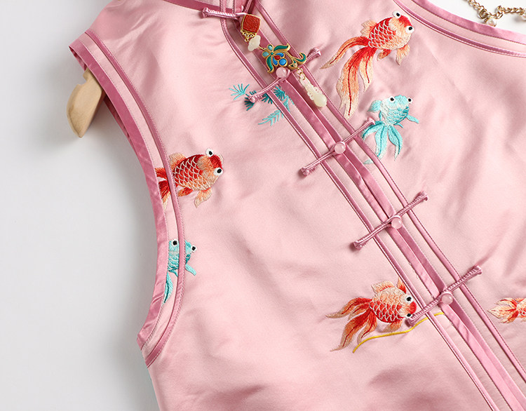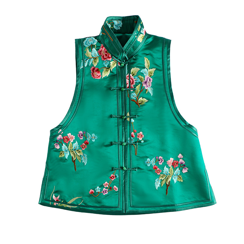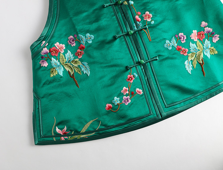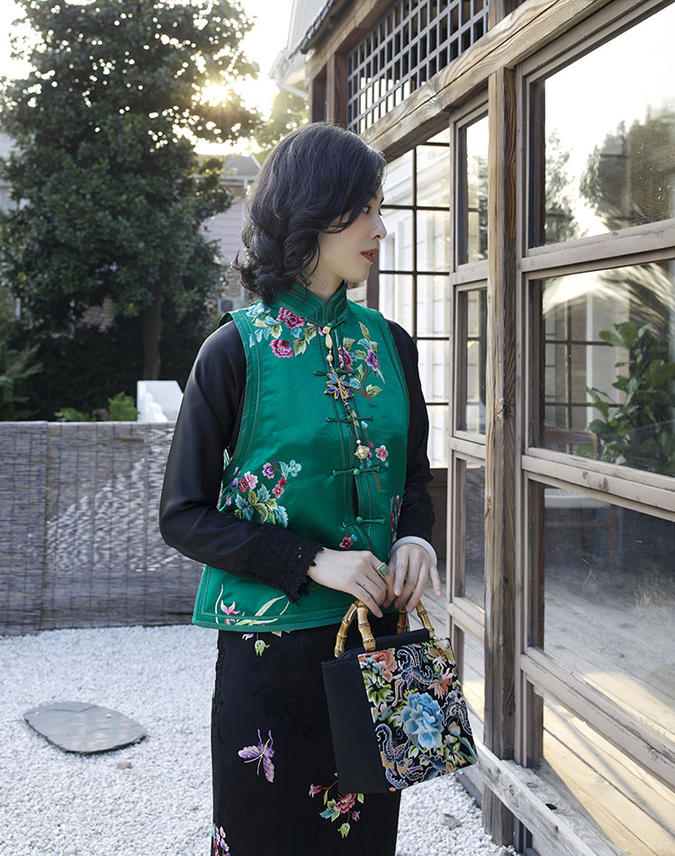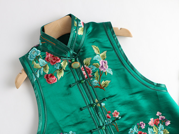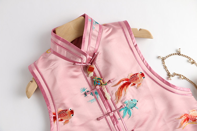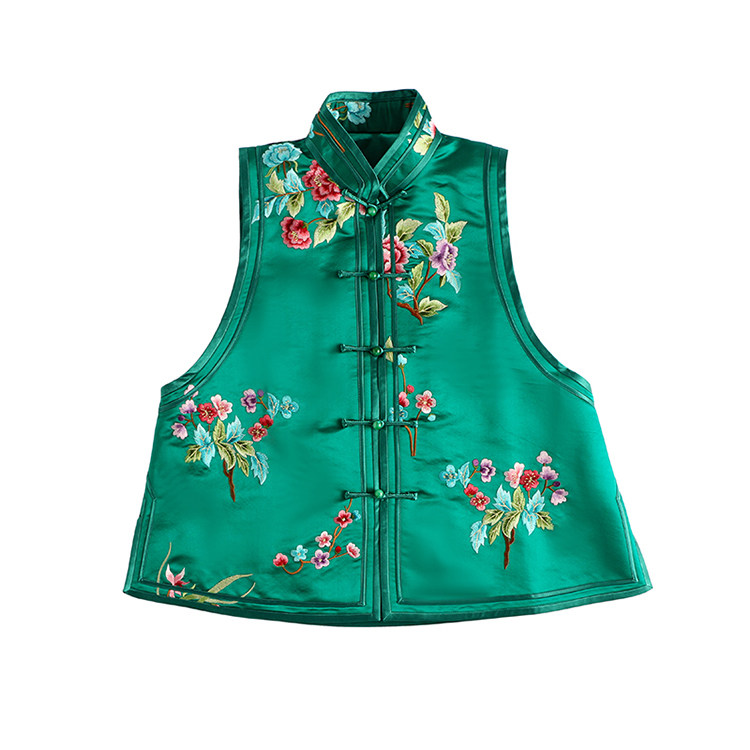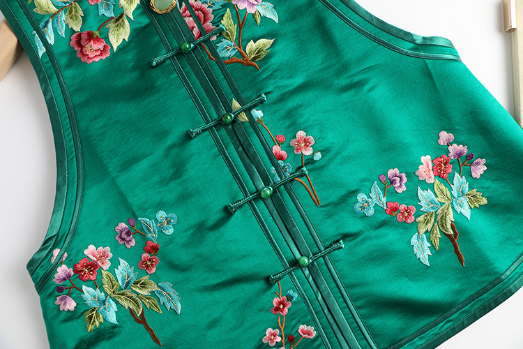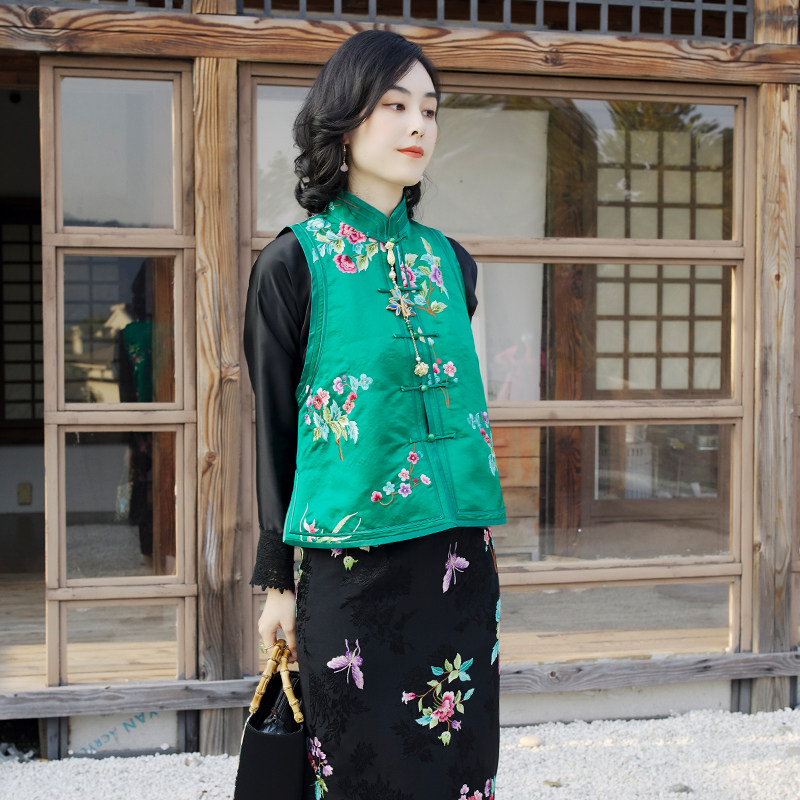 Ретро ципао, шелковый жилет, китайский стиль, с вышивкой