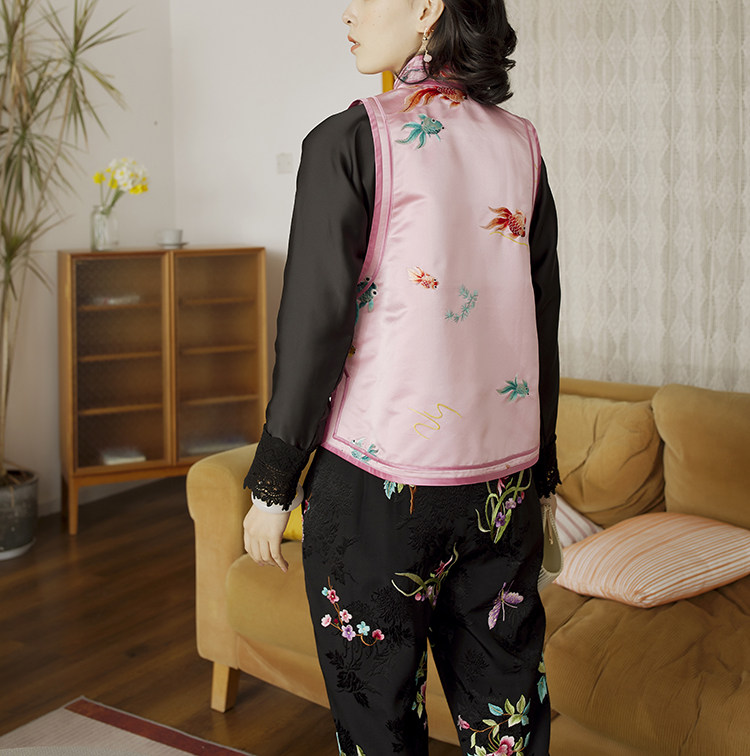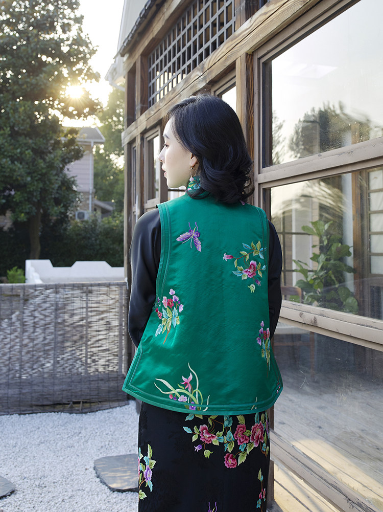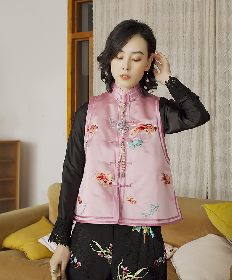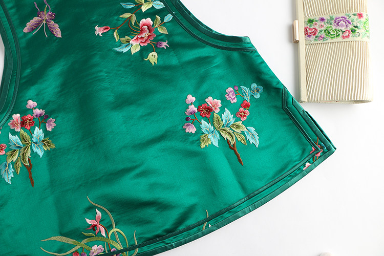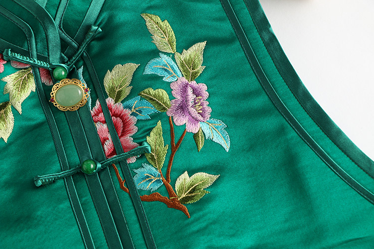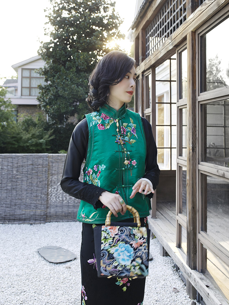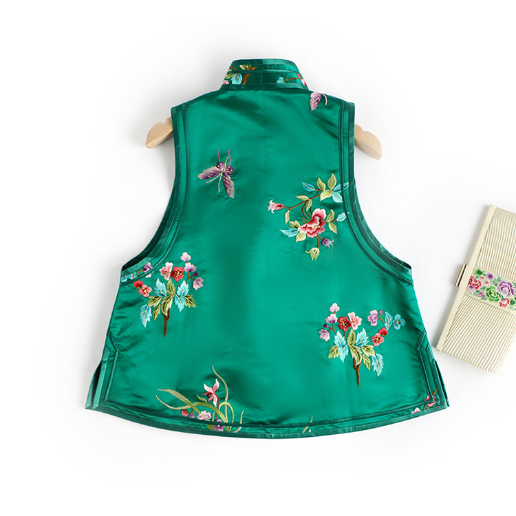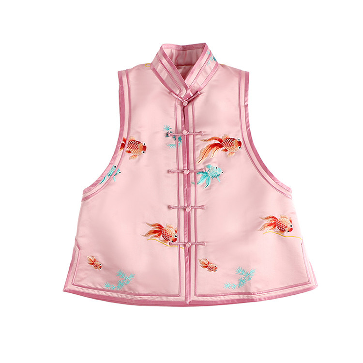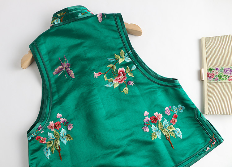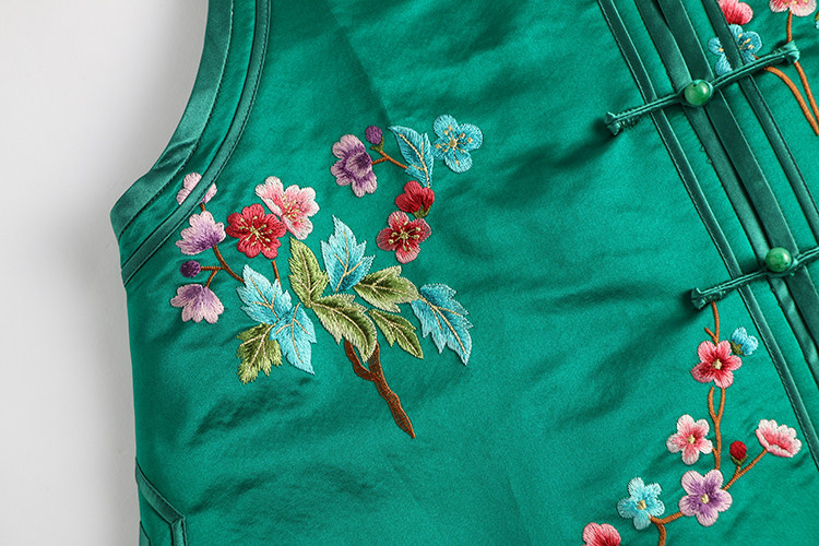 Ретро ципао, шелковый жилет, китайский стиль, с вышивкой