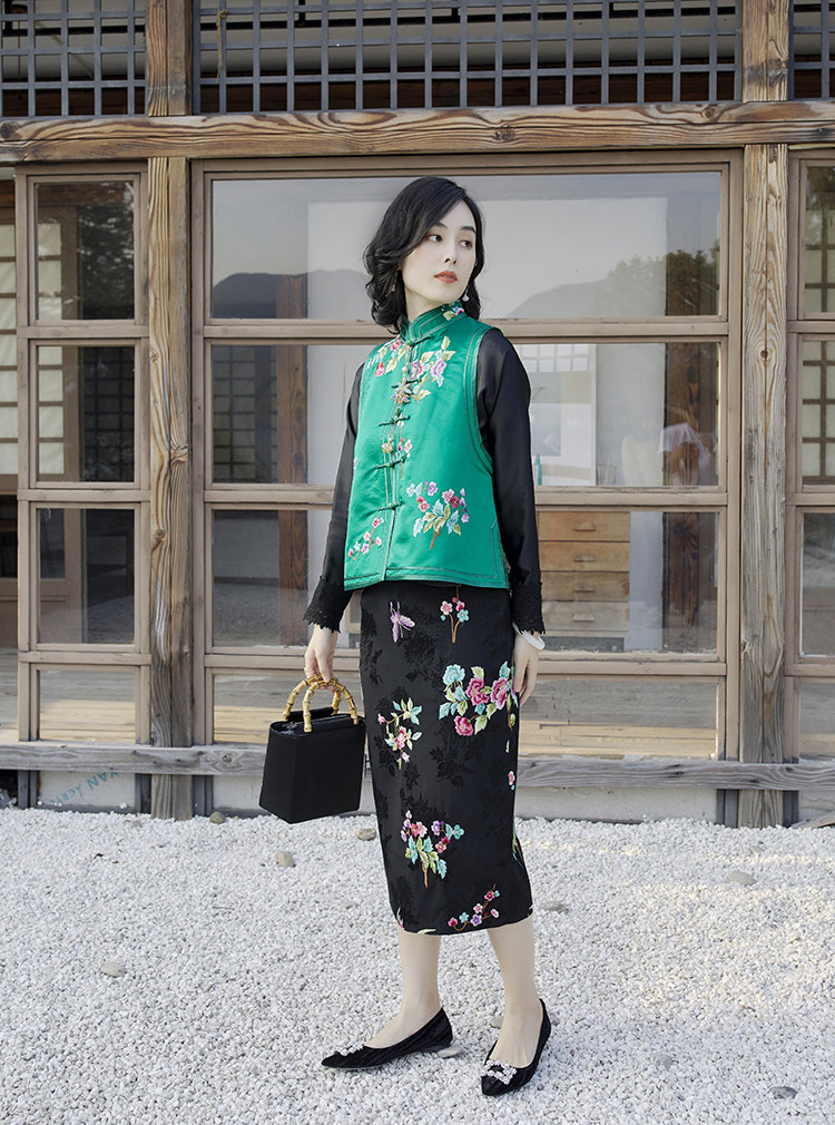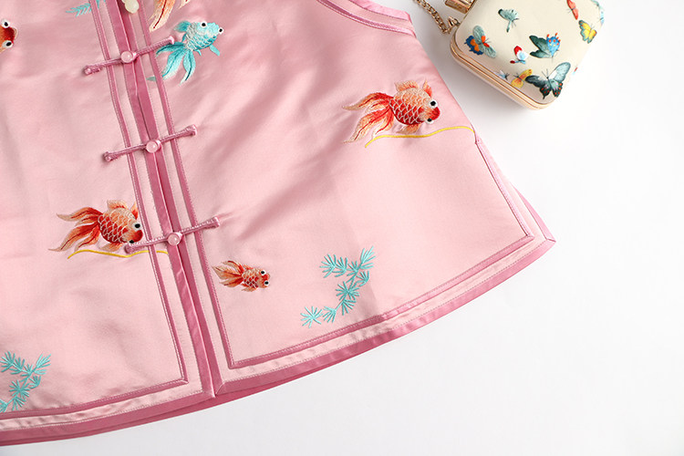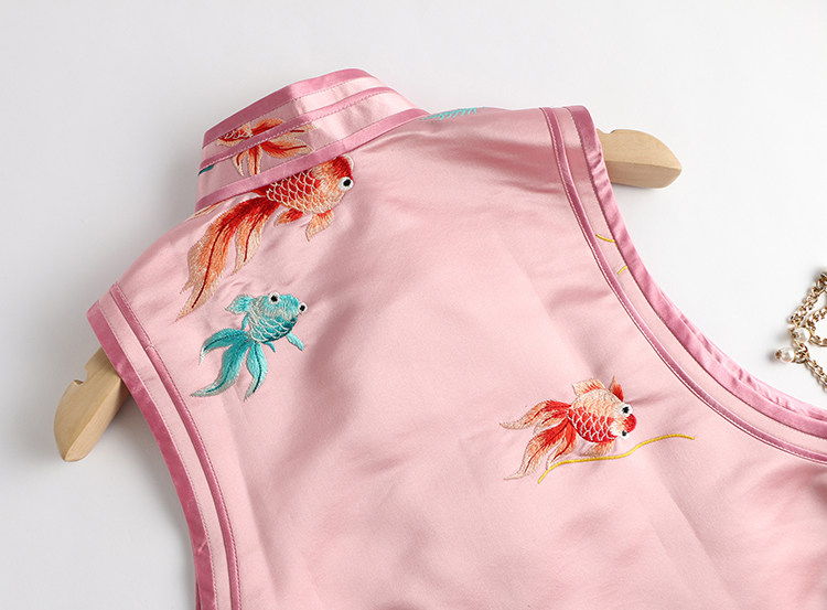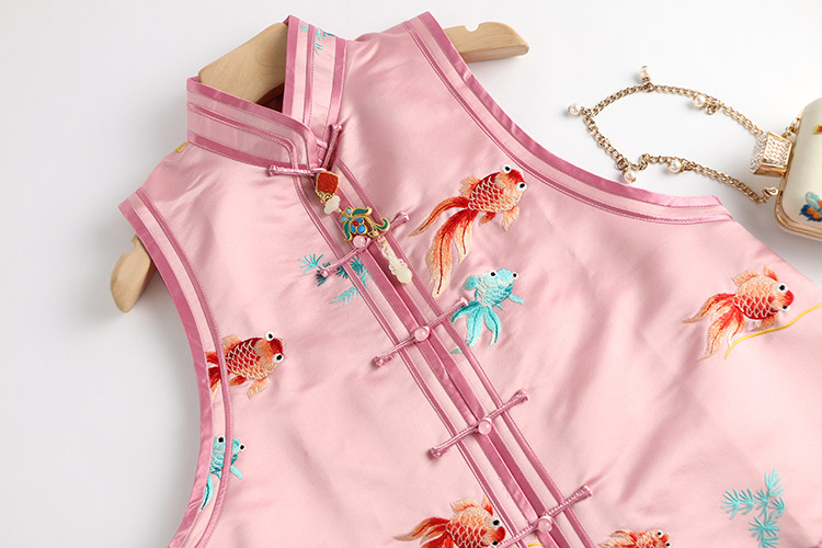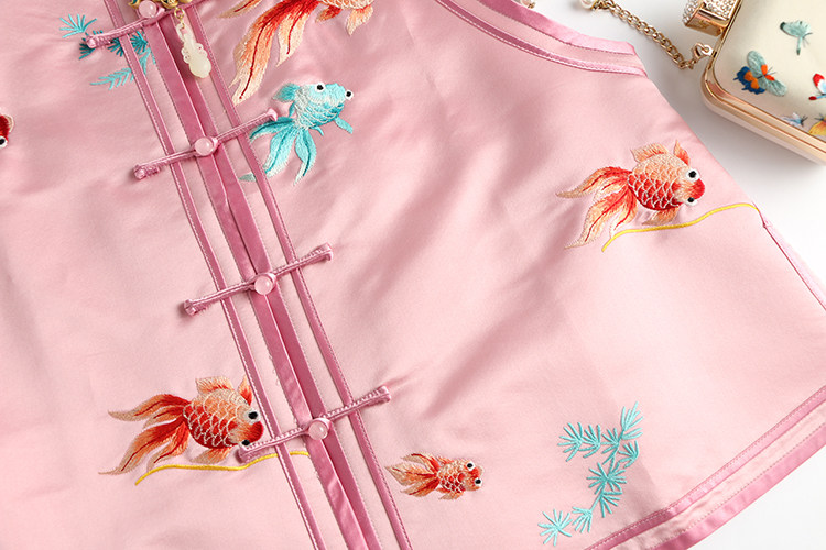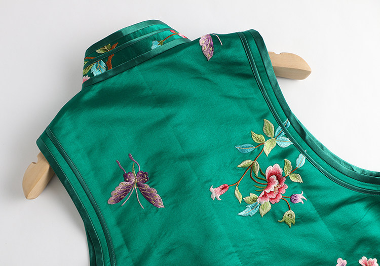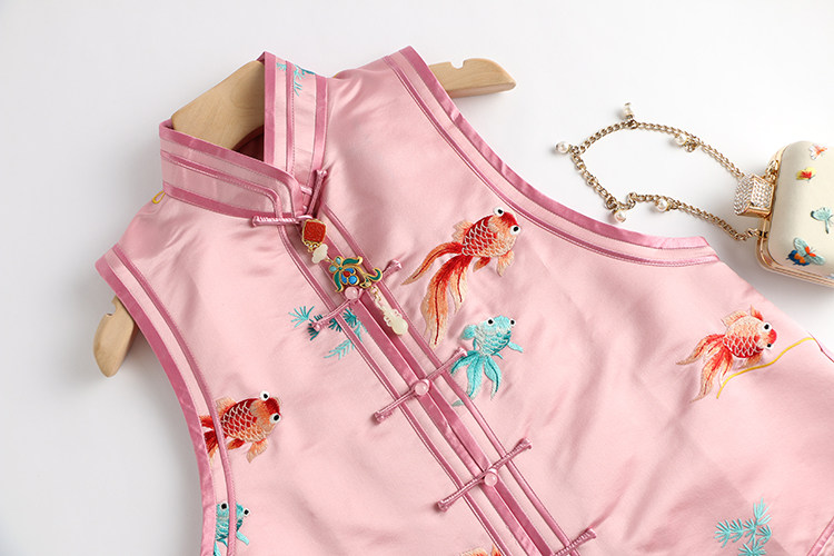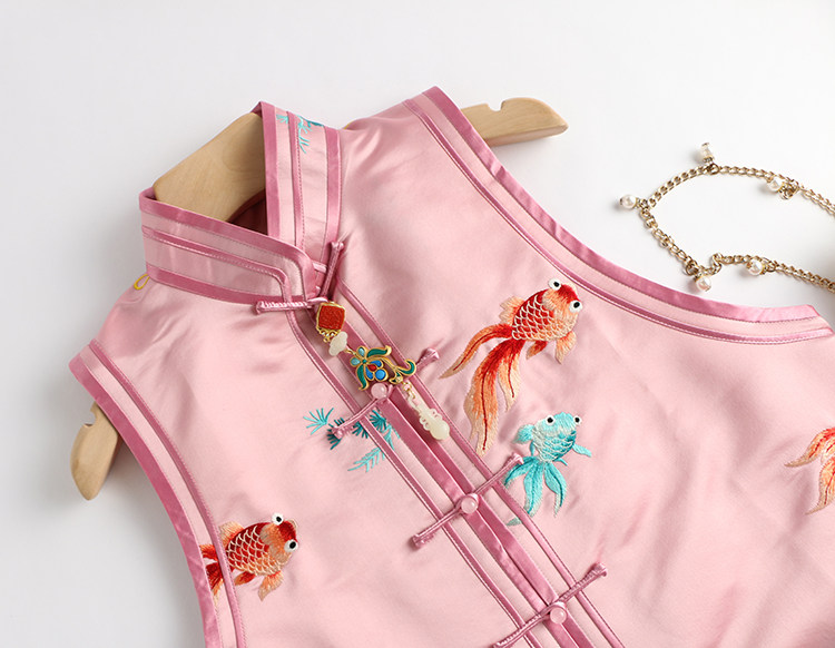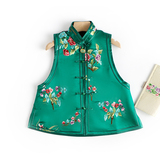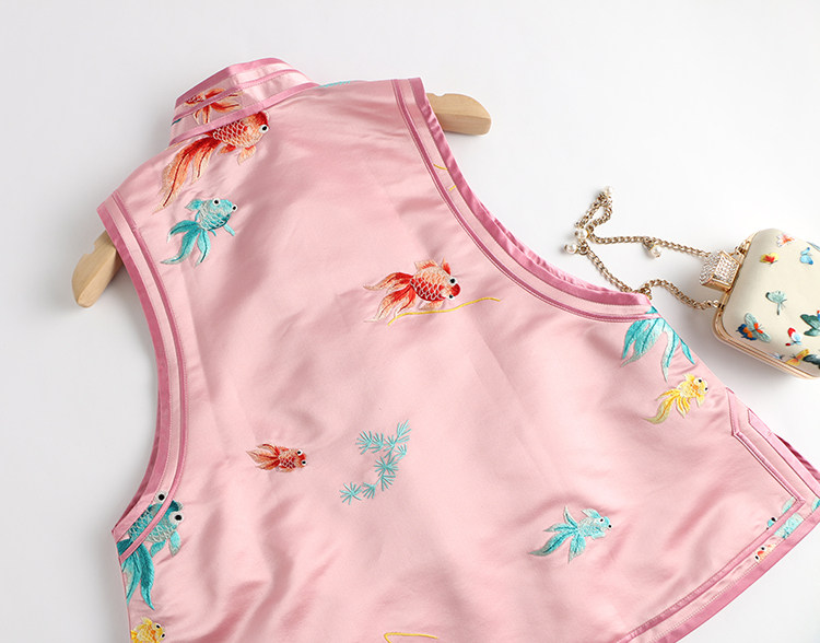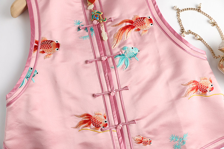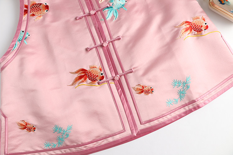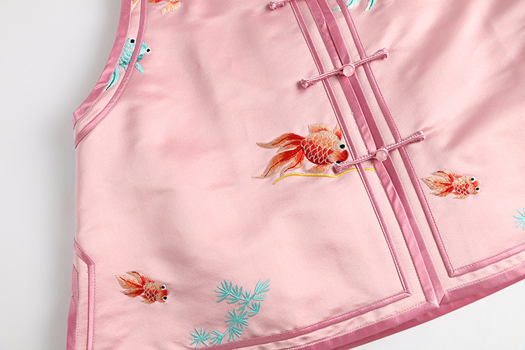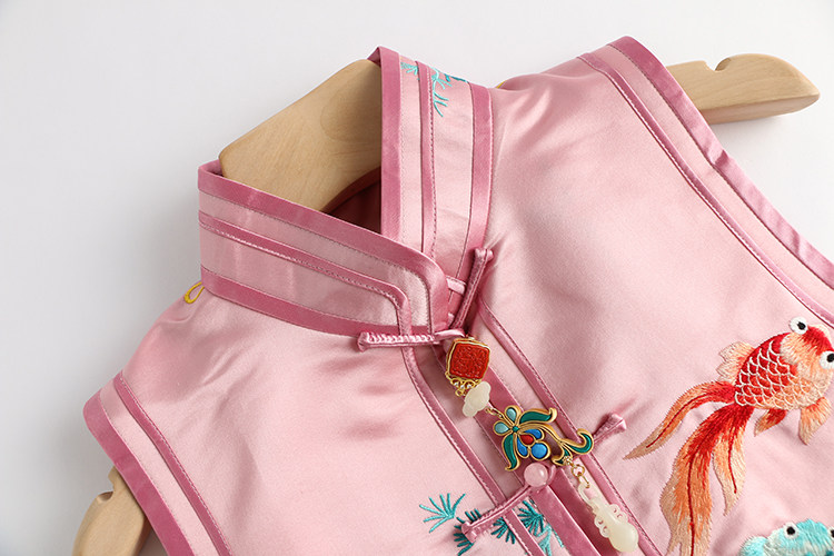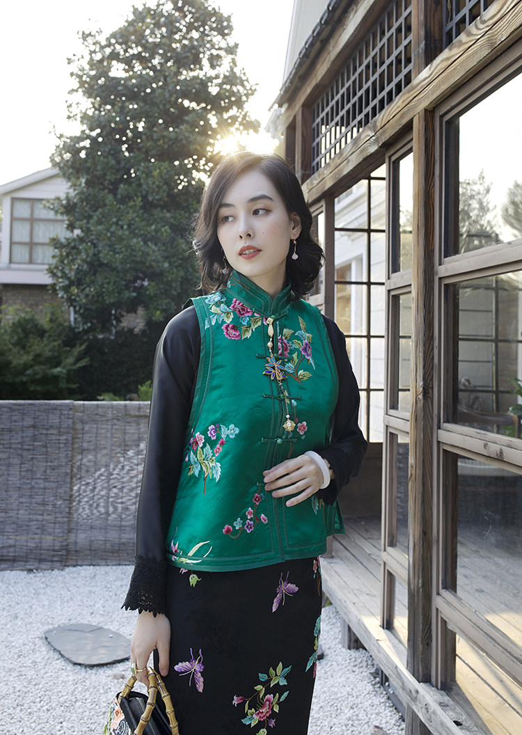 Ретро ципао, шелковый жилет, китайский стиль, с вышивкой