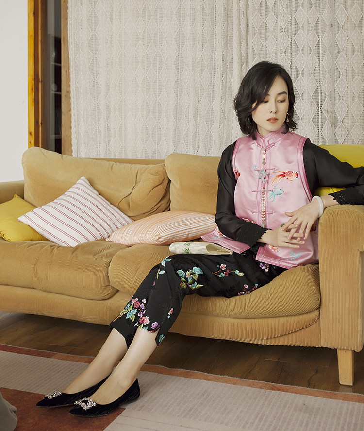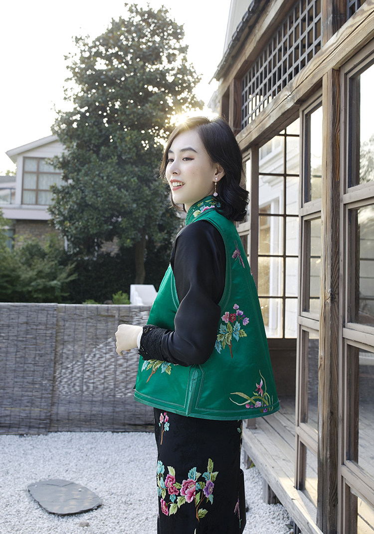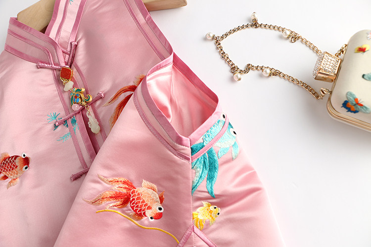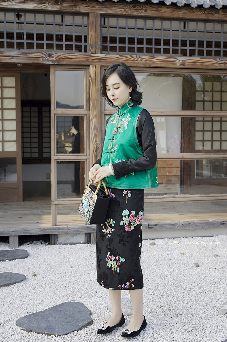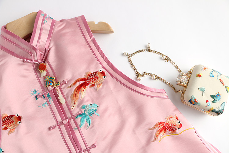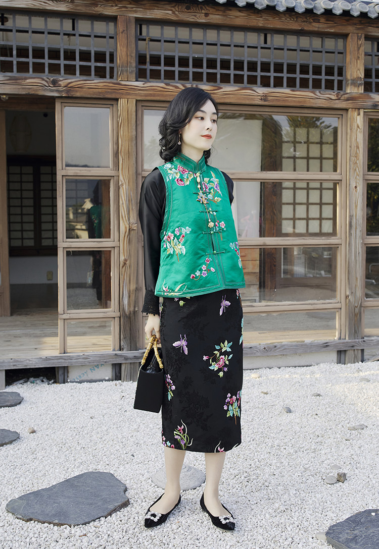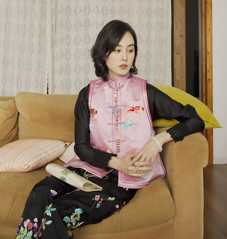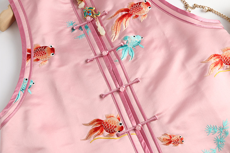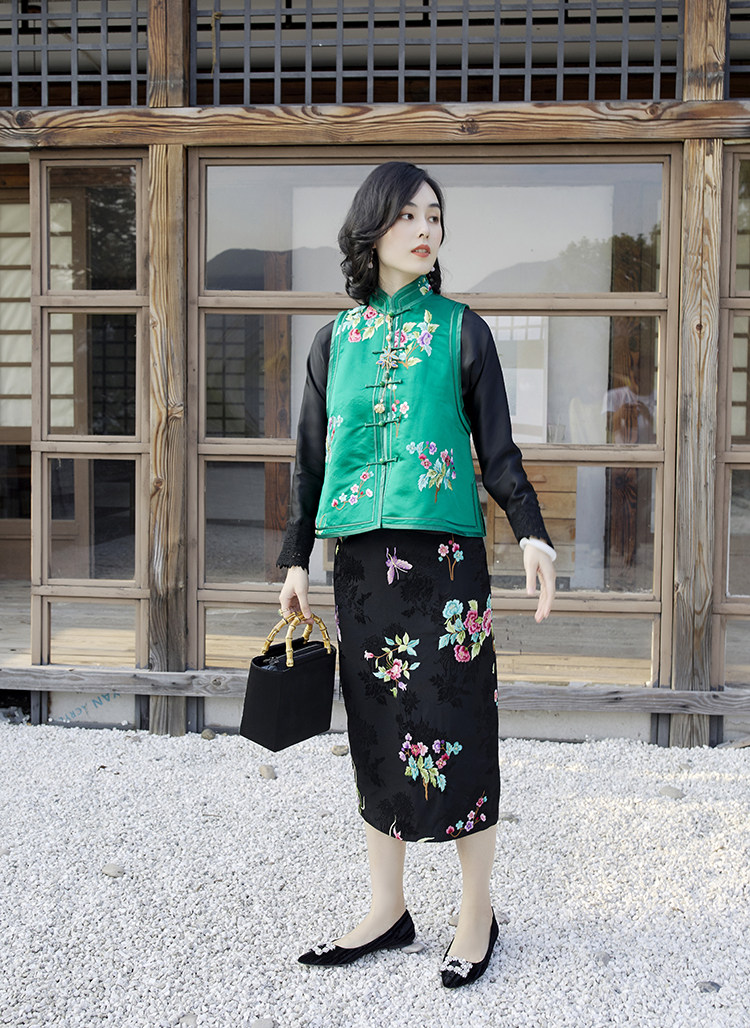 Ретро ципао, шелковый жилет, китайский стиль, с вышивкой