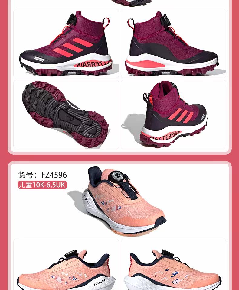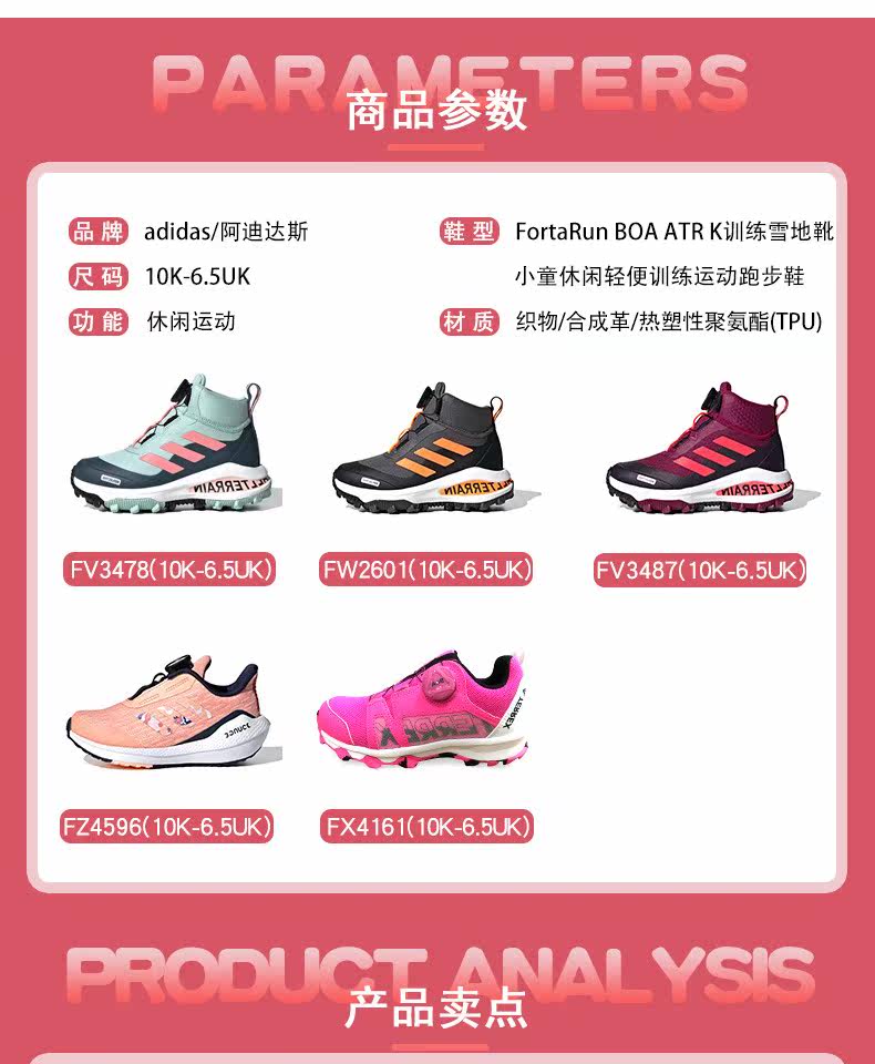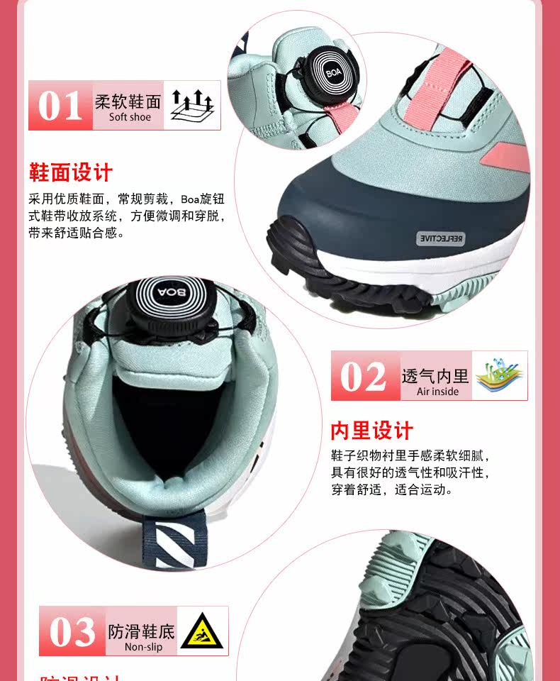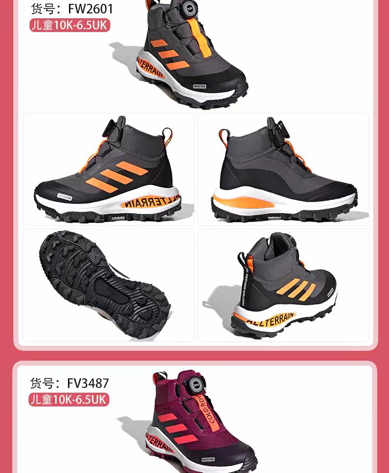 Детская обувь Adidas, 21 зимняя новинка, нескользящие зимние ботинки BOA с высоким берцем для девочек, беговые альпинистские ботинки FV3478