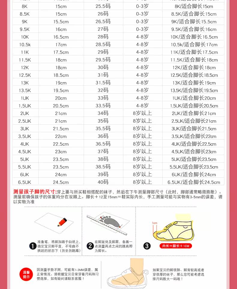 | Размер обуви: | 10 тысяч/28 ярдов/подходящих футов длиной 16,5 см, 11K/29 ярдов/подходящая длина футов 17,5 см, 12 тыс./30 ярдов/подходящая длина футов 18 см., 13K/31,5 ярдов/подходящая длина футов 19 см., 13,5K/32 ярдов/подходящие длина футов 19,5 см, 1uk/33 ярдов/подходящая длина футов 20 см, 1,5UK/33,5 ярдов/подходящие длина футов 20,5 см, 2UK/34 ярда/подходящие фута длиной 21 см., 5,5uk/38,5 ярдов/подходящих футов длины 23,5 см., 2,5UK/35 ярдов/подходящих футов длиной 21 см., 3UK/35,5 ярдов/подходящих футов длиной 21,5 см, 3,5UK/36 ярдов/подходящих футов длиной 22 см, 4UK/36,5 ярдов/подходящие длина футов 22,5 см, 4.5uk/37 ярдов/подходящая длина футов 23 см., 5uk/38 ярдов/подходящая длина футов 23,5 см, 12,5K/31 ярды/подходящие фута длиной 18,5 см |