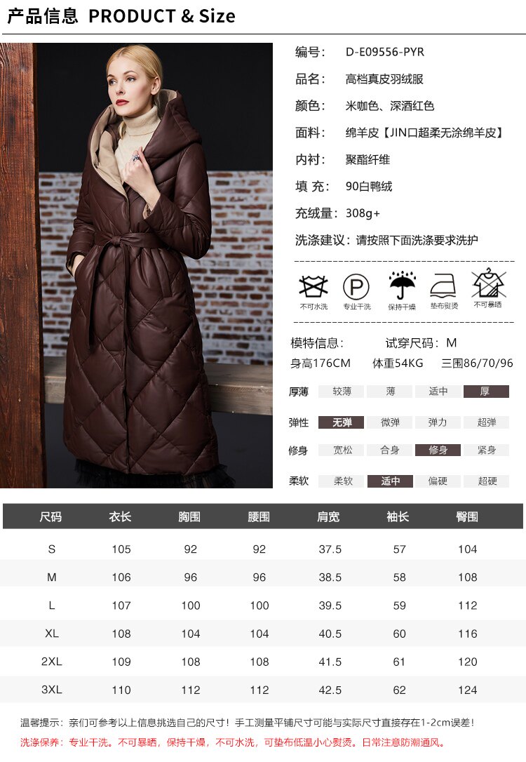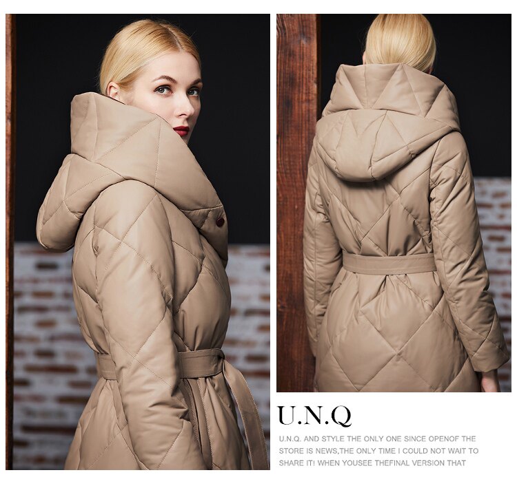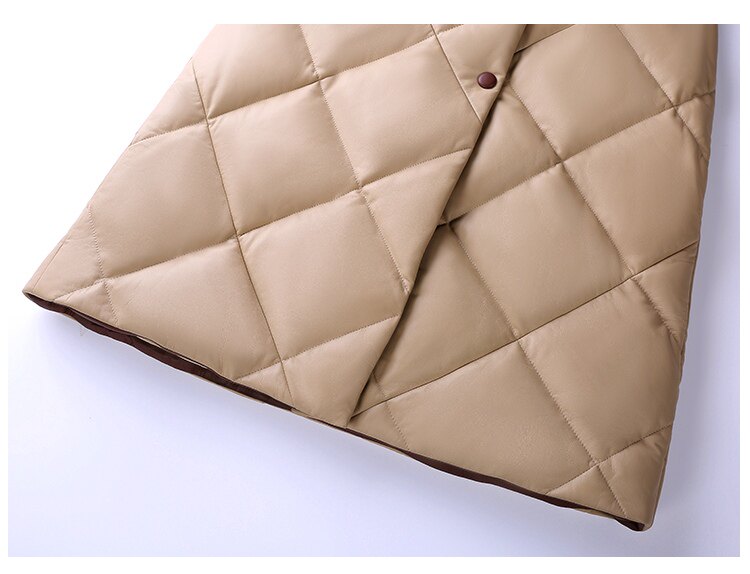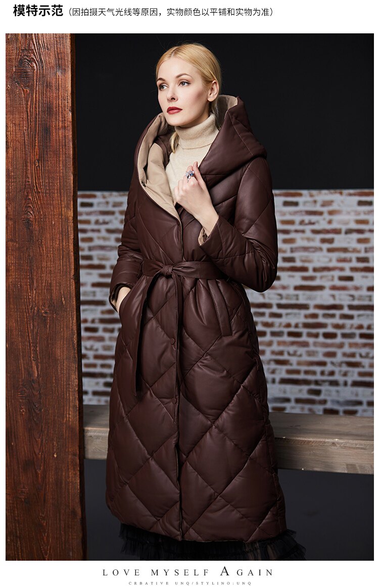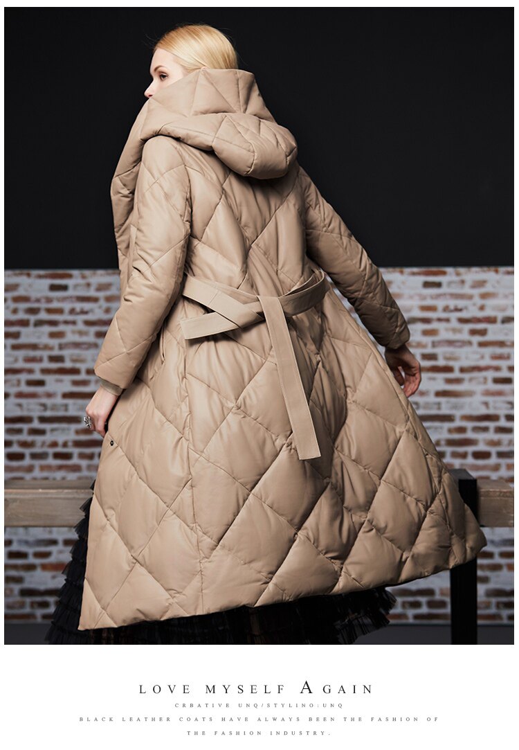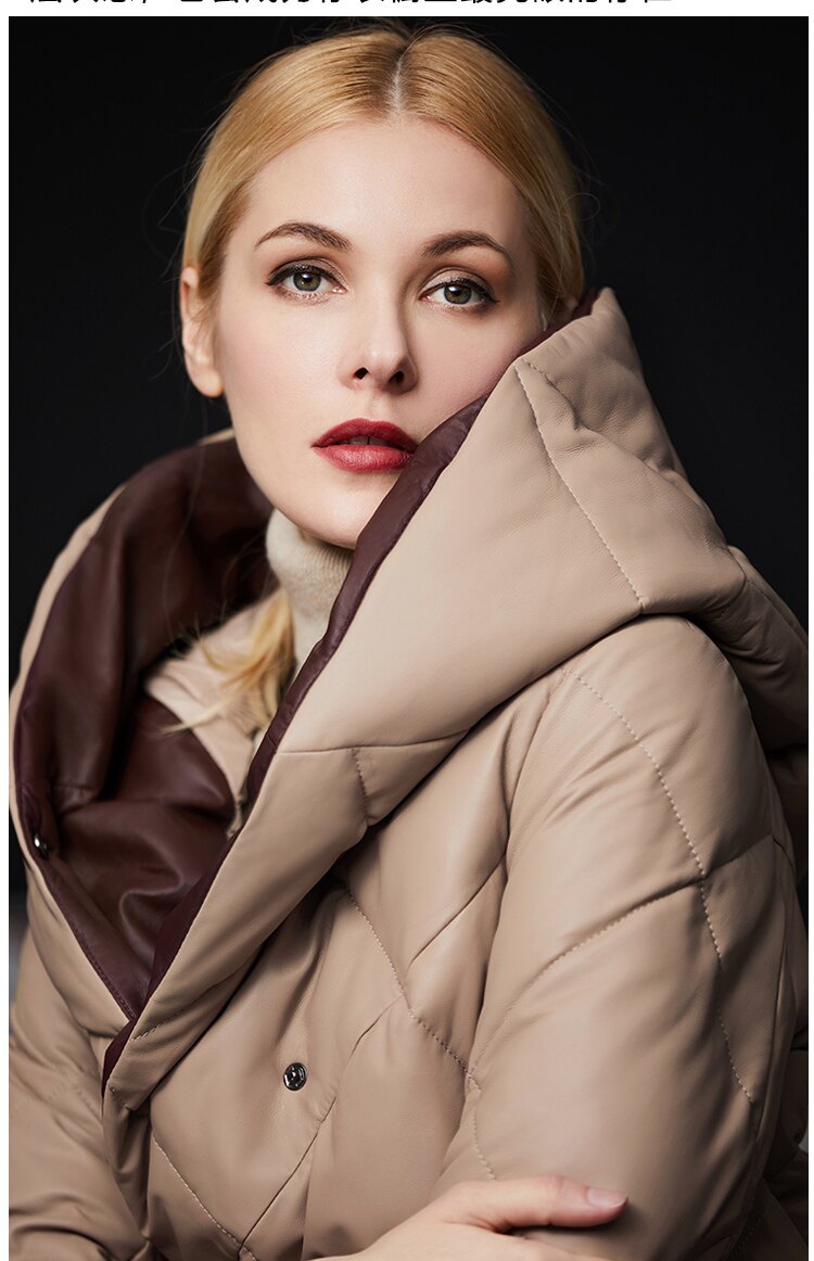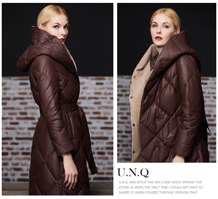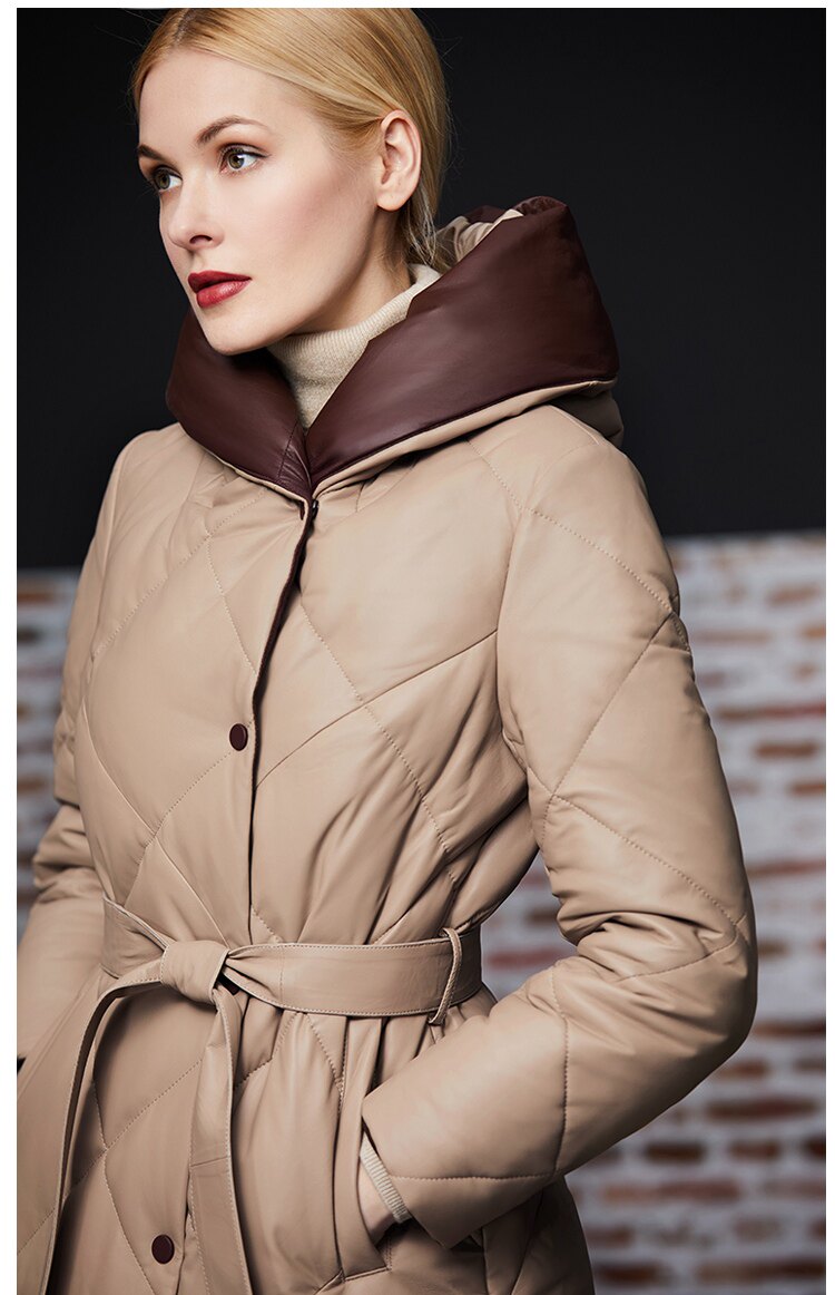Длинный утепленный пуховик, европейский стиль, длина макси, из натуральной кожи