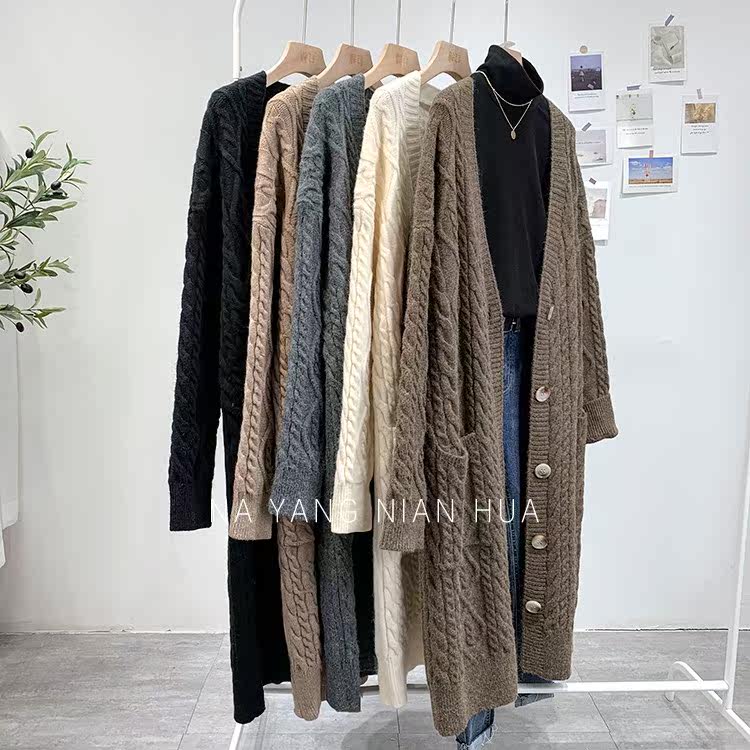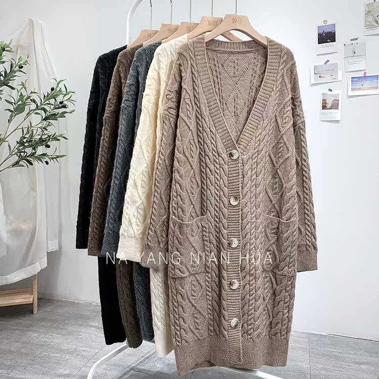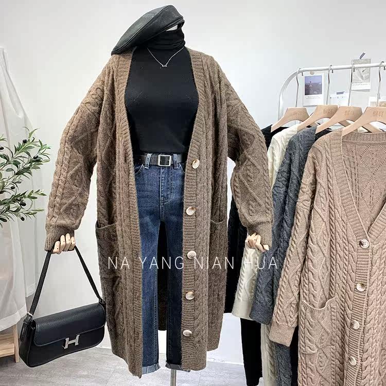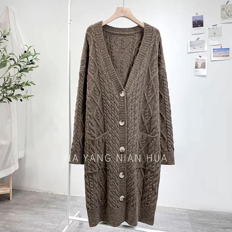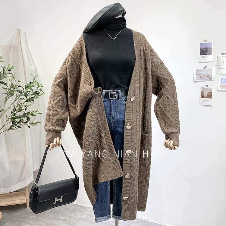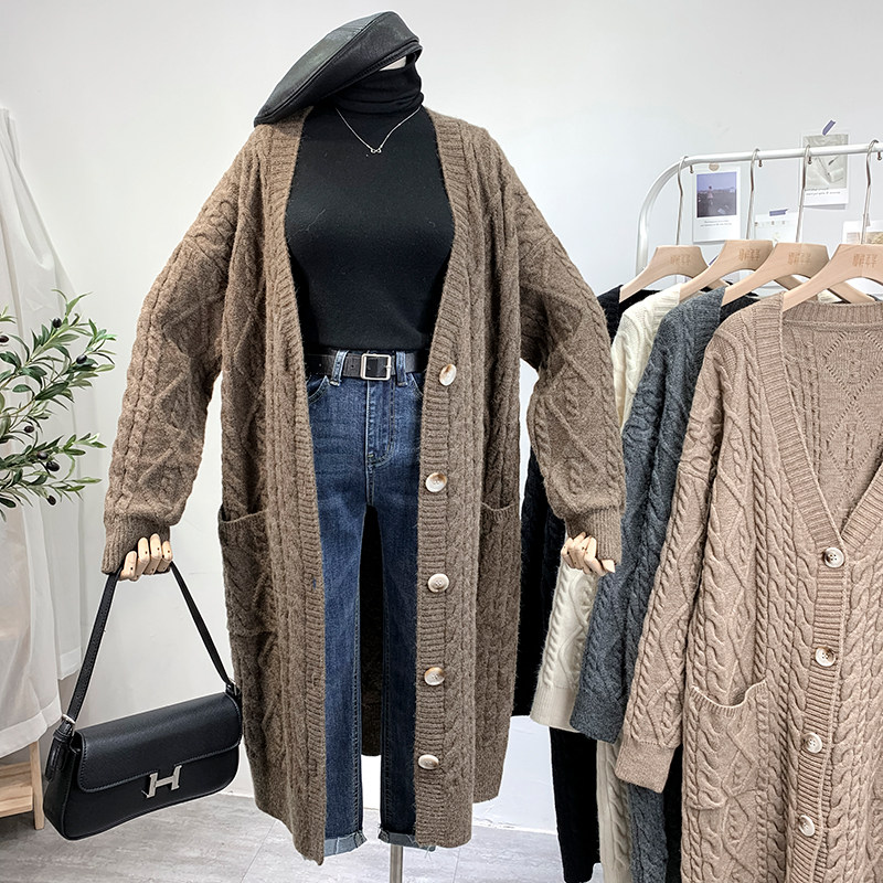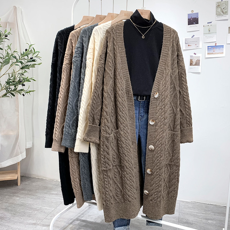Ретро свитер, демисезонная куртка, длинный трикотажный кардиган, в корейском стиле