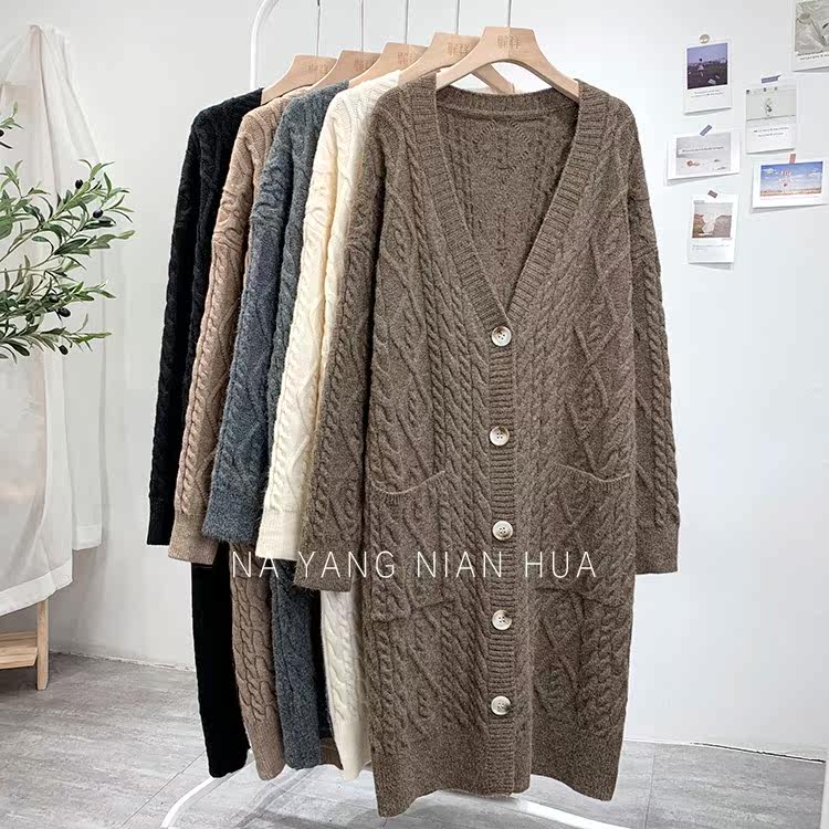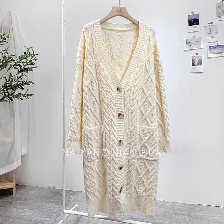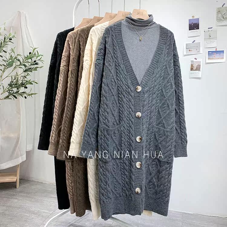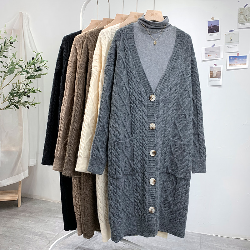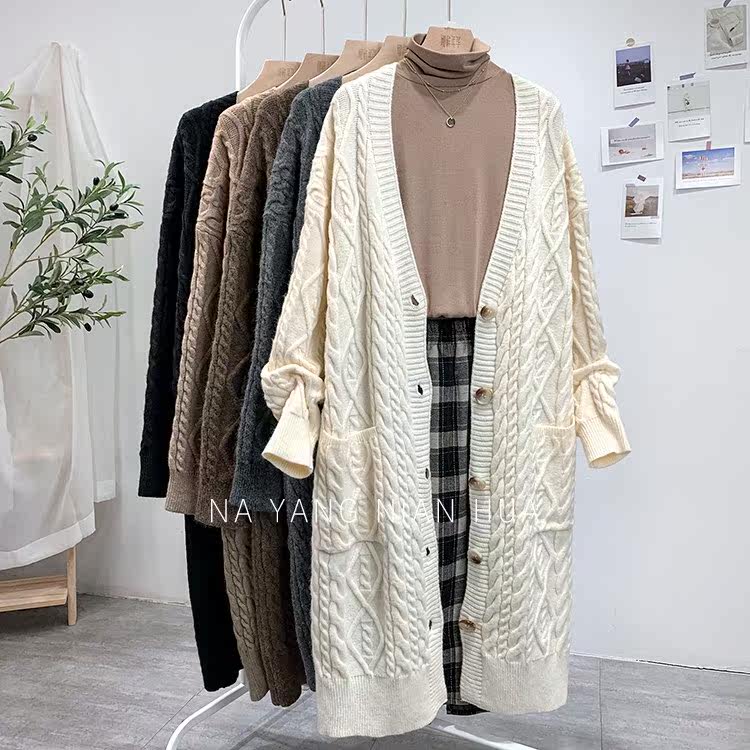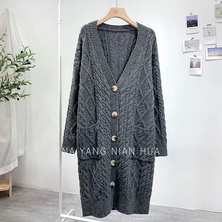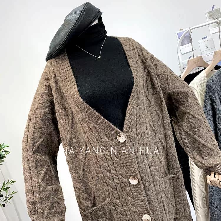 Ретро свитер, демисезонная куртка, длинный трикотажный кардиган, в корейском стиле