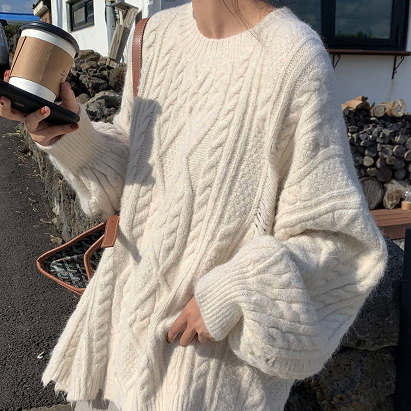 Ретро демисезонный трикотажный свитер, большой размер, 2021 года, оверсайз, увеличенная толщина