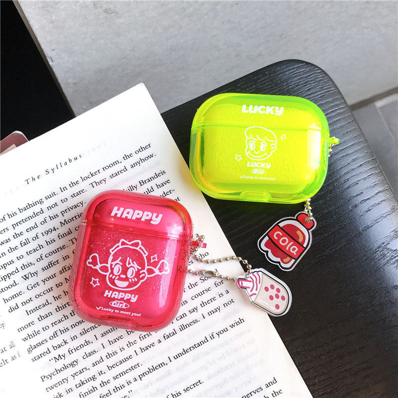 Apple, флуоресцентный защитный чехол, совместимые беспроводные креативные мультяшные наушники для влюбленных, bluetooth