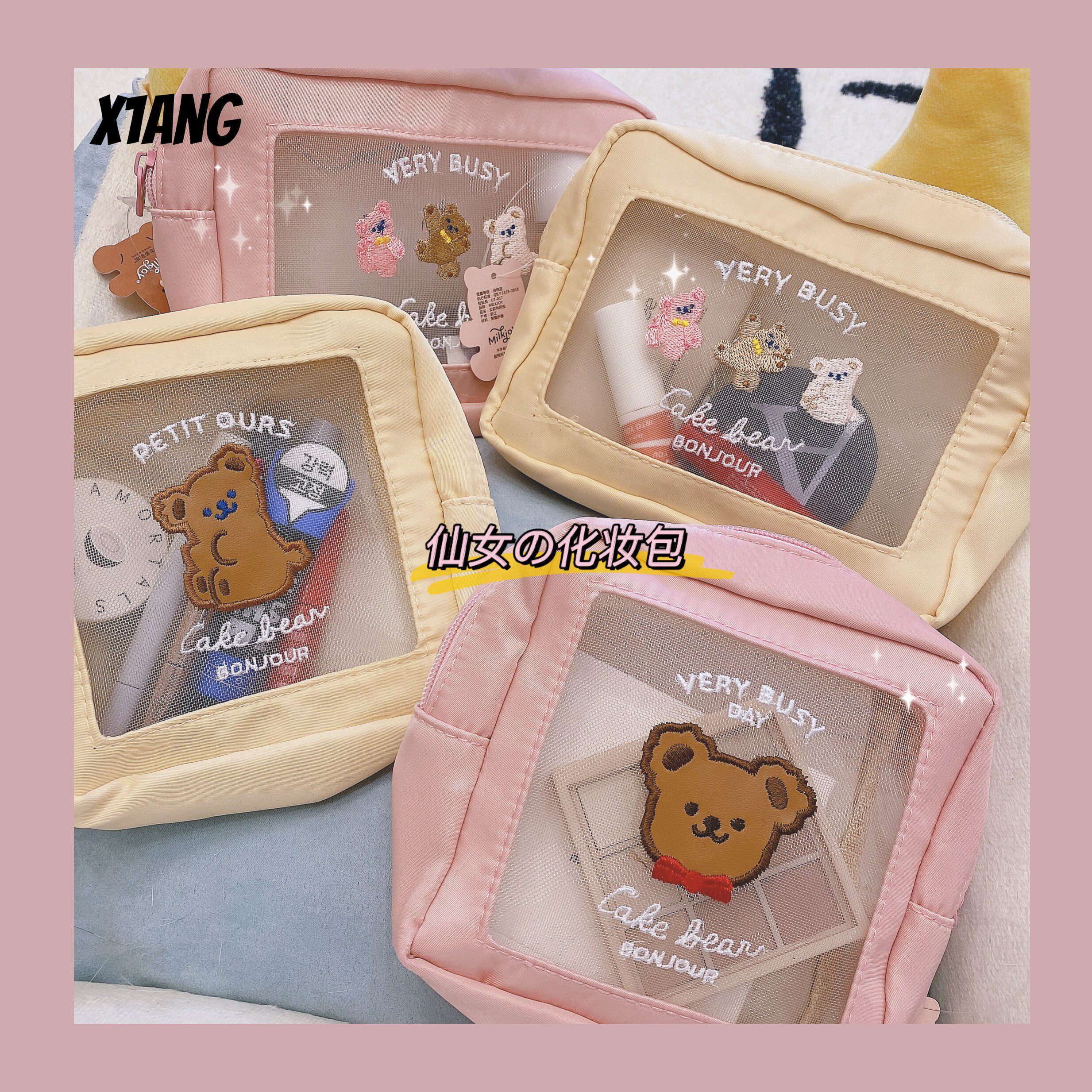 Японская косметичка, милая вместительная и большая портативная сумка-органайзер, с медвежатами