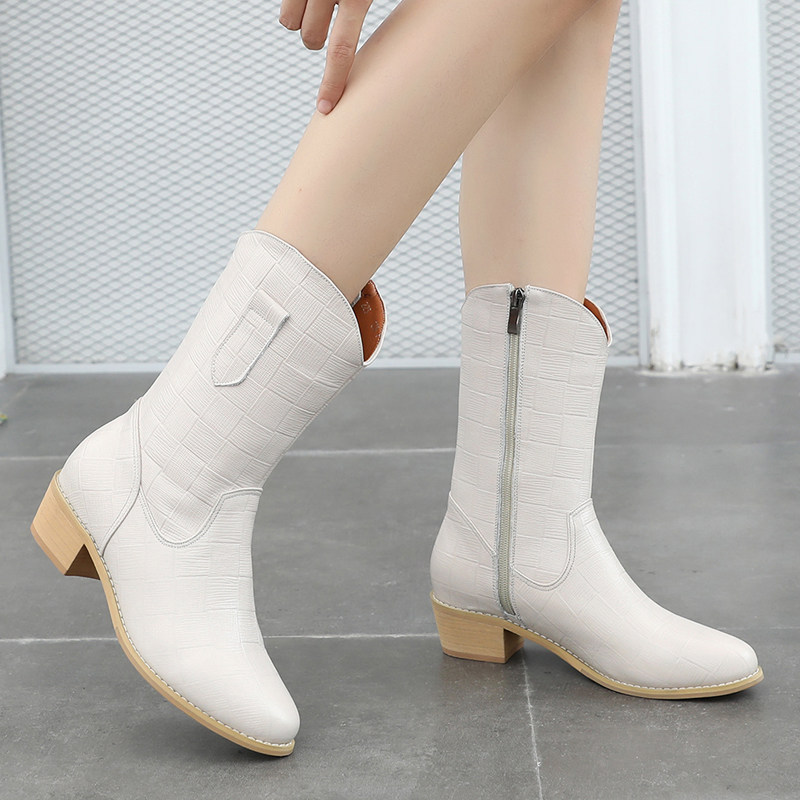 Белые демисезонные ботинки, бежевые флисовые высокие сапоги, средней длины, из натуральной кожи, коллекция 2022, мягкая подошва, большой размер