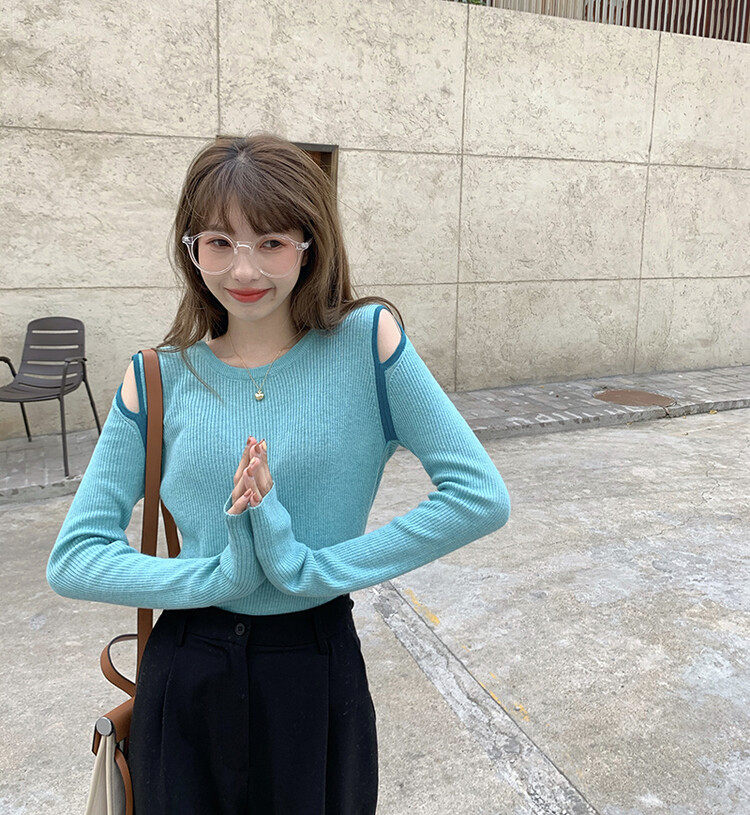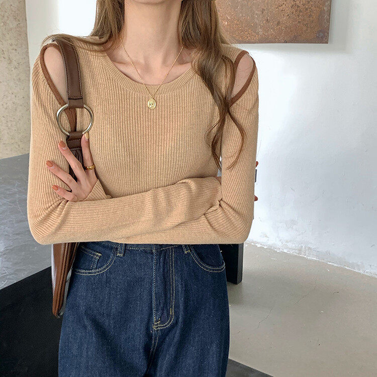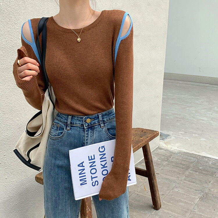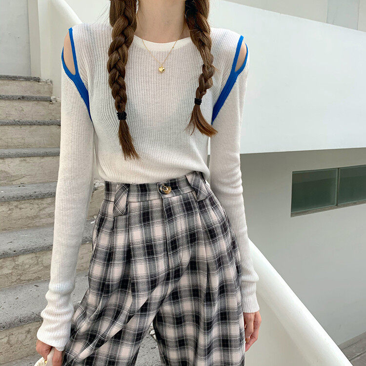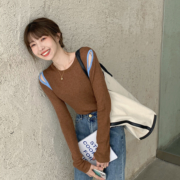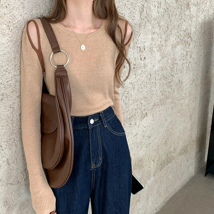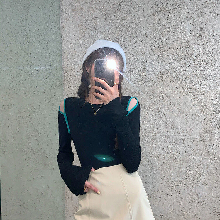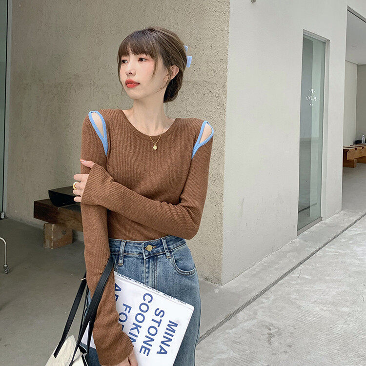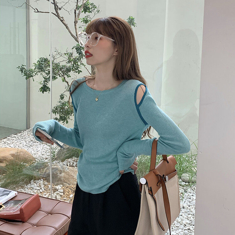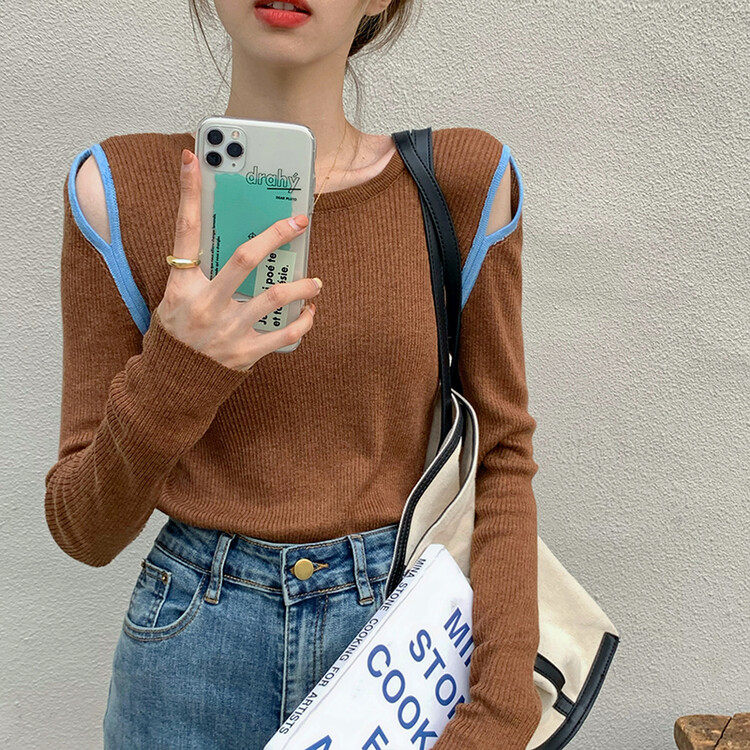 Демисезонный дизайнерский трикотажный лонгслив, футболка, коллекция 2023, тренд сезона, в западном стиле, в корейском стиле