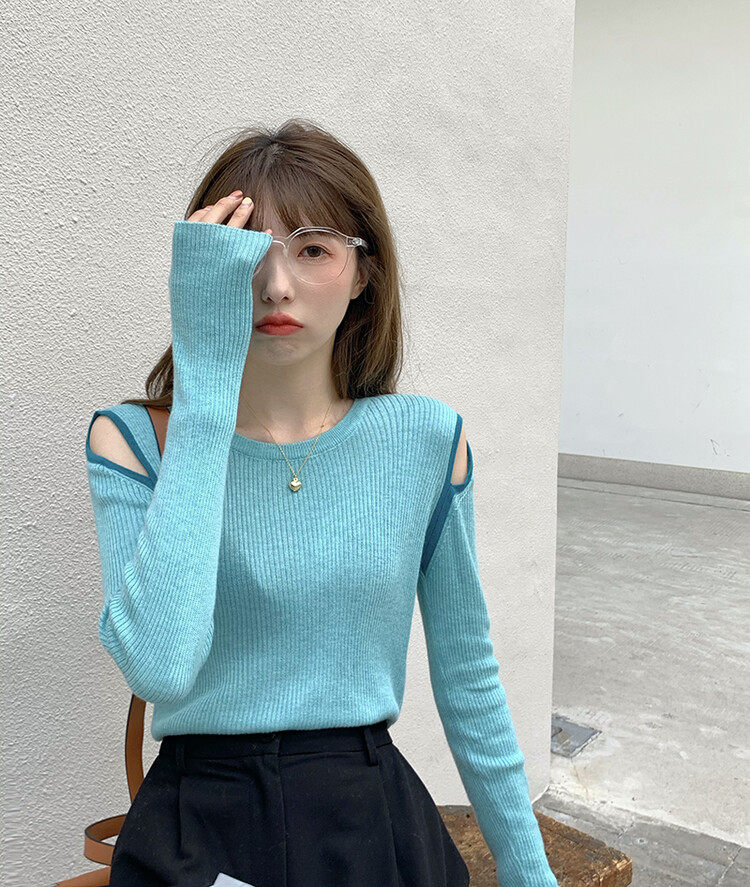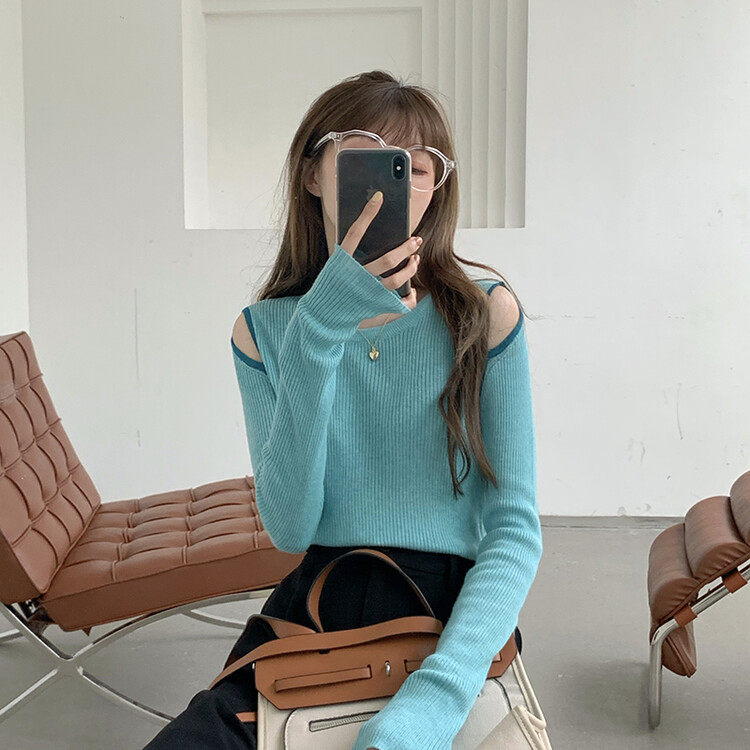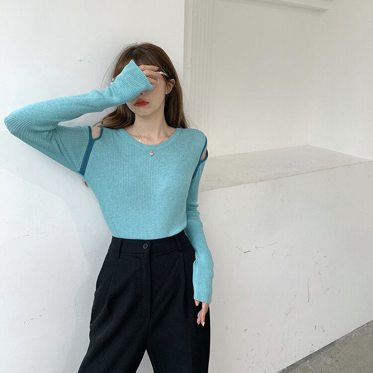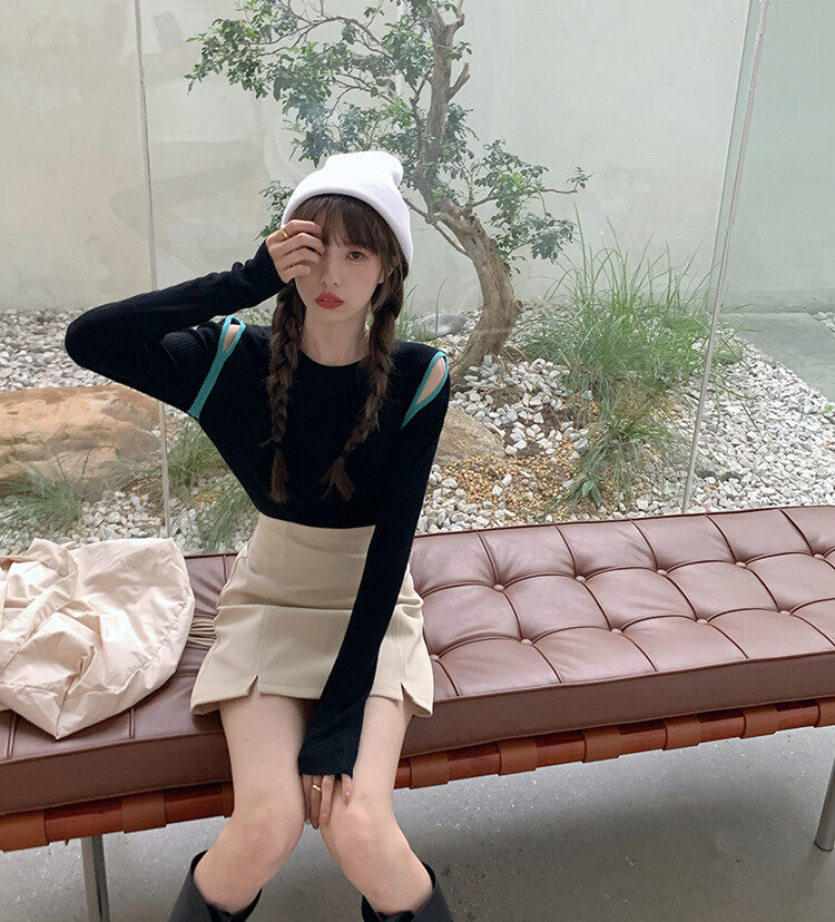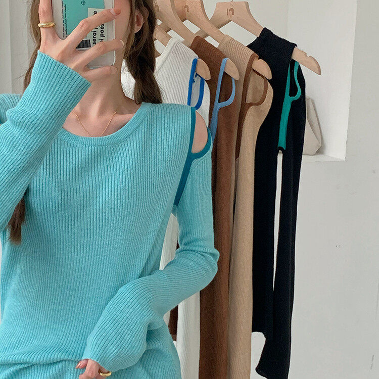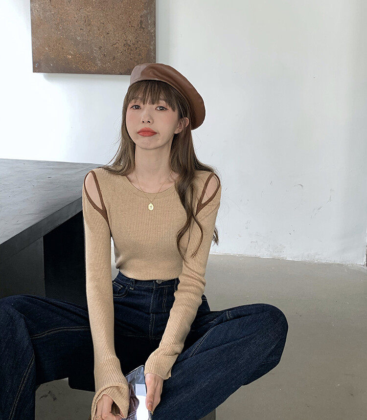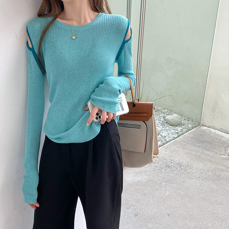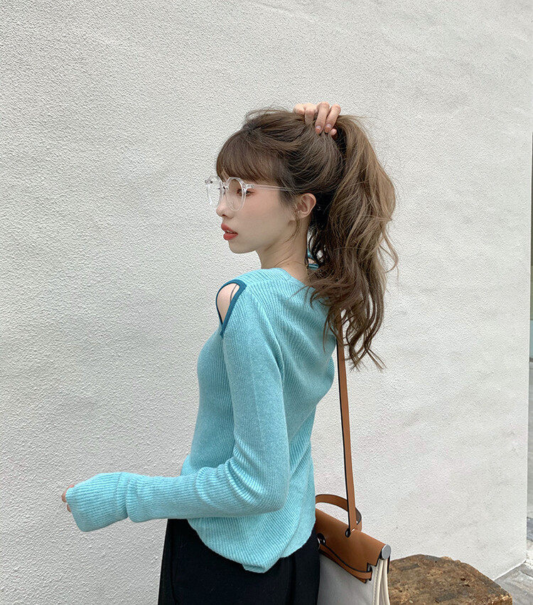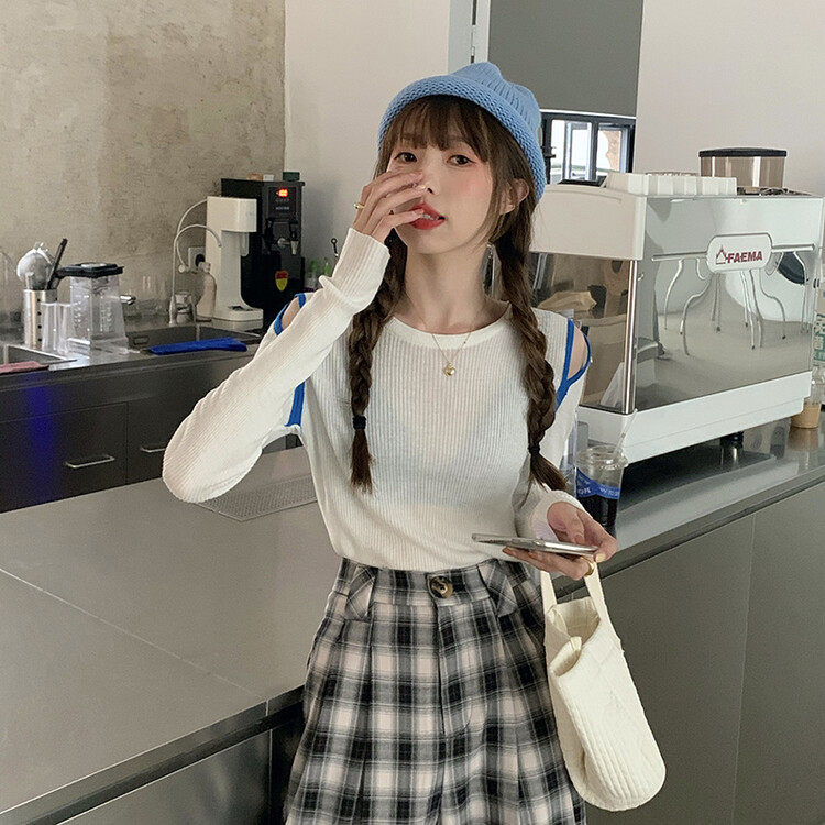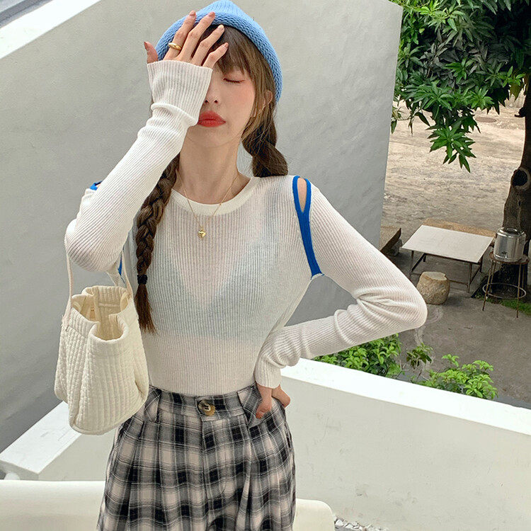 Демисезонный дизайнерский трикотажный лонгслив, футболка, коллекция 2023, тренд сезона, в западном стиле, в корейском стиле
