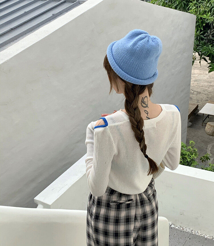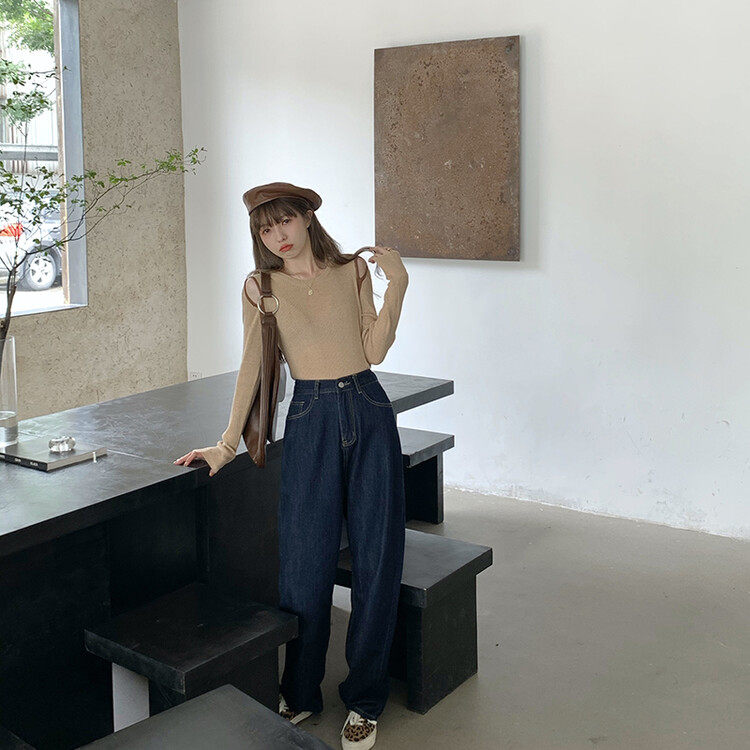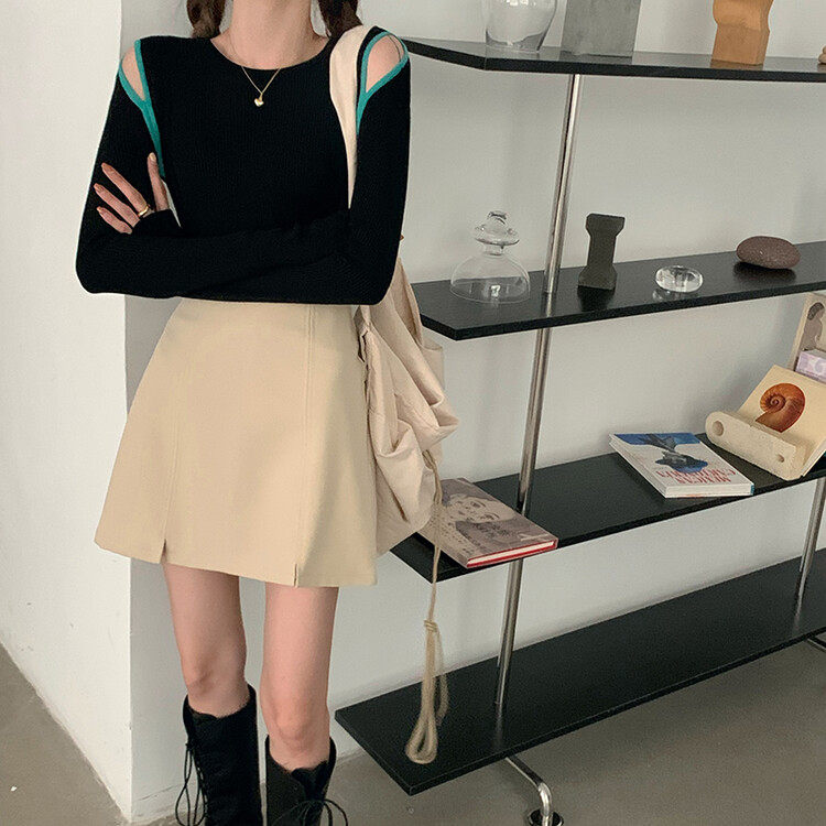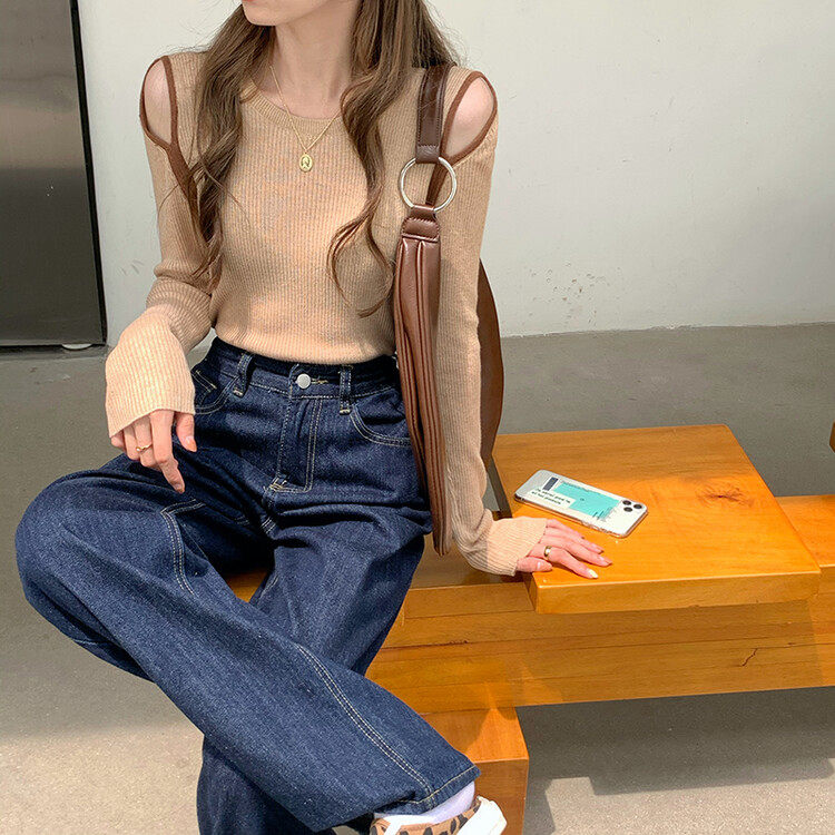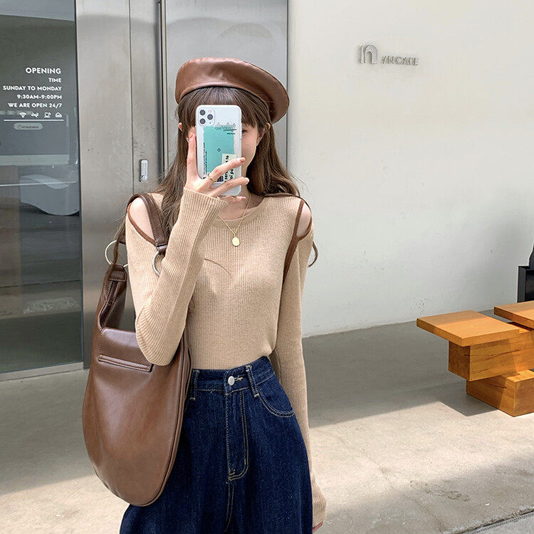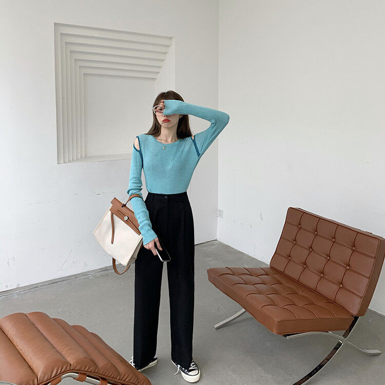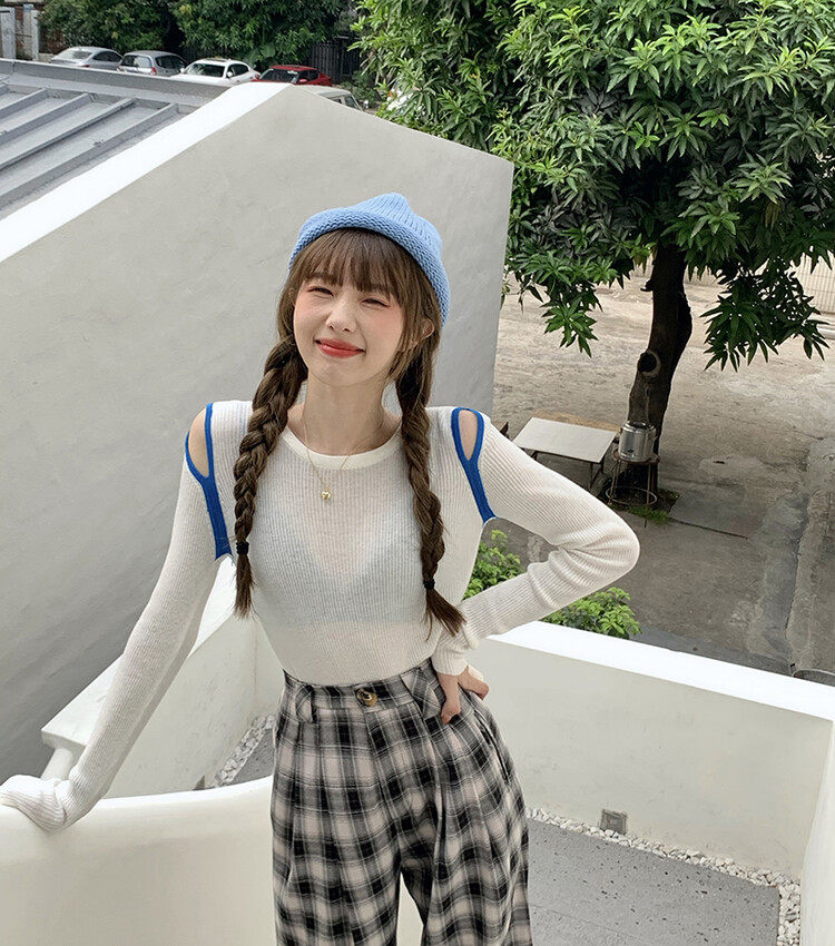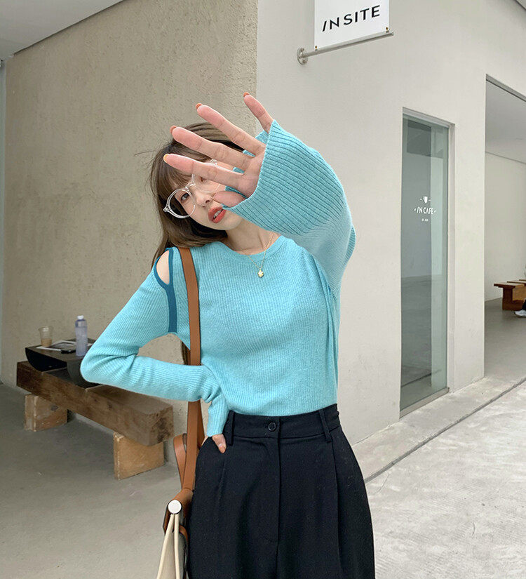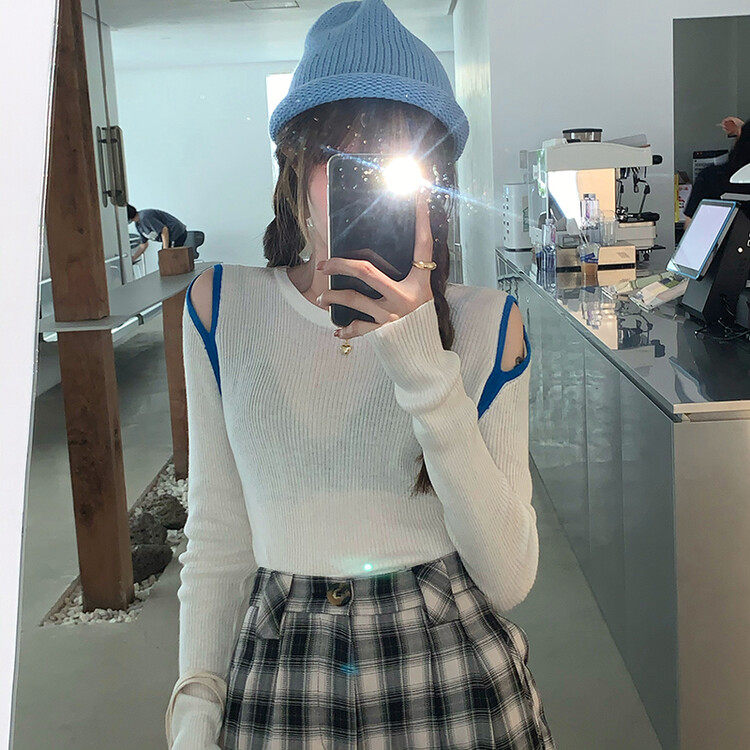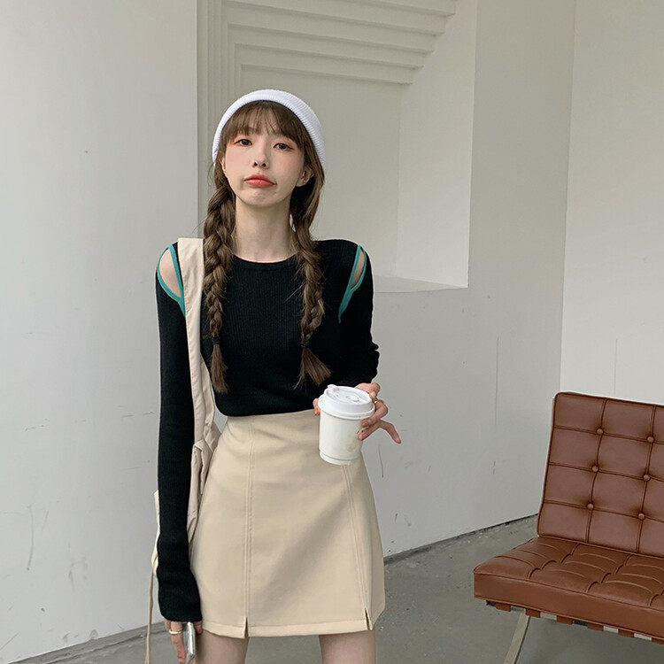 Демисезонный дизайнерский трикотажный лонгслив, футболка, коллекция 2023, тренд сезона, в западном стиле, в корейском стиле